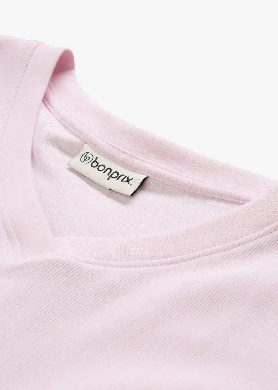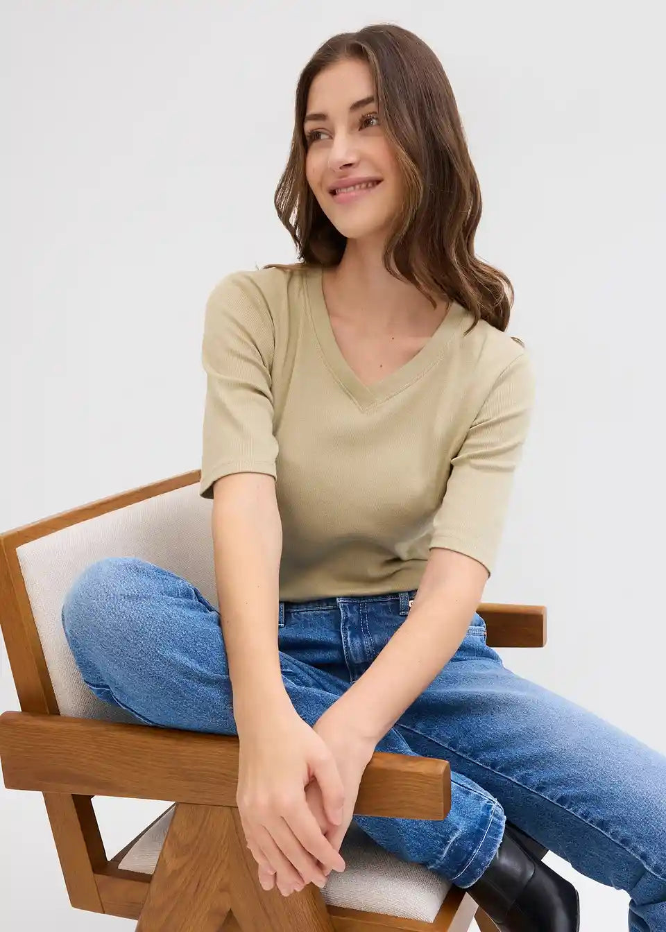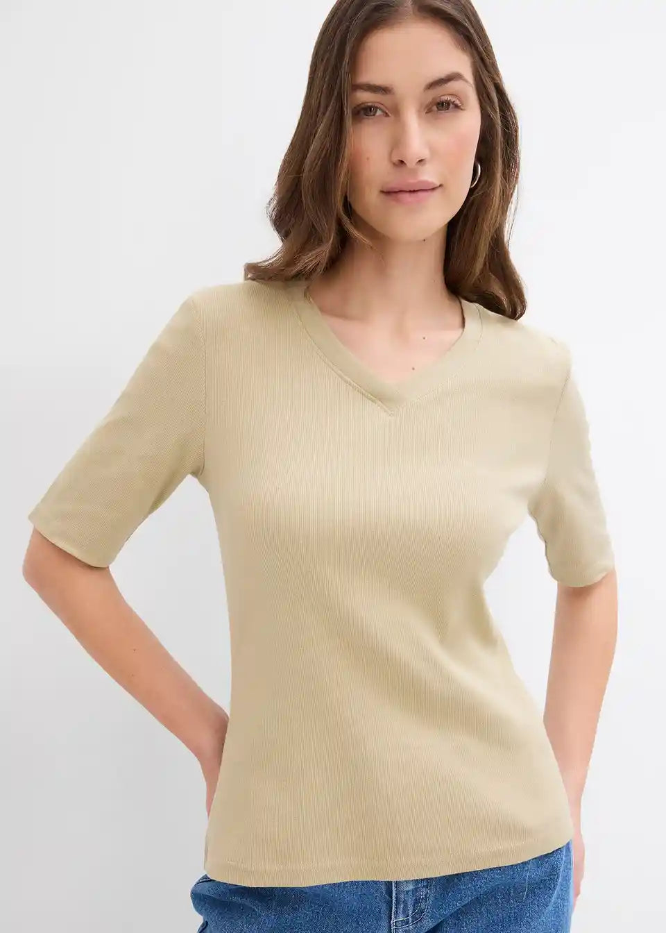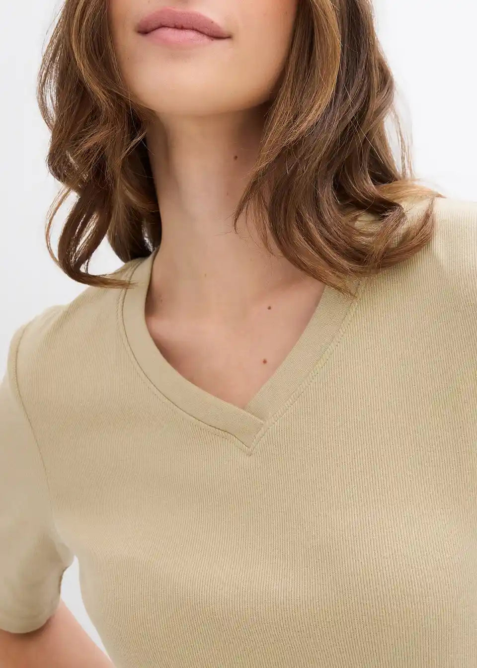 Univerzalno kombinirljiva rebrasta majica z V-izrezom