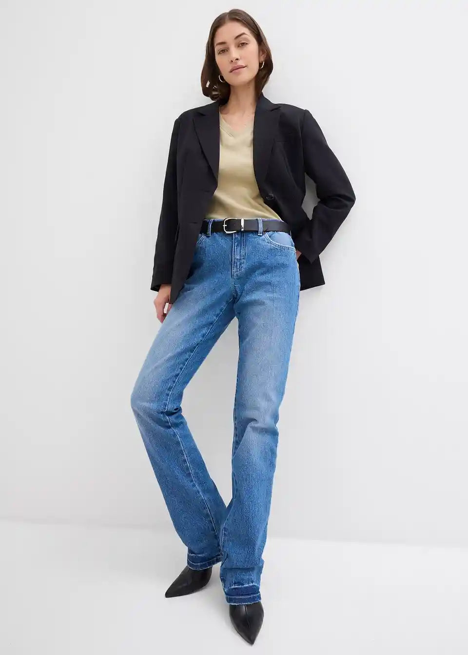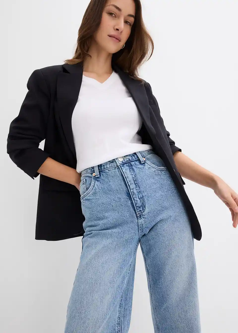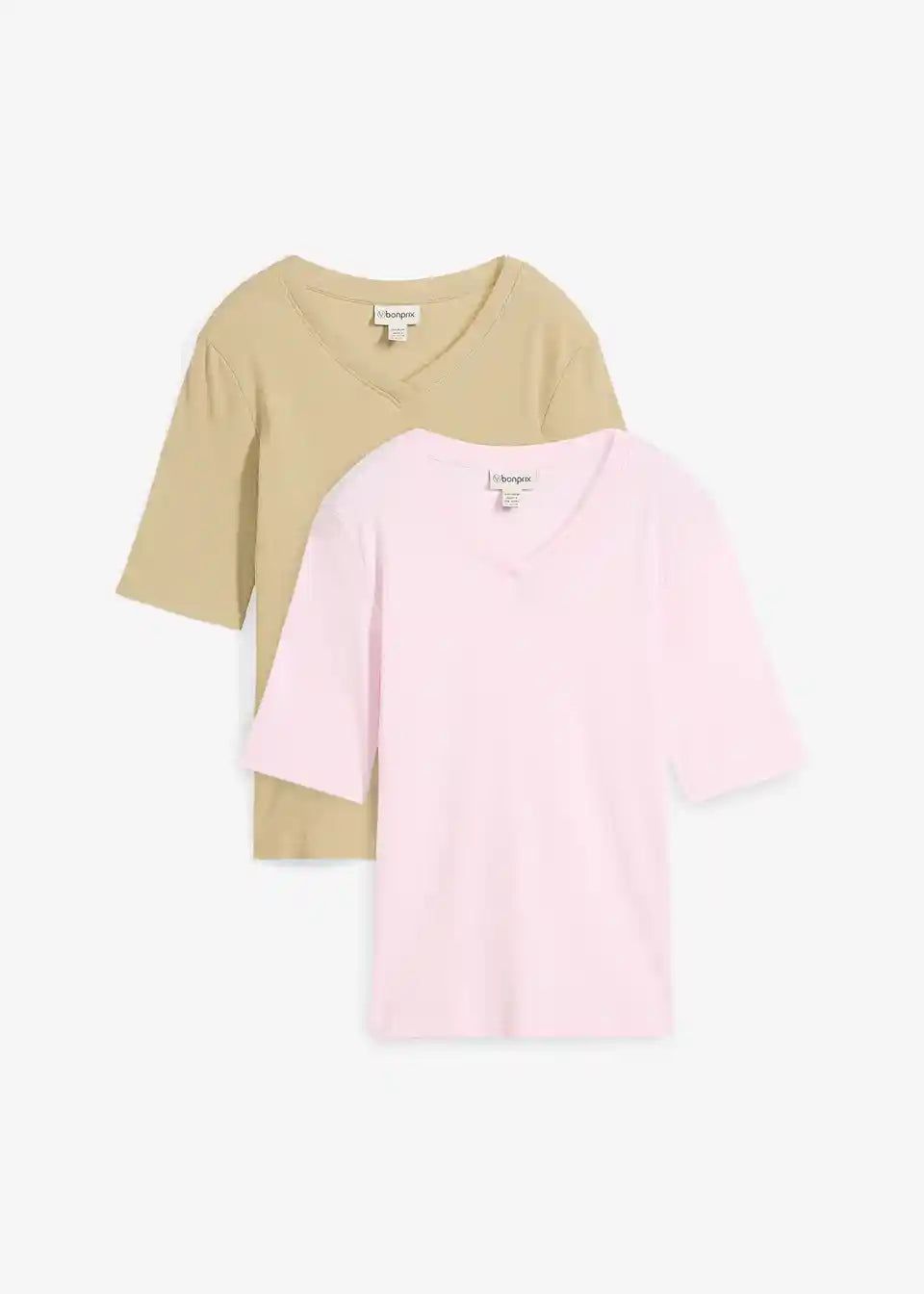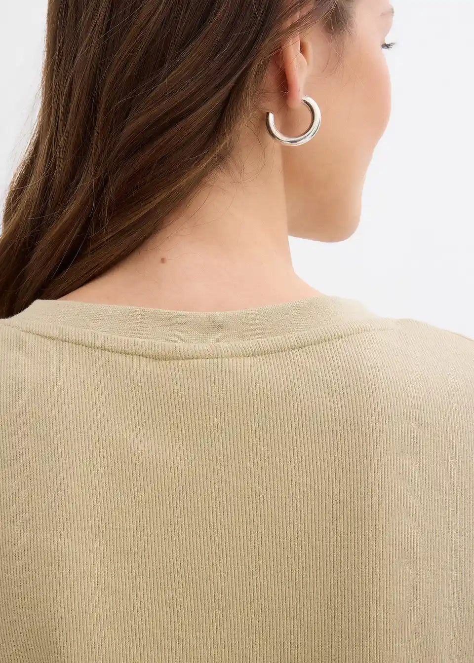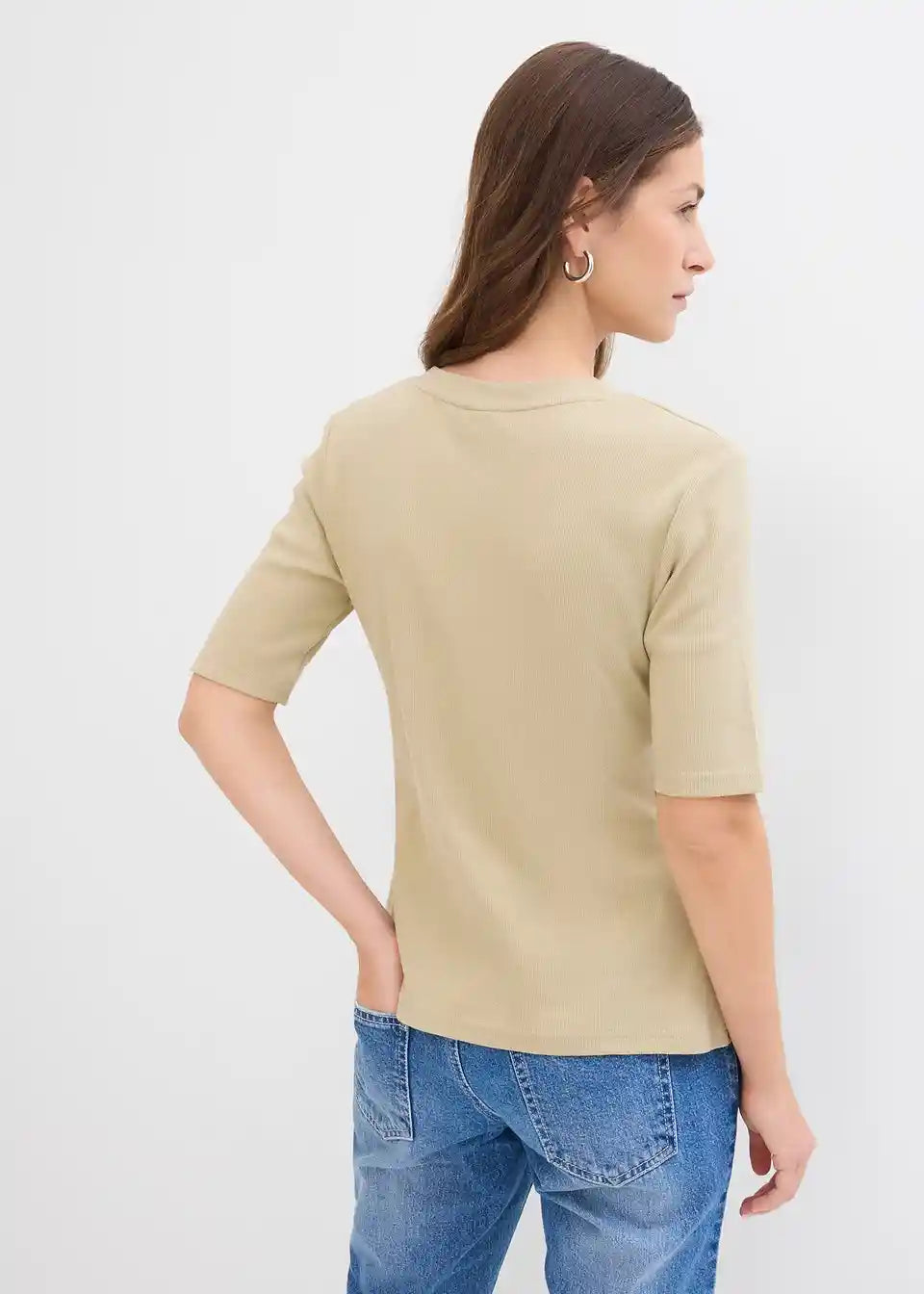Univerzalno kombinirljiva rebrasta majica z V-izrezom