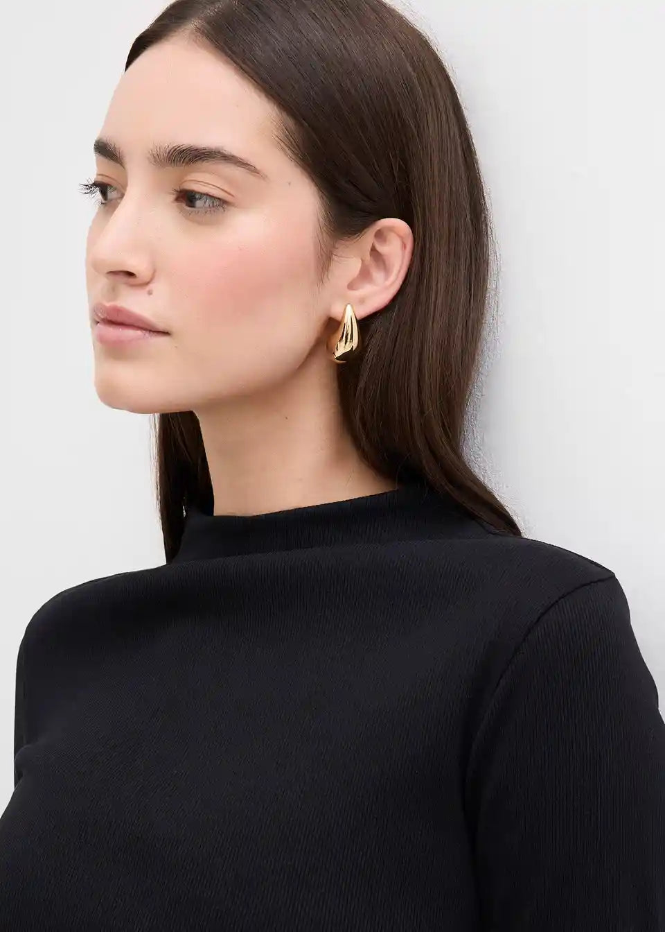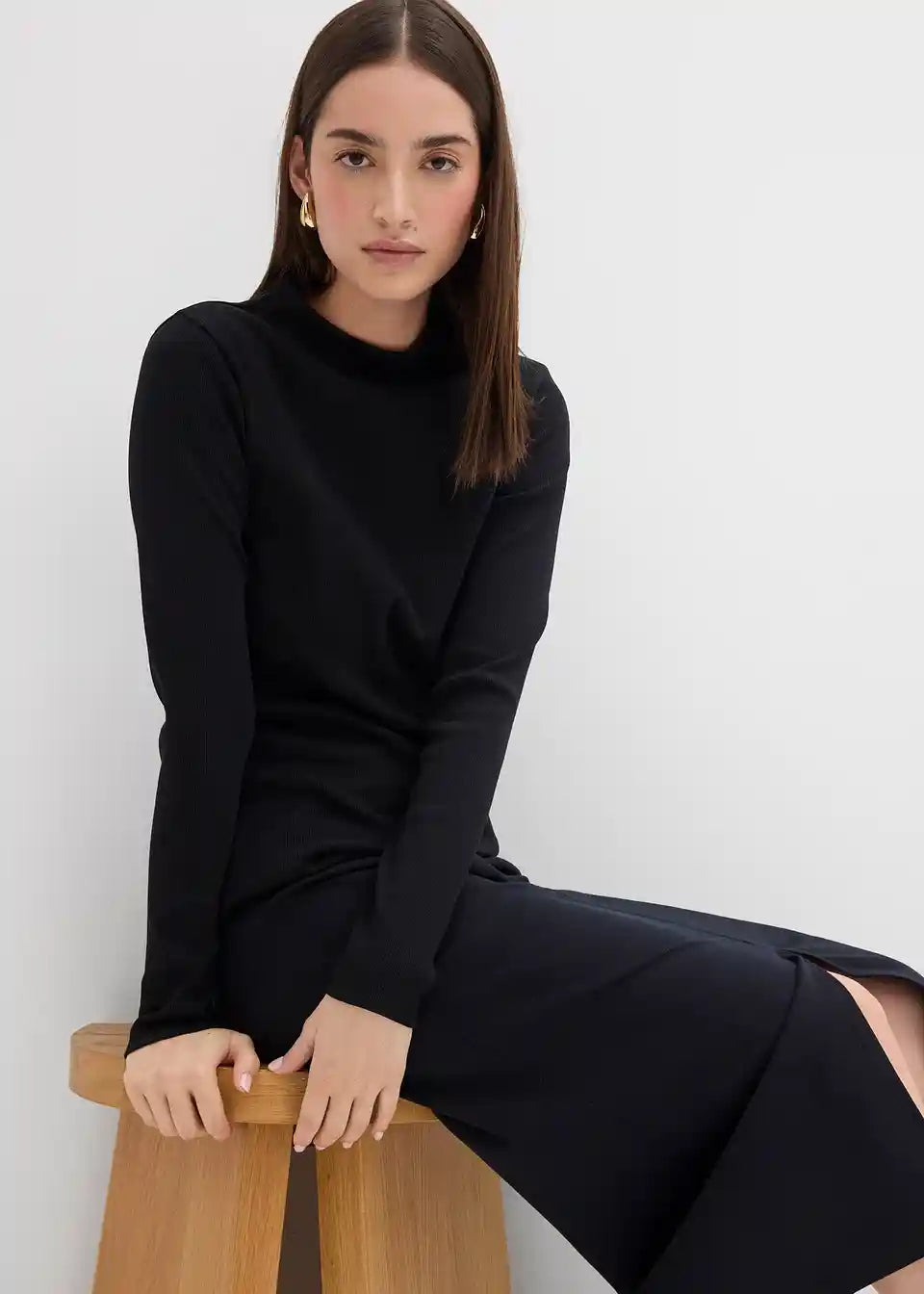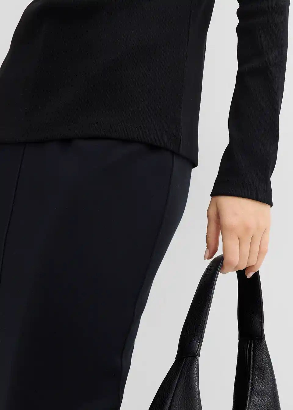 Ozko prilegajoča rebrasta majica s pokončnim ovratnikom in dolgimi rokavi