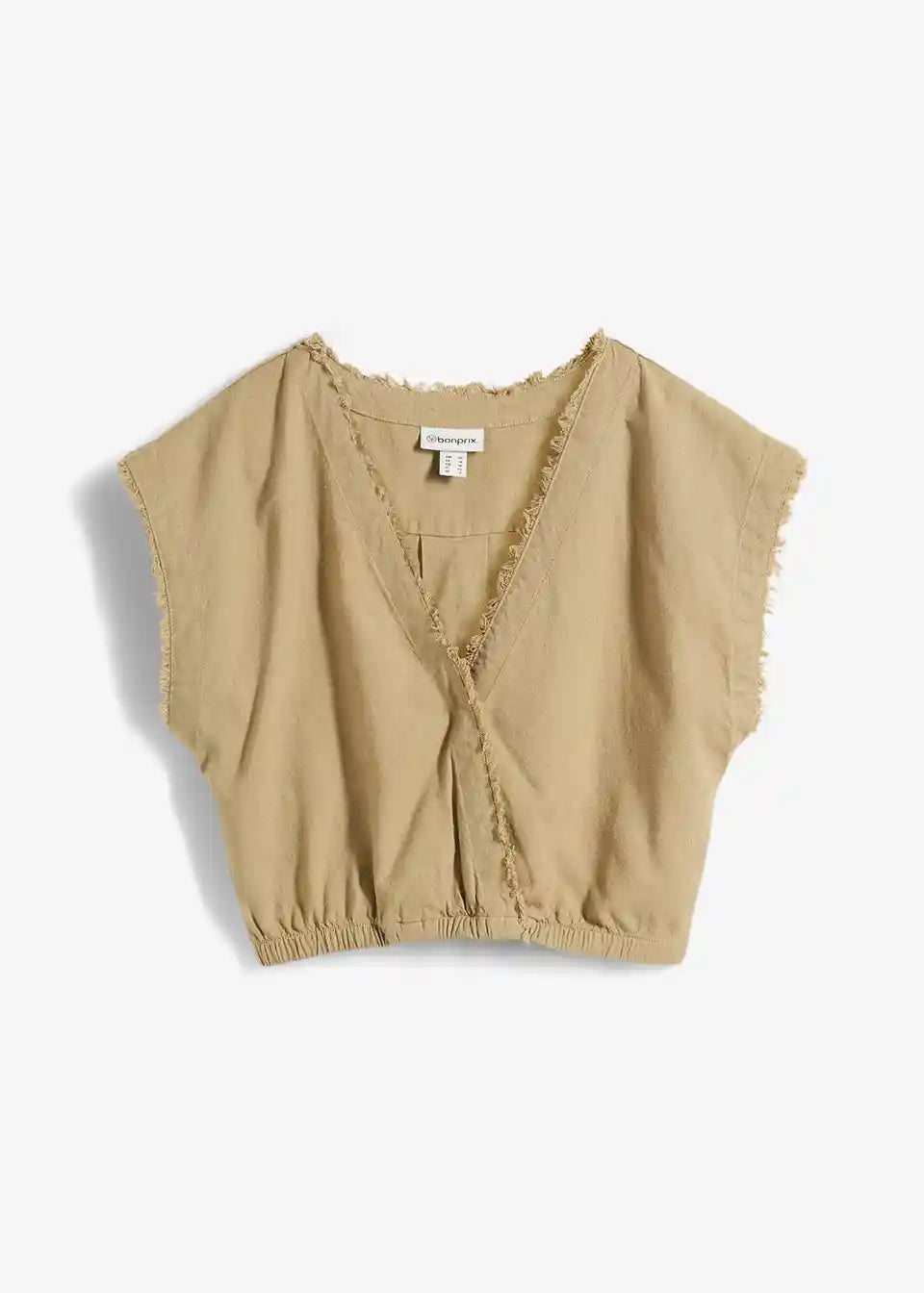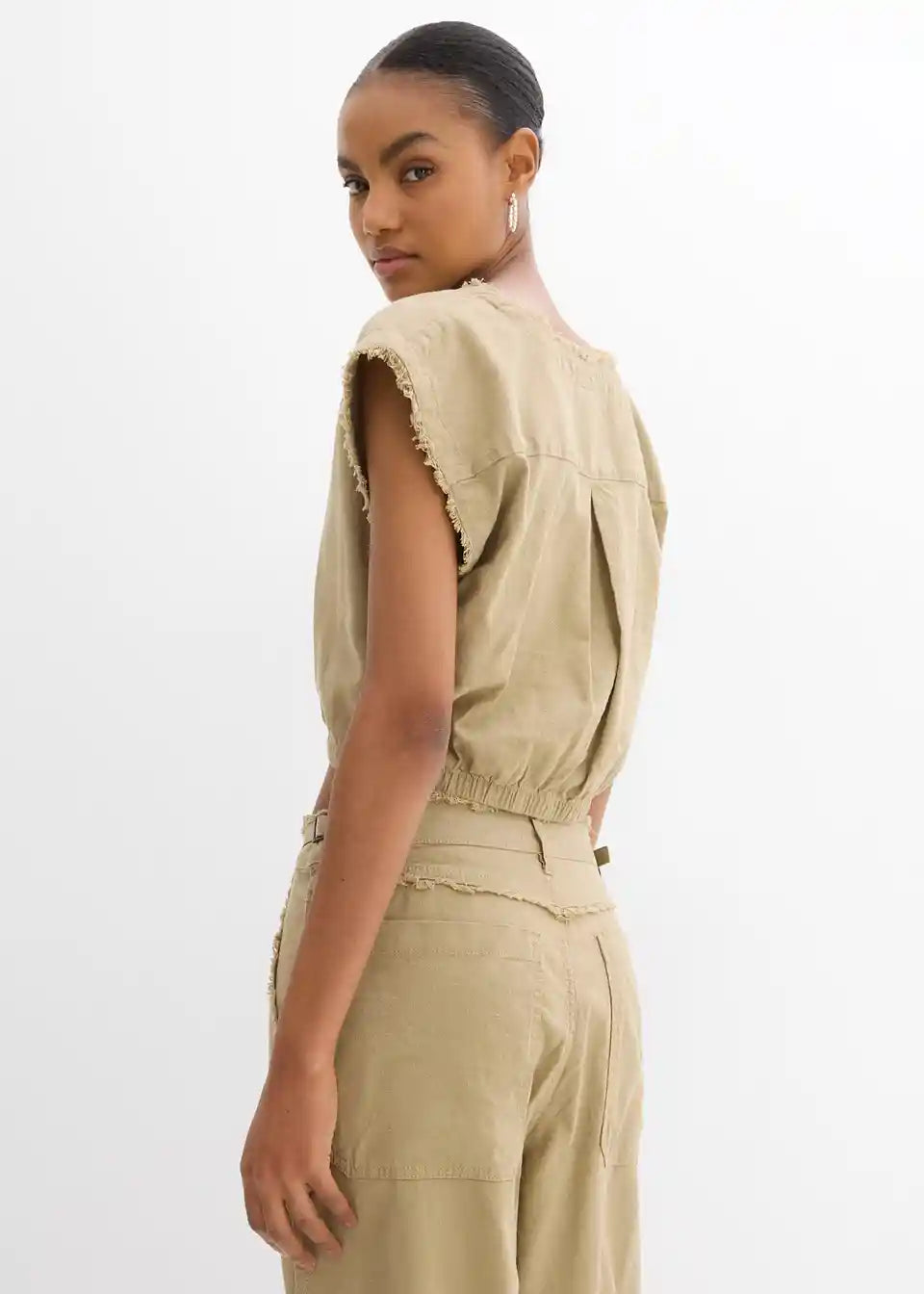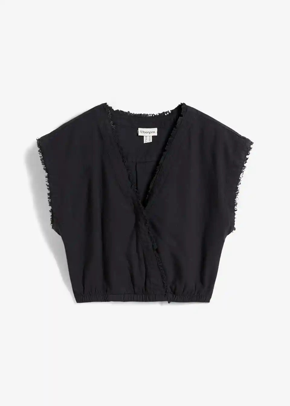Skrajšan bluzen top z odprtimi robovi