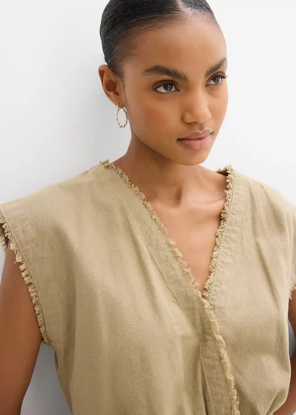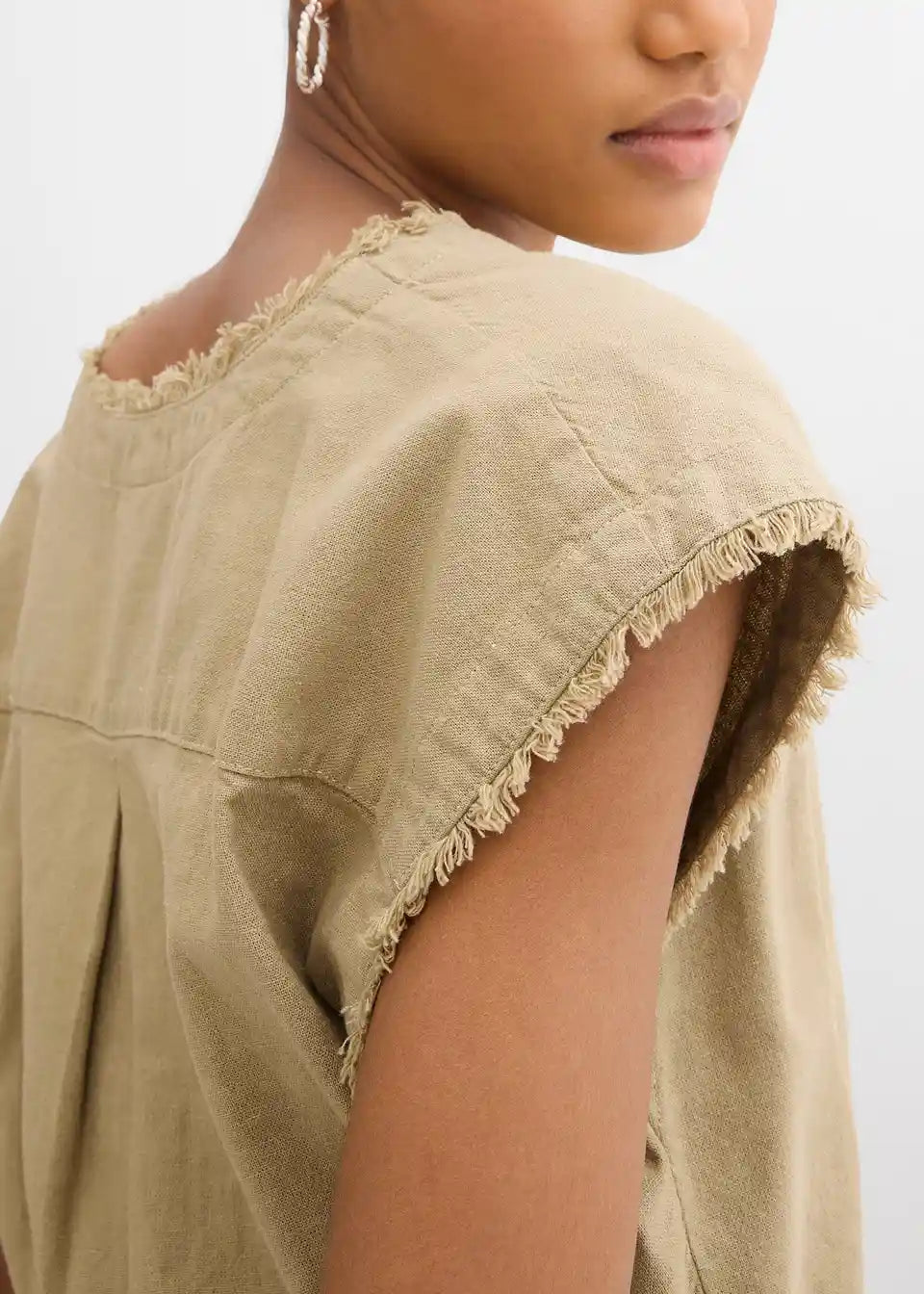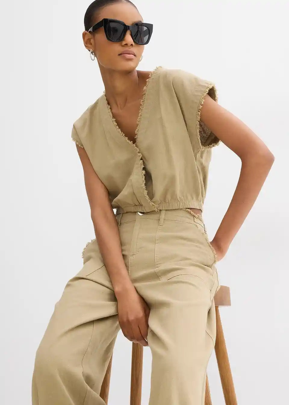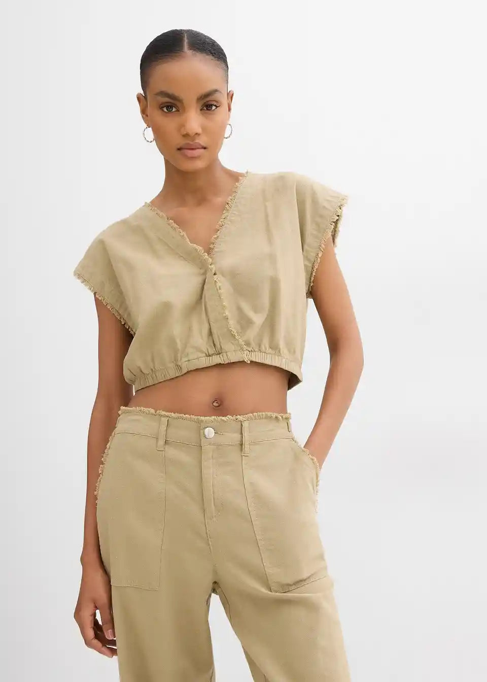 Skrajšan bluzen top z odprtimi robovi
