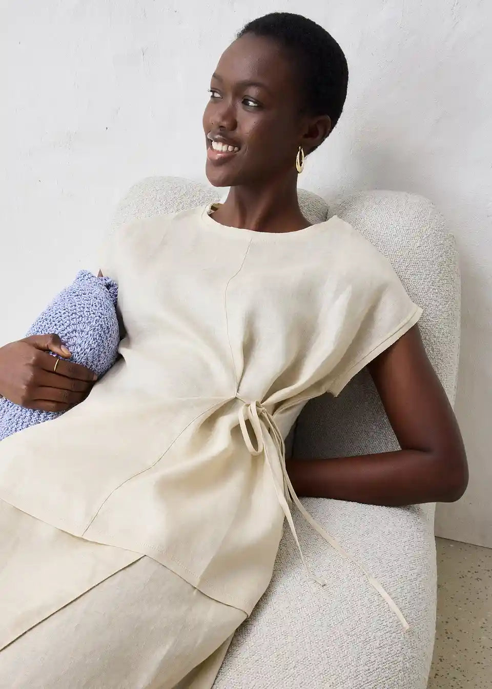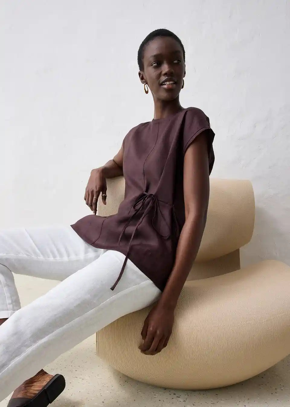 Lan je trpežno naravno vlakno in zaradi svojih lastnosti hladi kožo. Plemenite gube in strukturirana površina so značilne lastnosti. Lan je prijeten in zračen za nošenje ter tvoj idealen poletni spremljevalec.