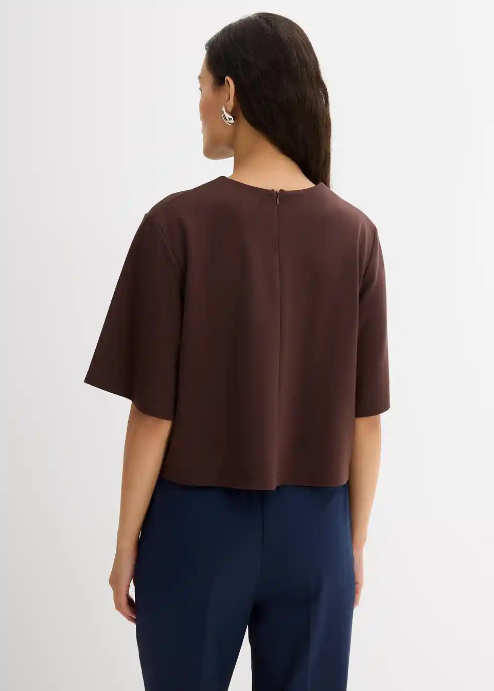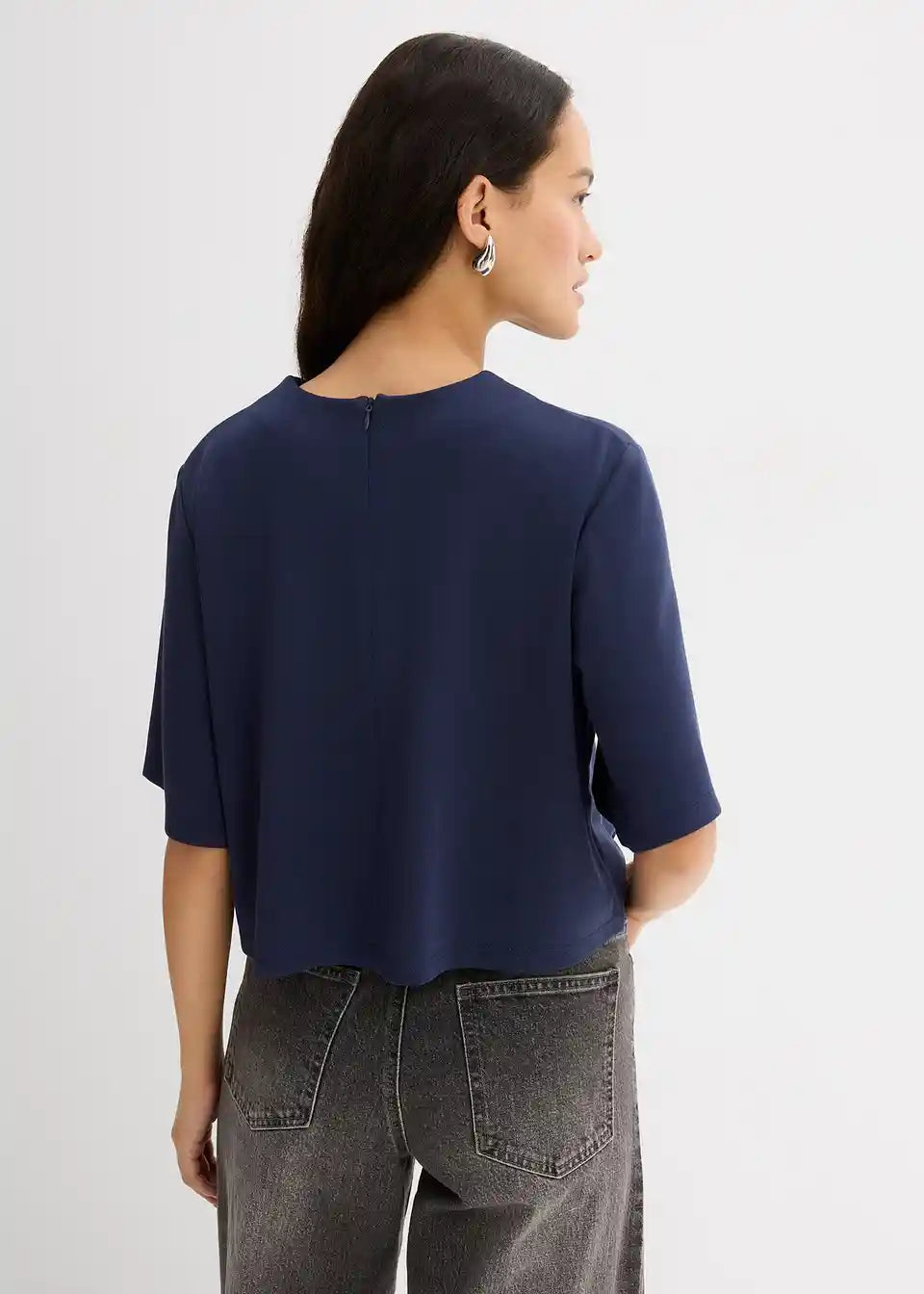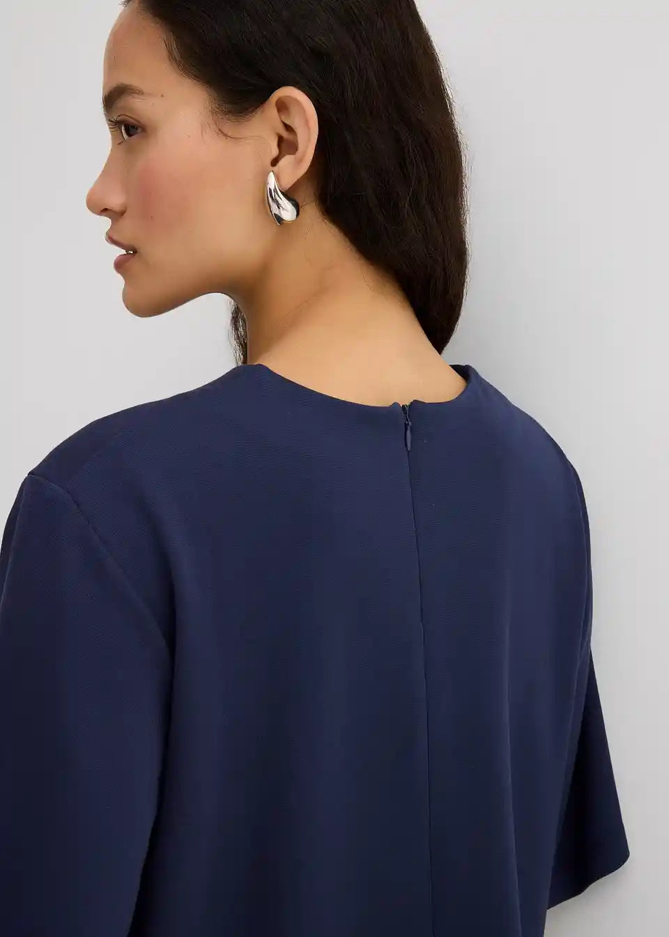 Krajša ohlapna majica s podaljšanimi kratkimi rokavi ter zapenjanjem z zadrgo zadaj