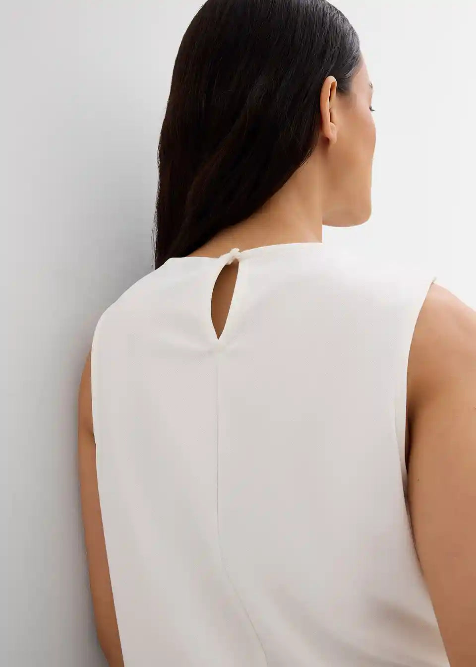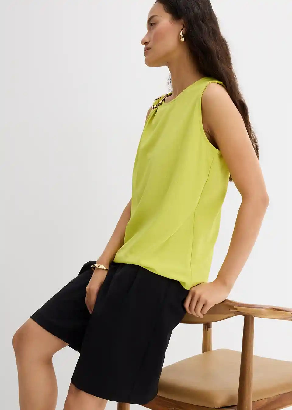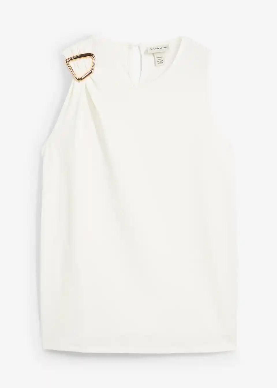 Ležeren top brez ramen z drapiranim materialom ter kovinsko zaponko na rami
