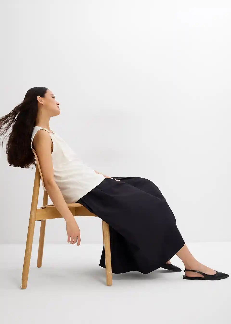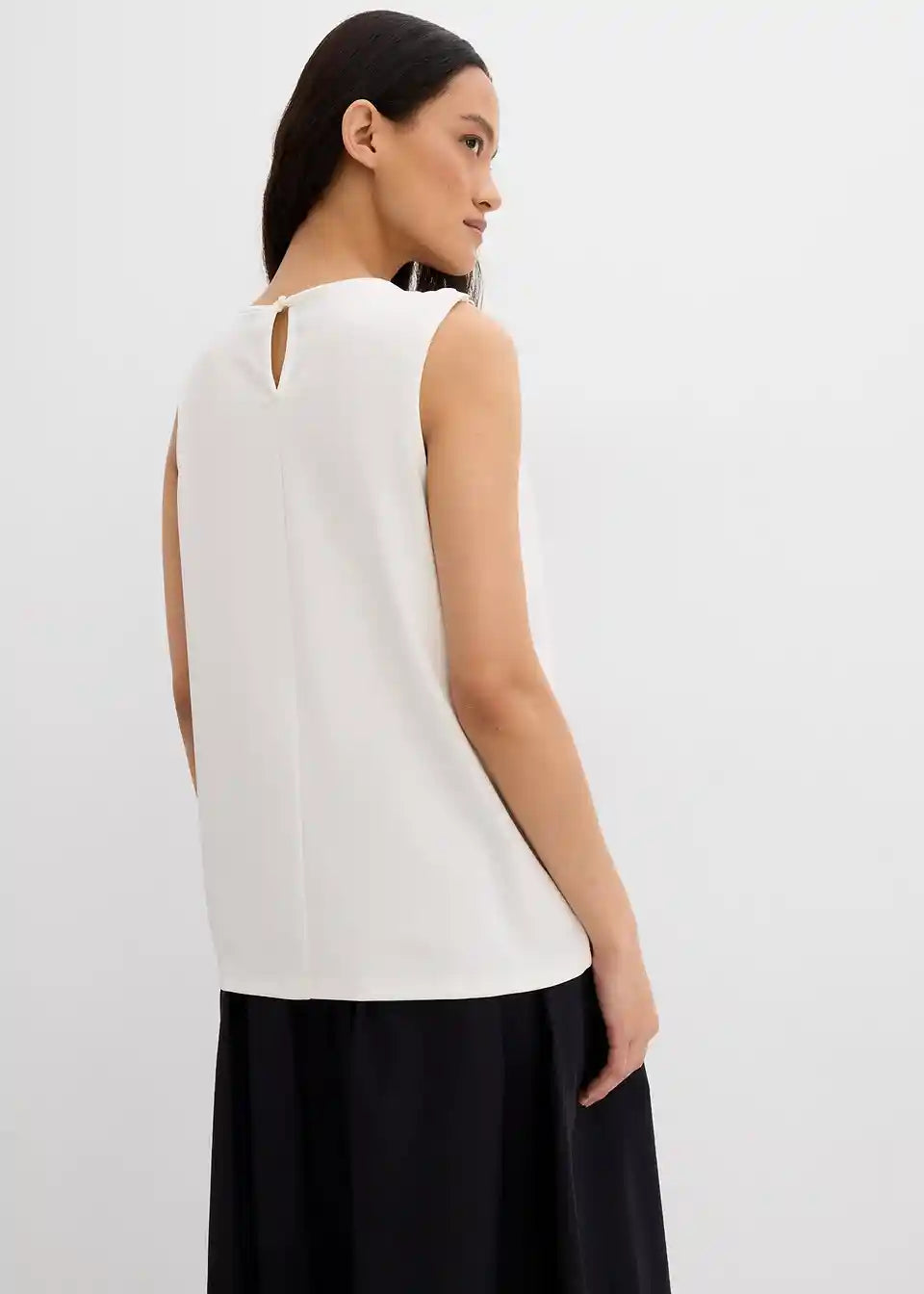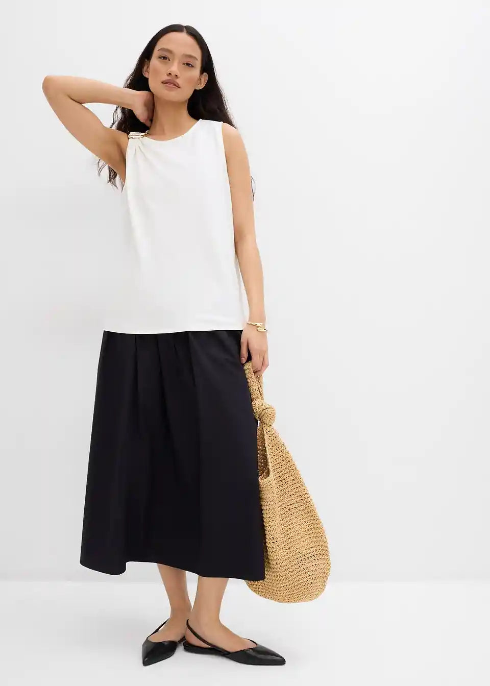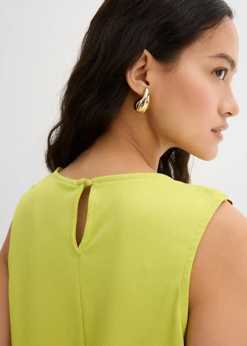 Ležeren top brez ramen z drapiranim materialom ter kovinsko zaponko na rami