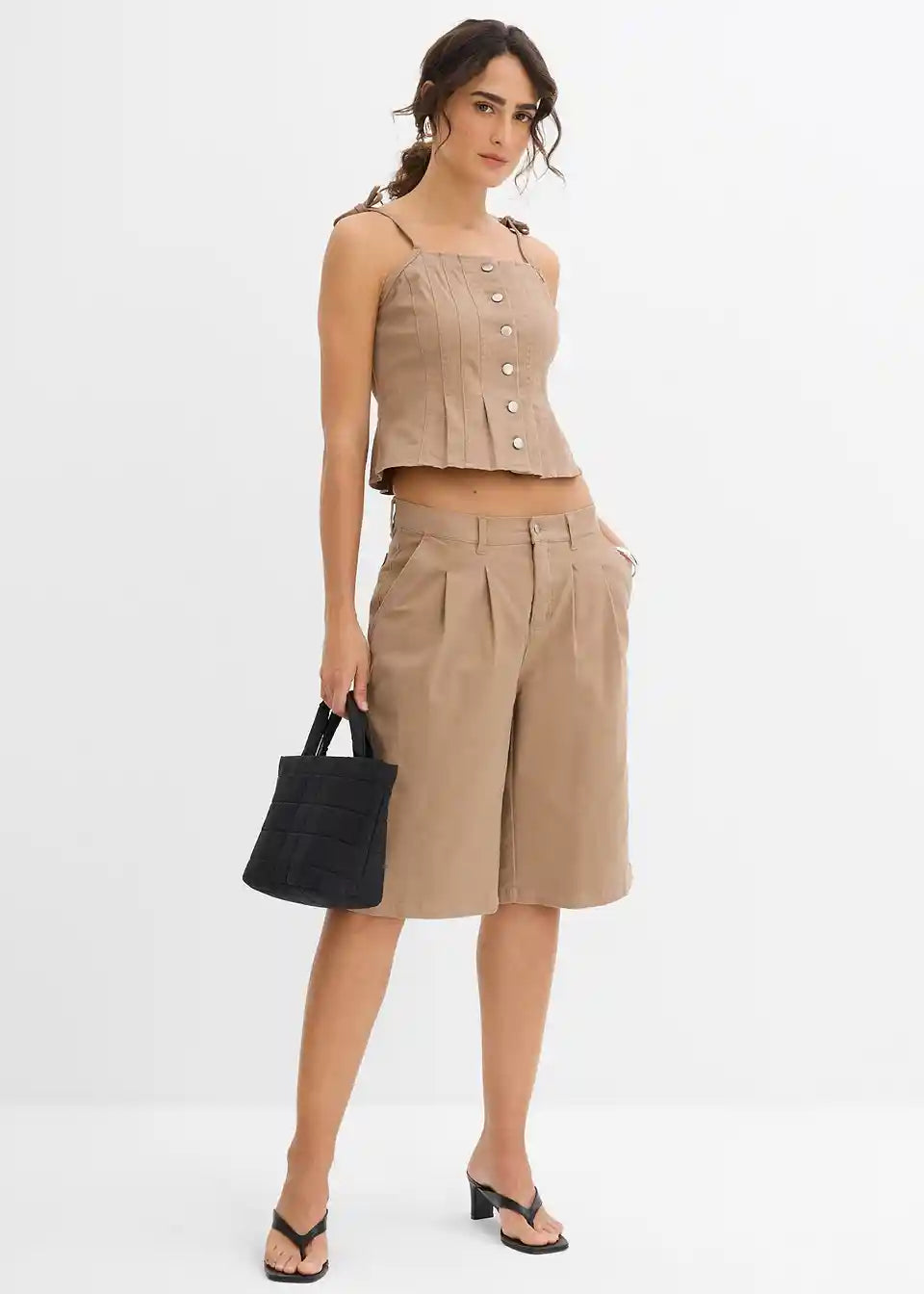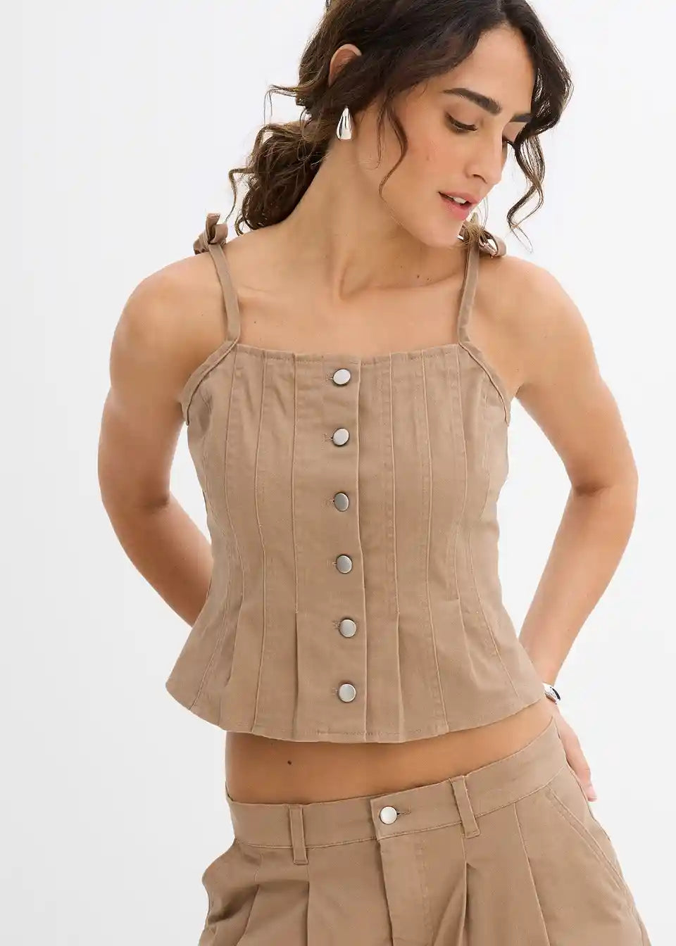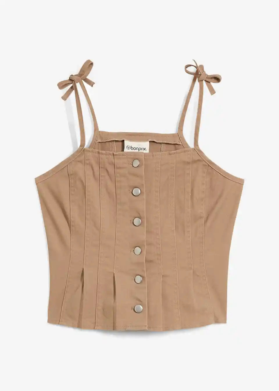Moden bustier top iz bombažne mešanice z vrstico gumbov