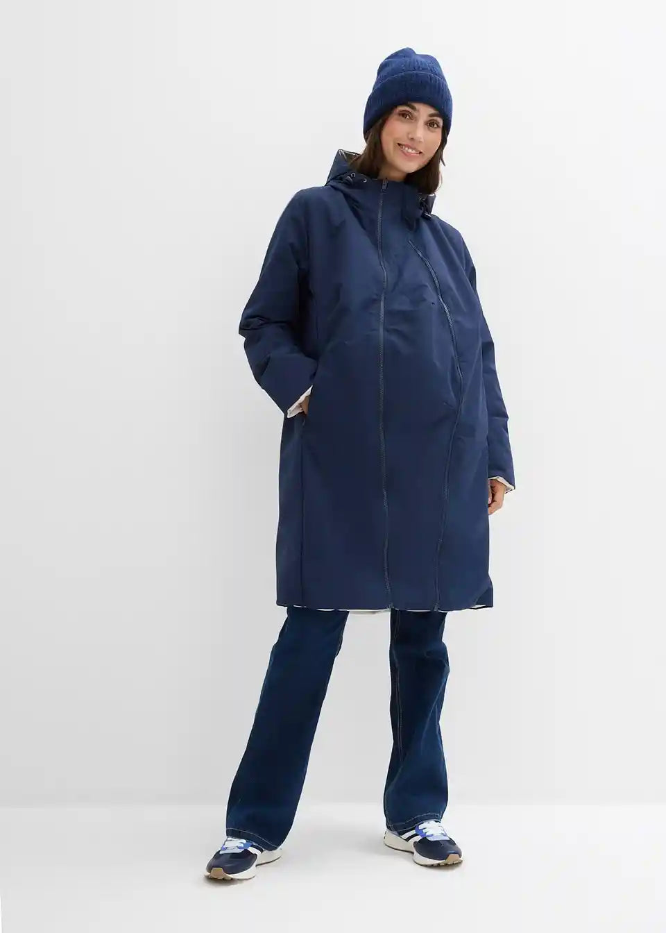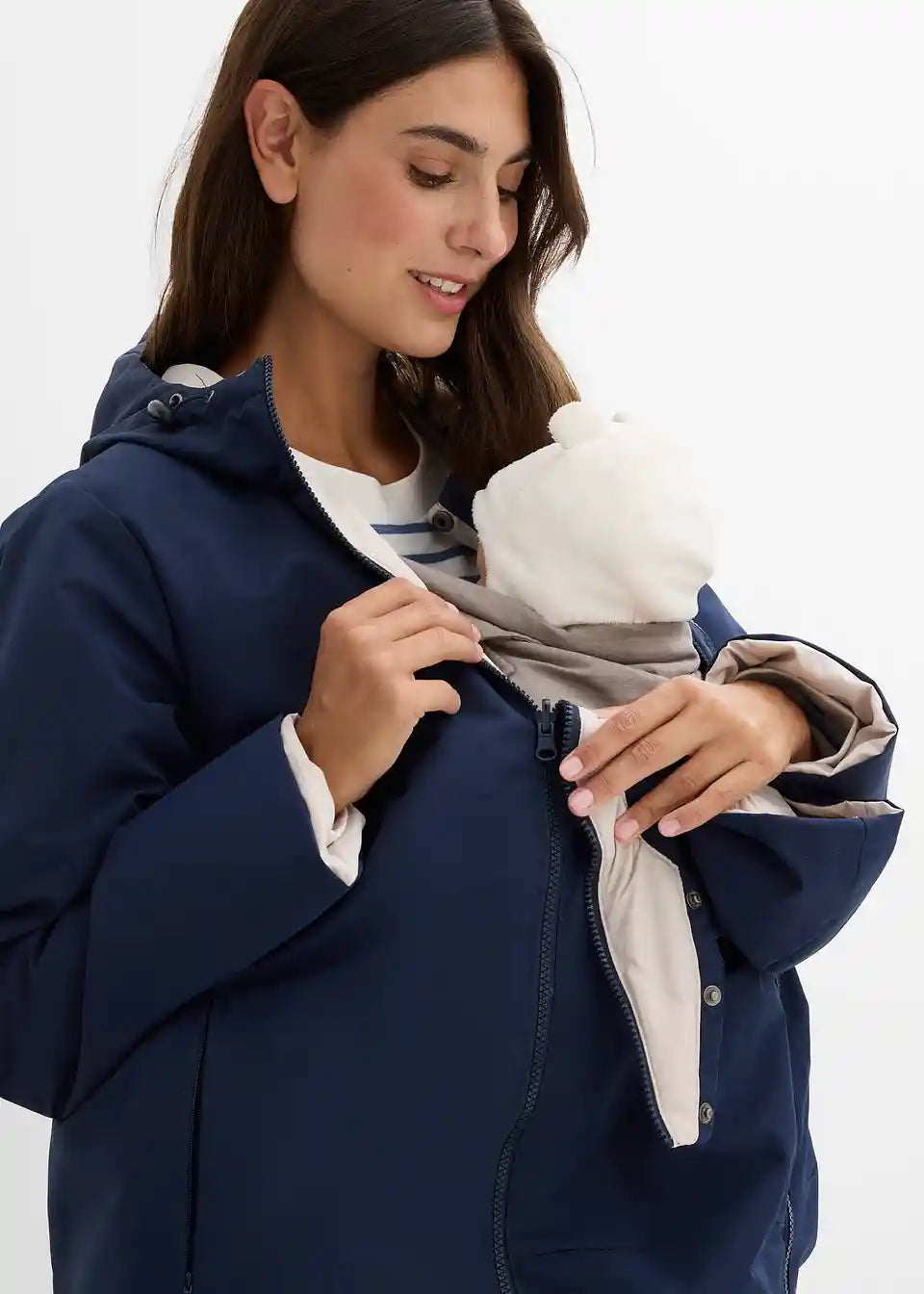 Vodoodbojen 6-v-1 obojestranski nosečniški plašč z všitkom za nošenje otroka in nosečniški trebušček