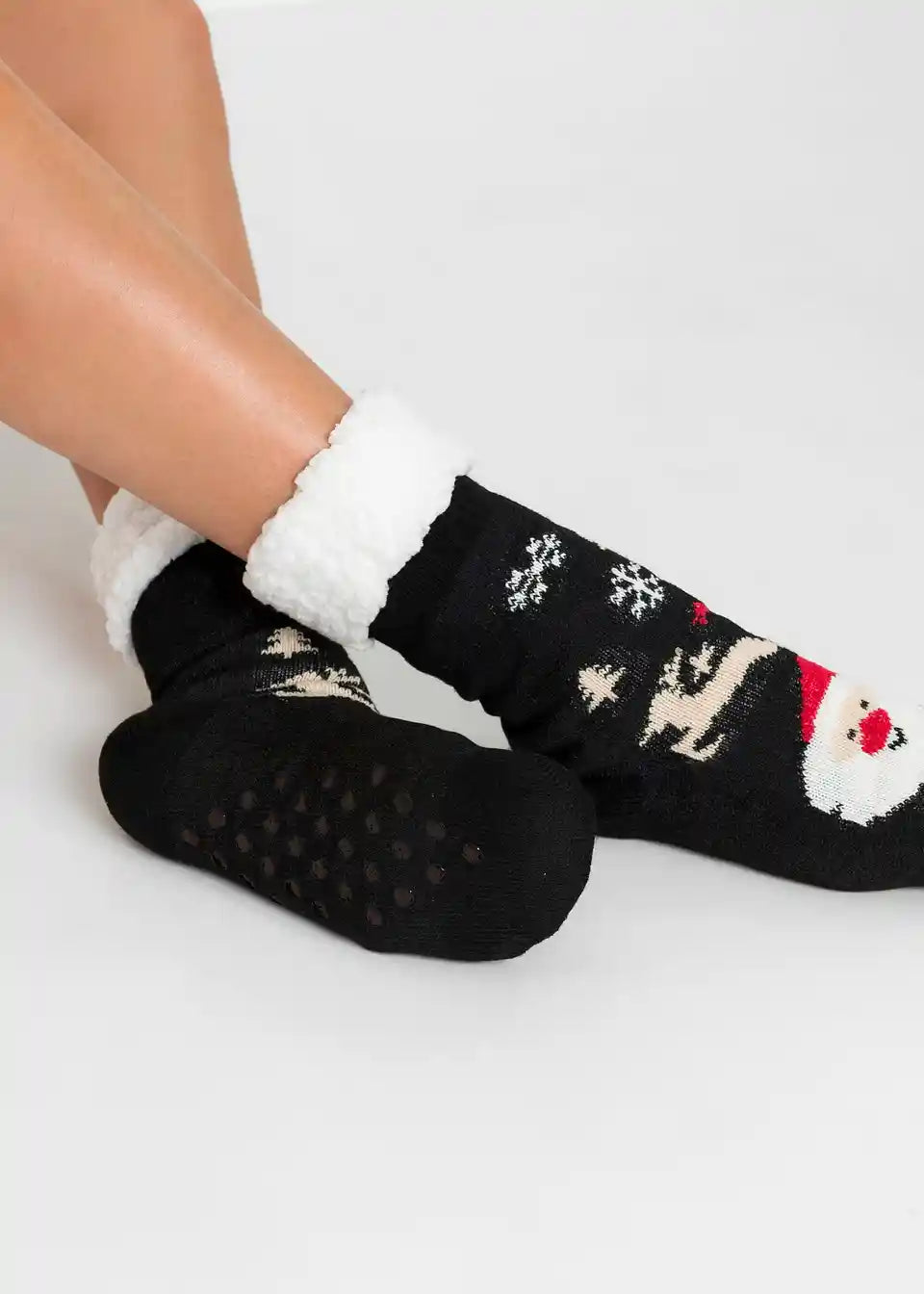 Te mehke hišne nogavice z božičnimi motivi so čudovite za obdarovanje. Mehka Teddy podloga prijetno greje.