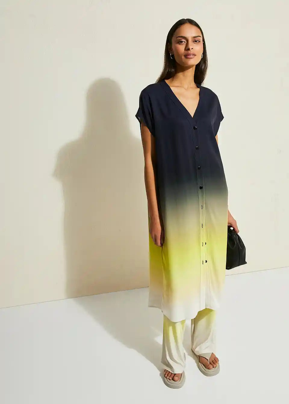 Ležerna kaftan-obleka z ekstravagantnim tiskom