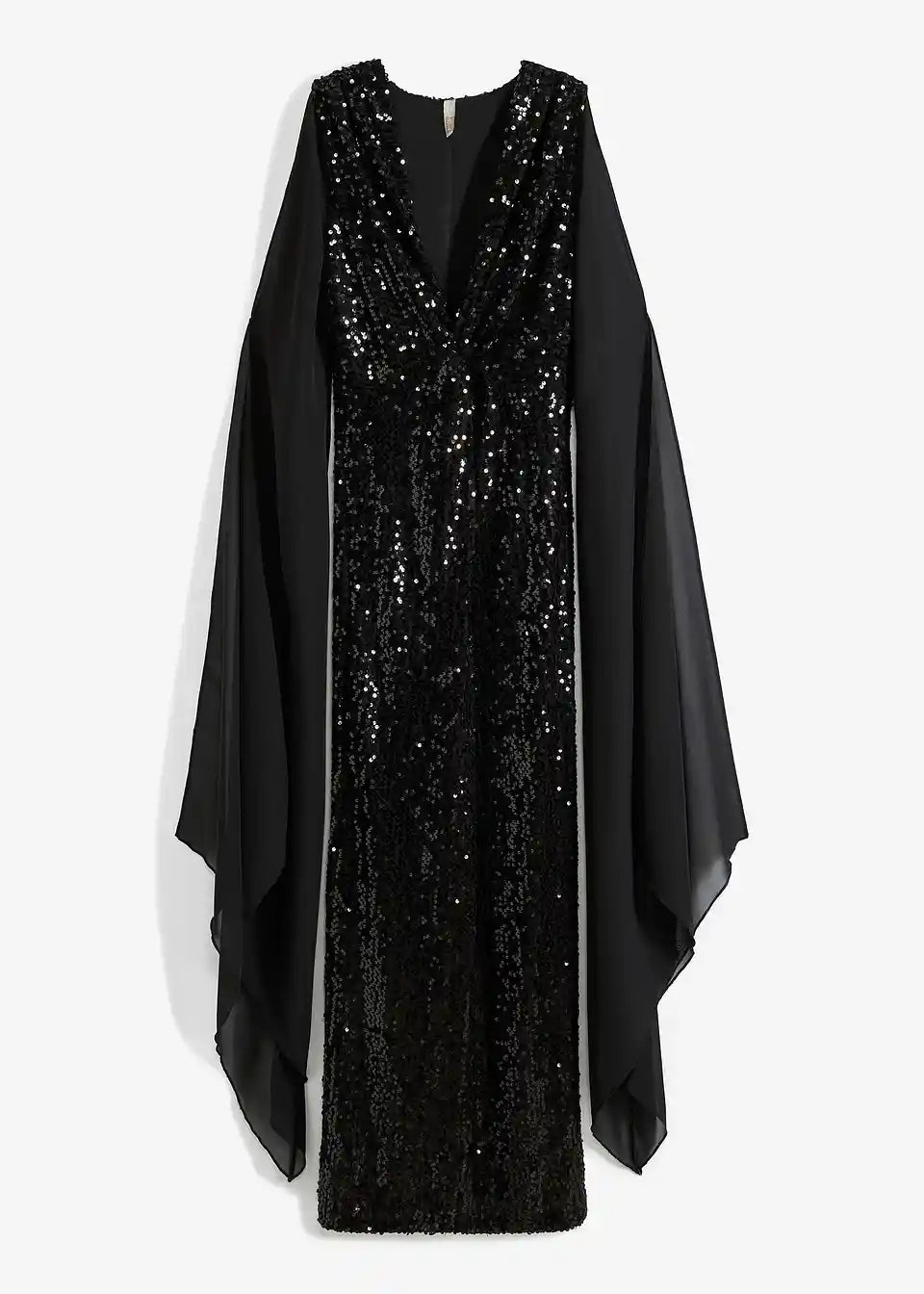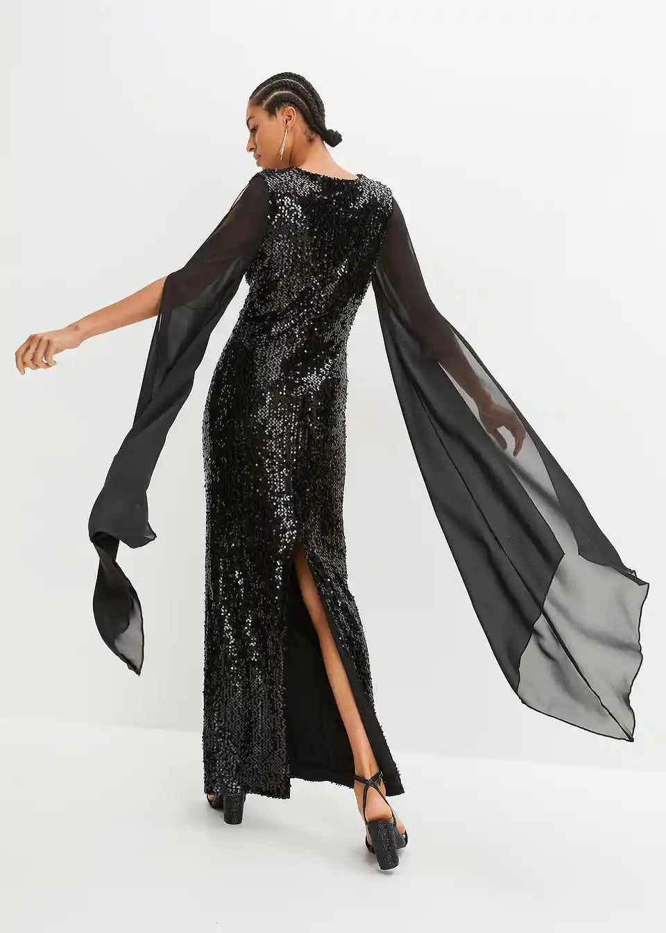 Eleganten in Ženstven: Maksimalna obleka v zavit videzu z bleščicami in dolgimi šifon rokavi