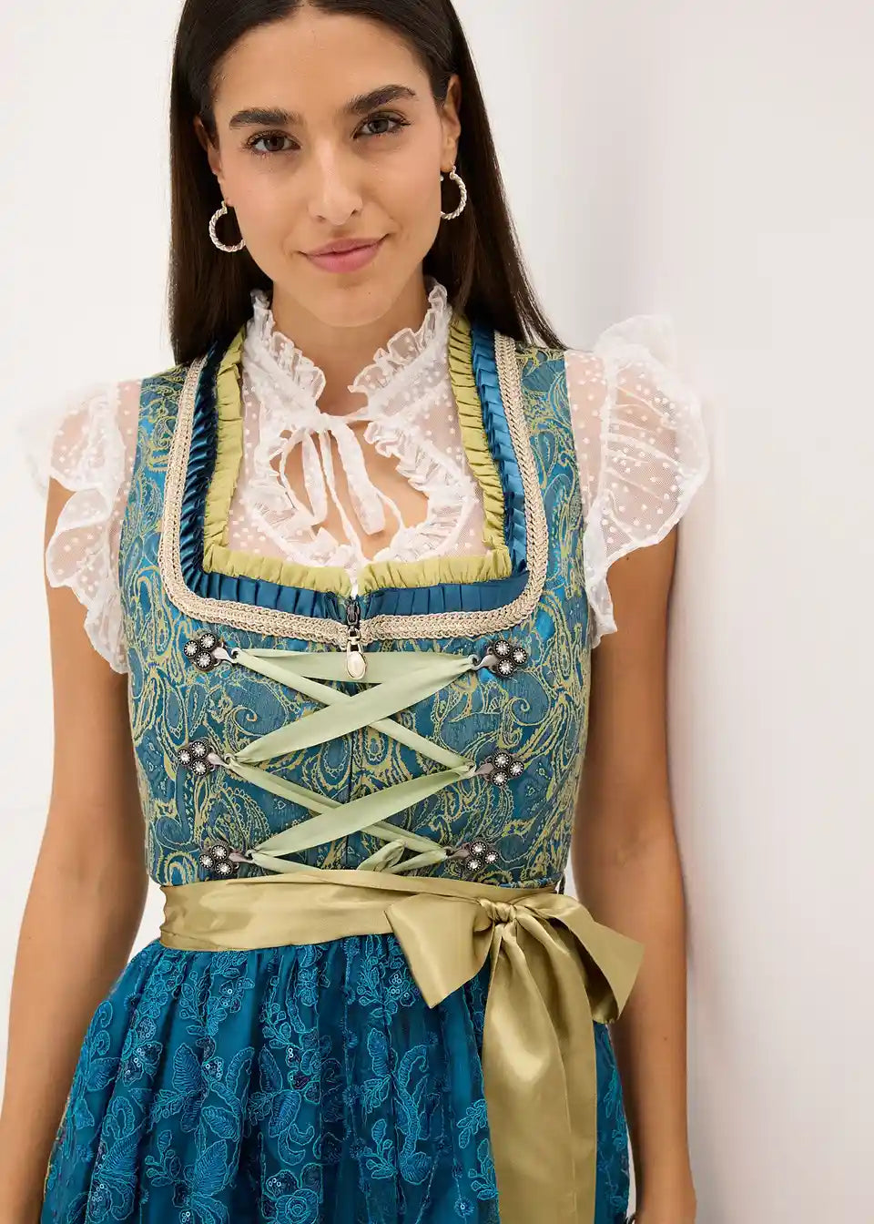 Svetleč dirndl s Pailletten-predpasnikom in vezanjem