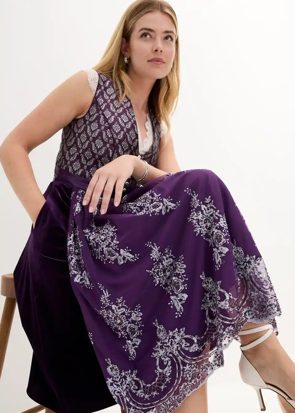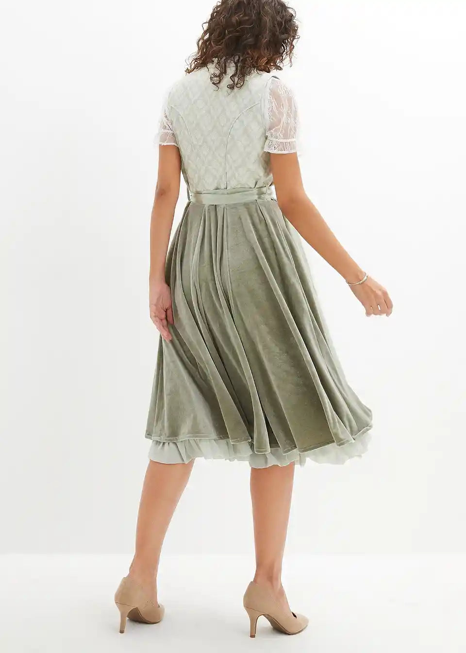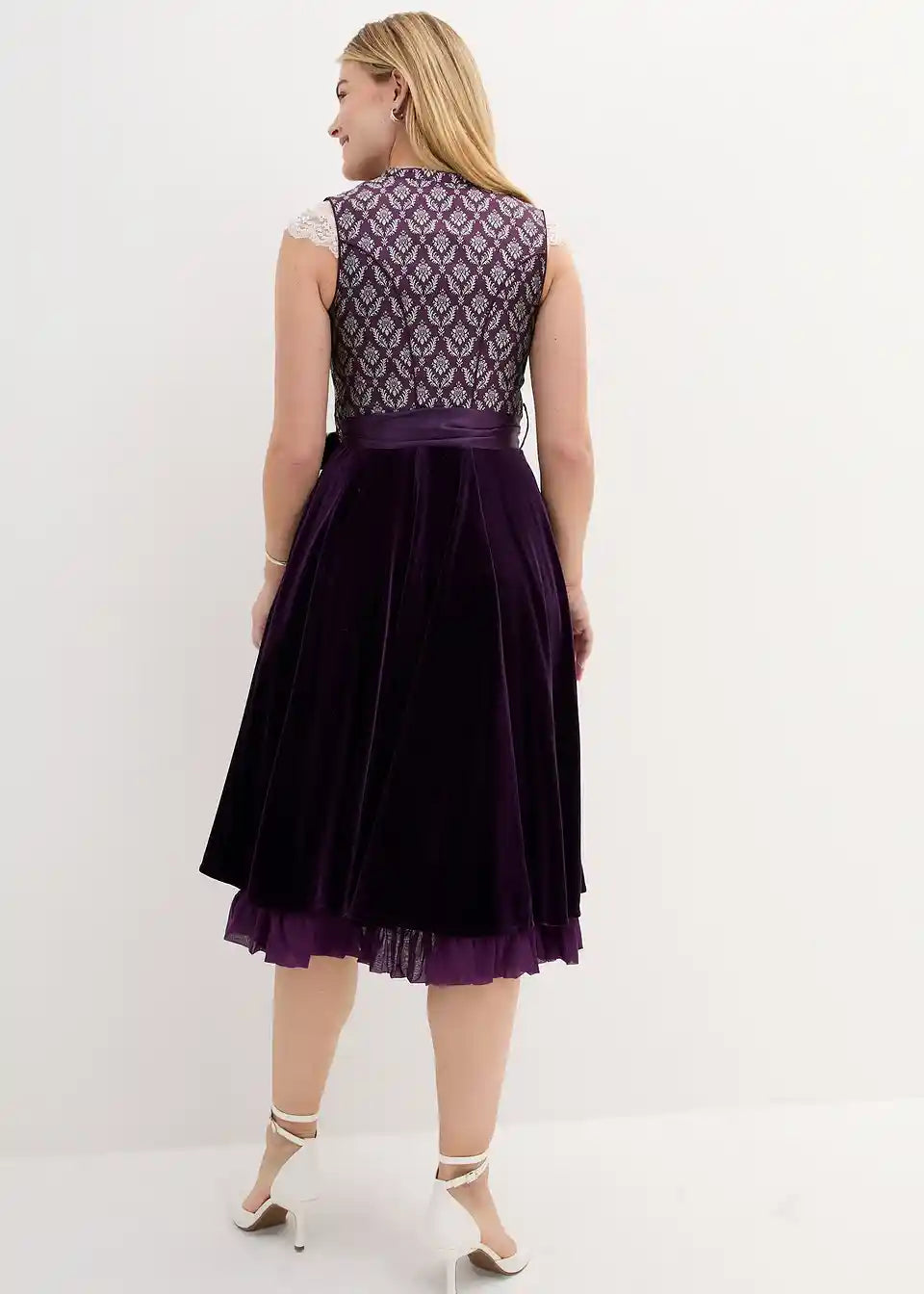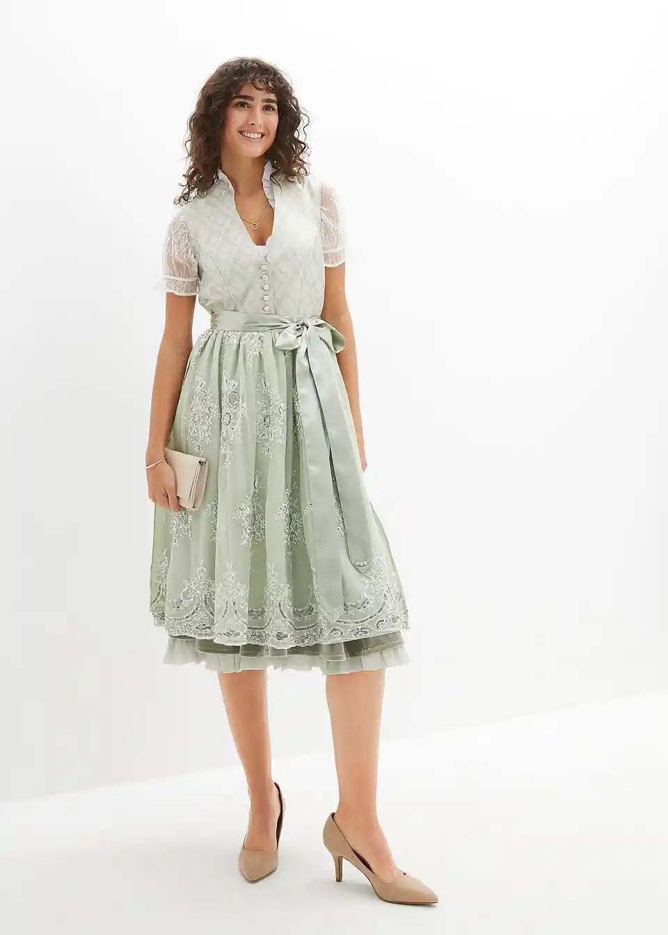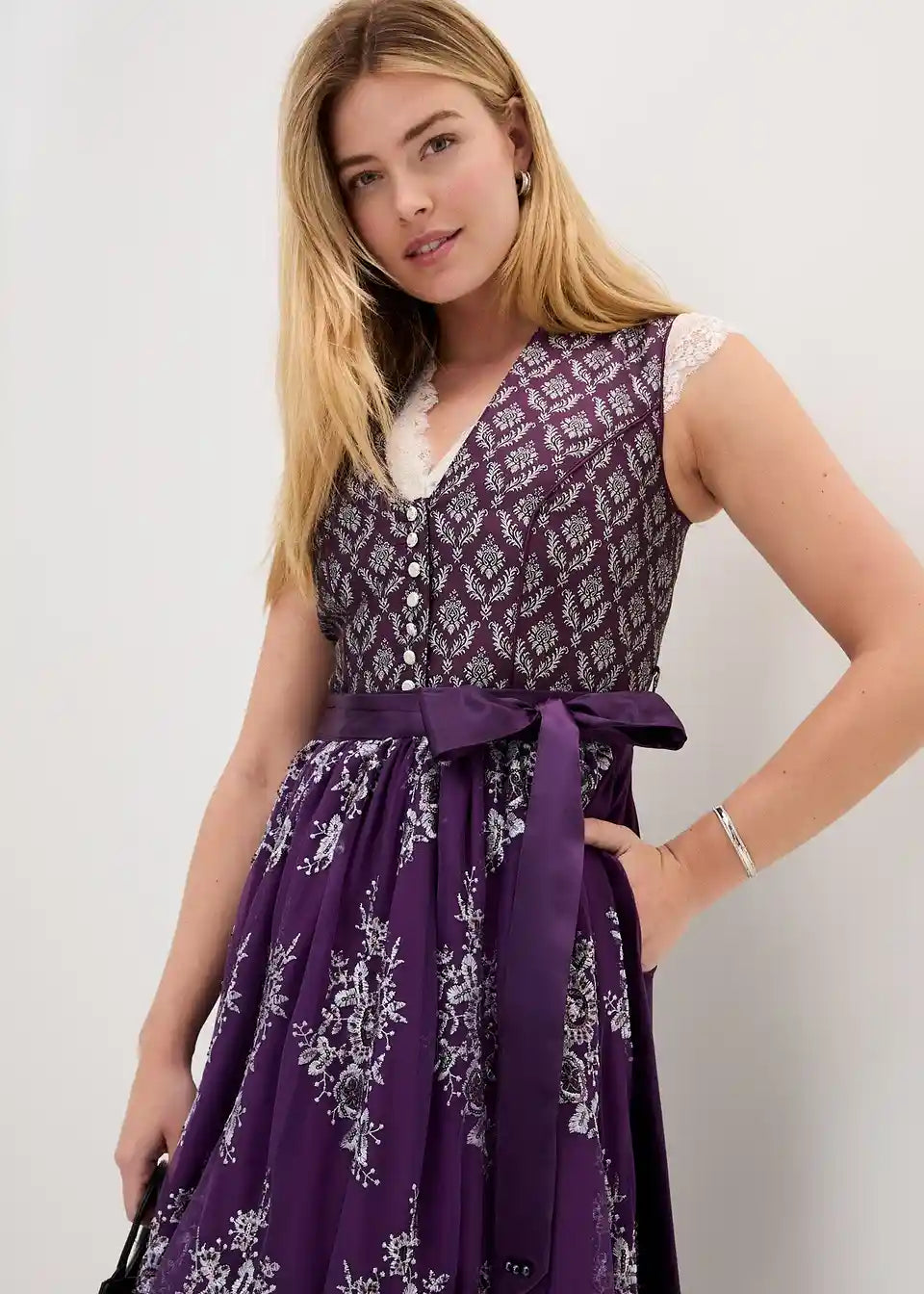 Visokokakovostni dirndl iz elegantnega jacquarda z okrasnim gumbnim trakom in čudovito vezenino
