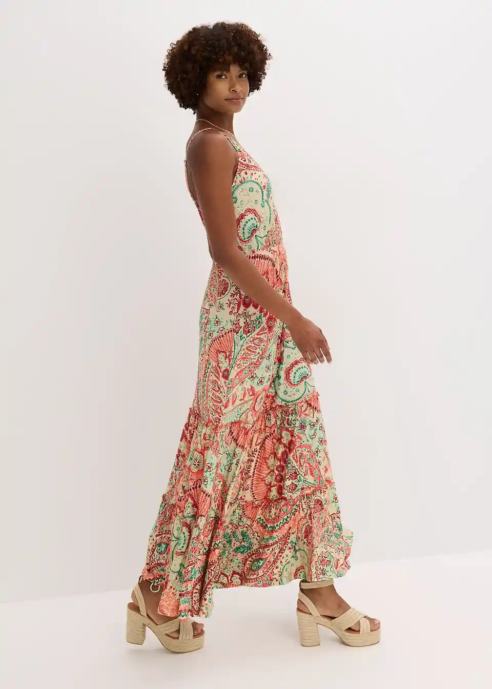 Potiskana jersey obleka s tankimi naramnicami iz mehkega viskoznega materiala