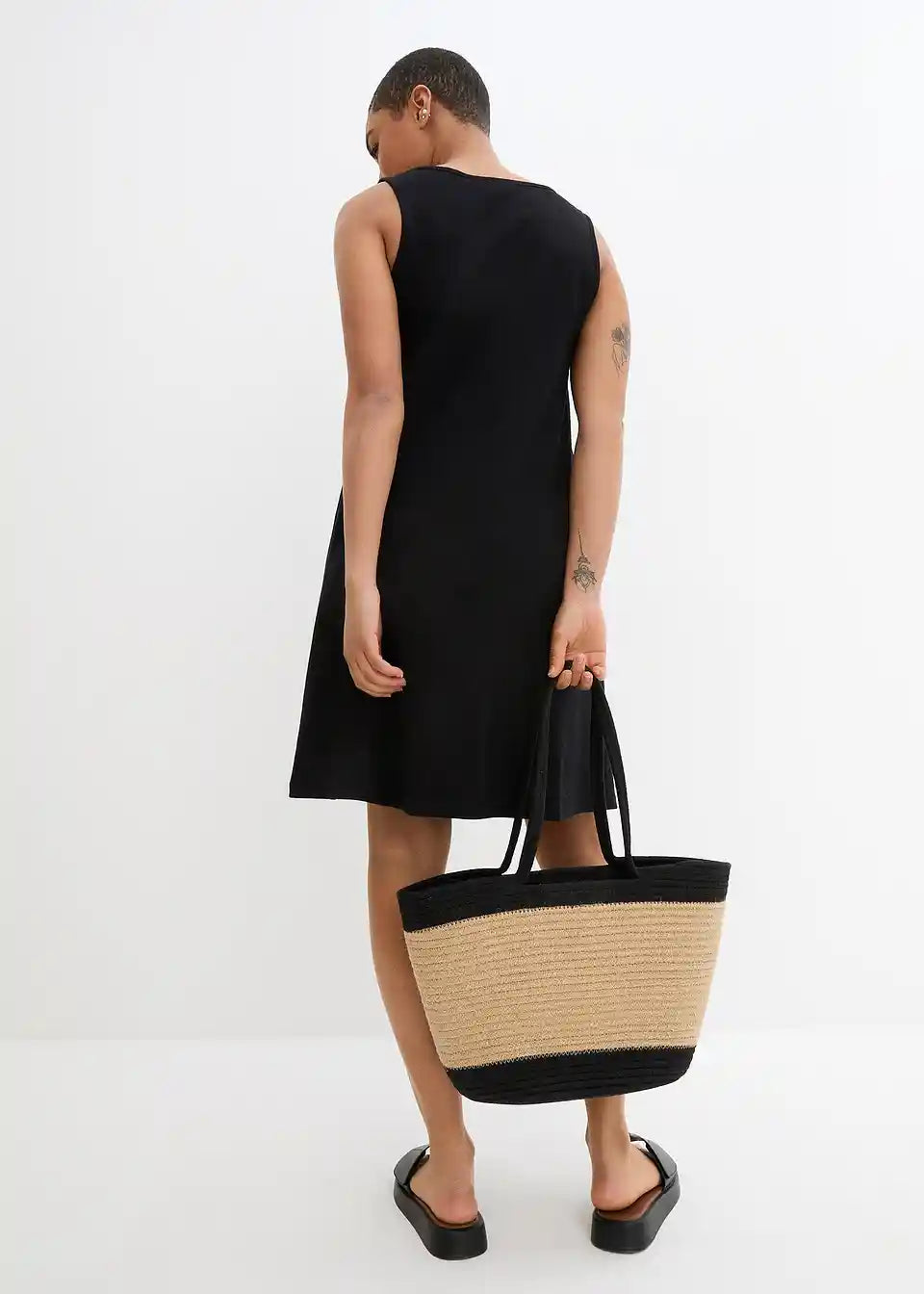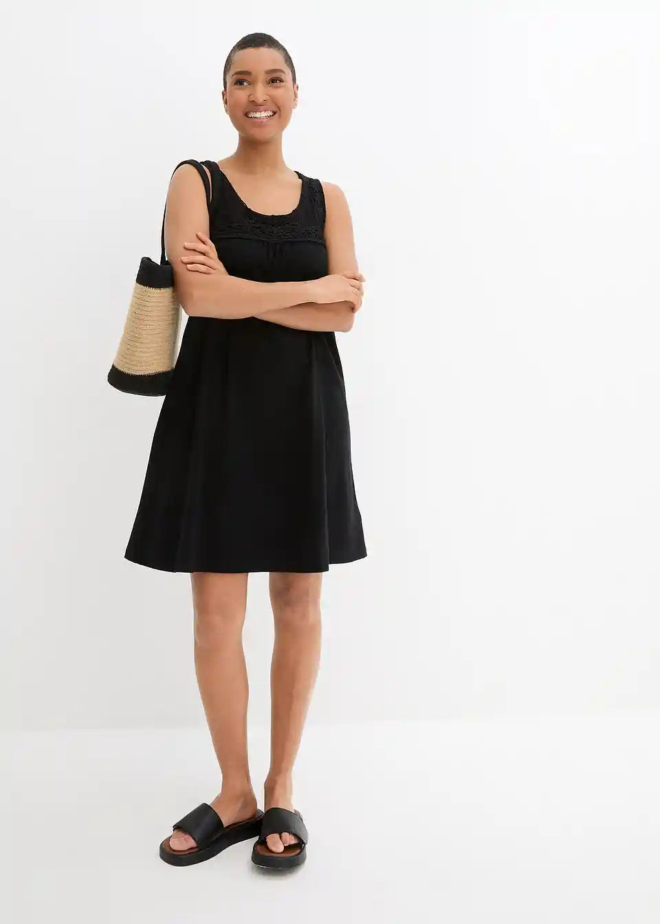 Srajčna obleka sproščenega kroja s lepim čipkastim vložkom brez rokavov iz bombaža
