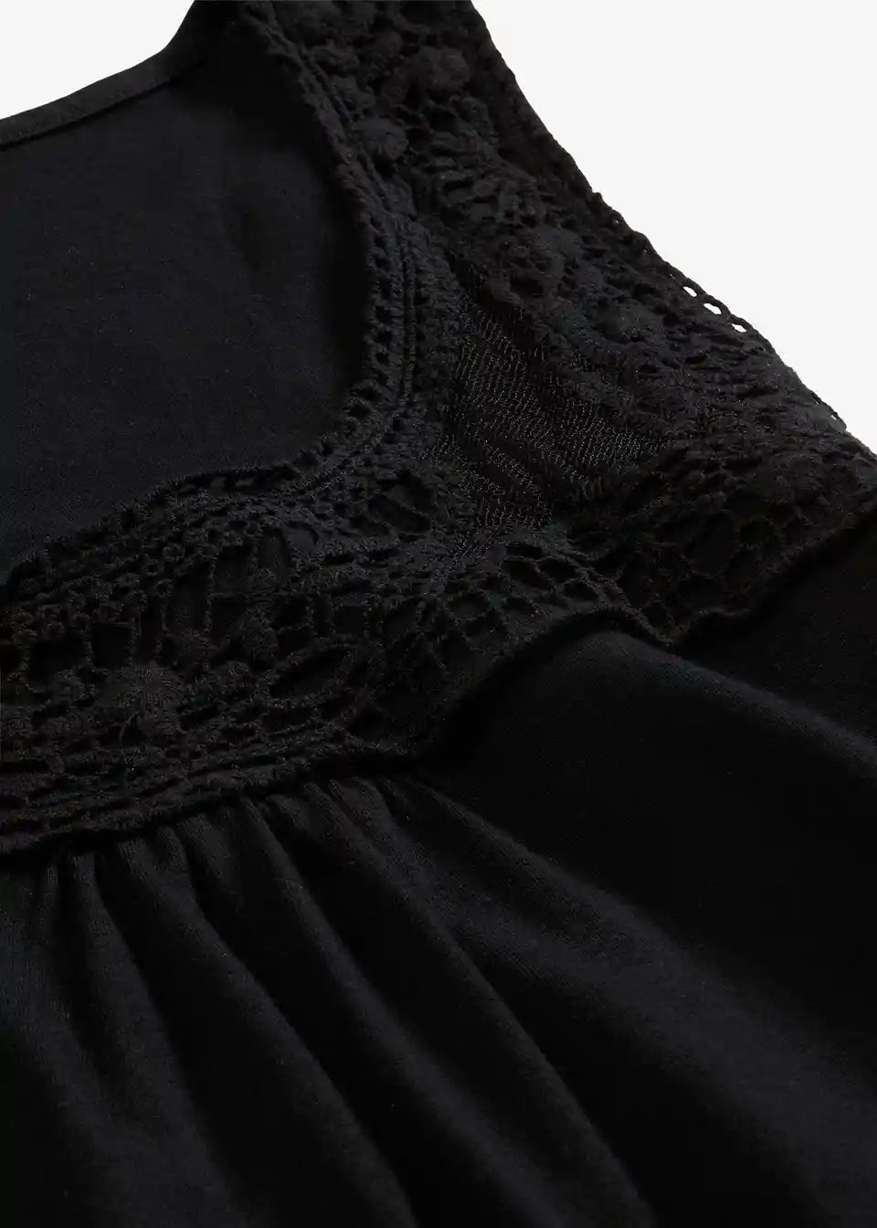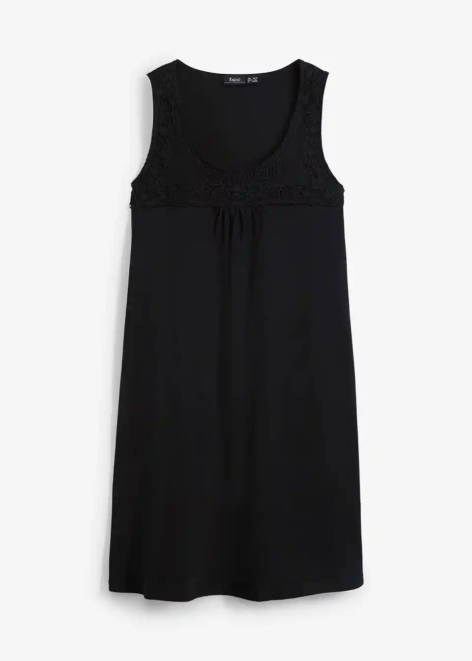 Kratka bombažna obleka iz trikoja s čipko brez rokavov