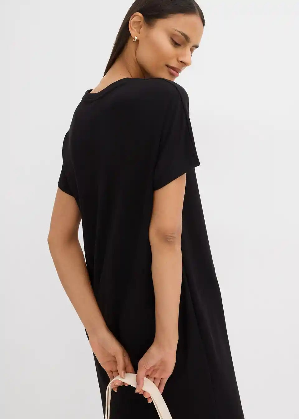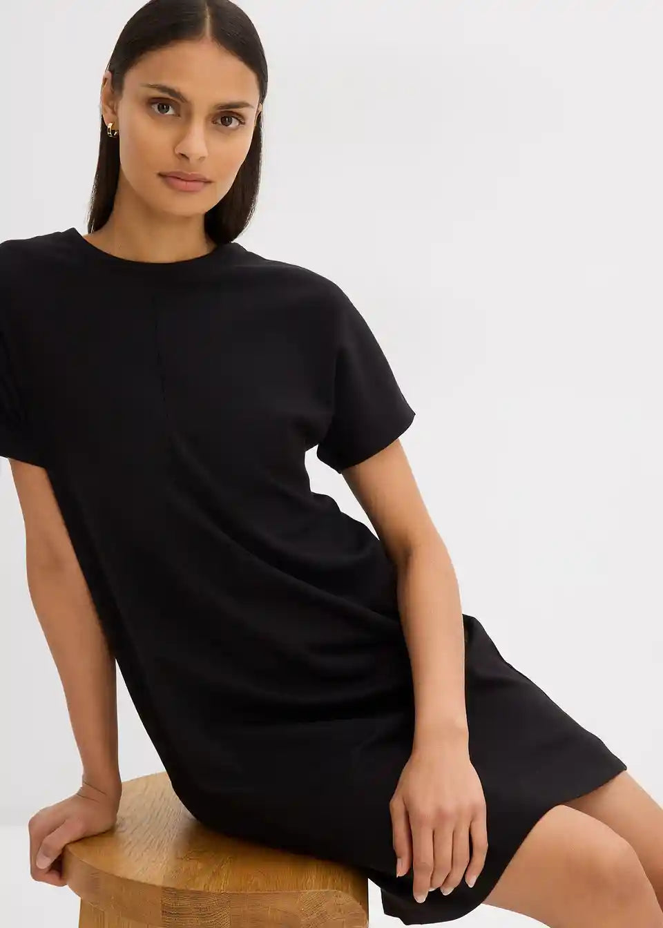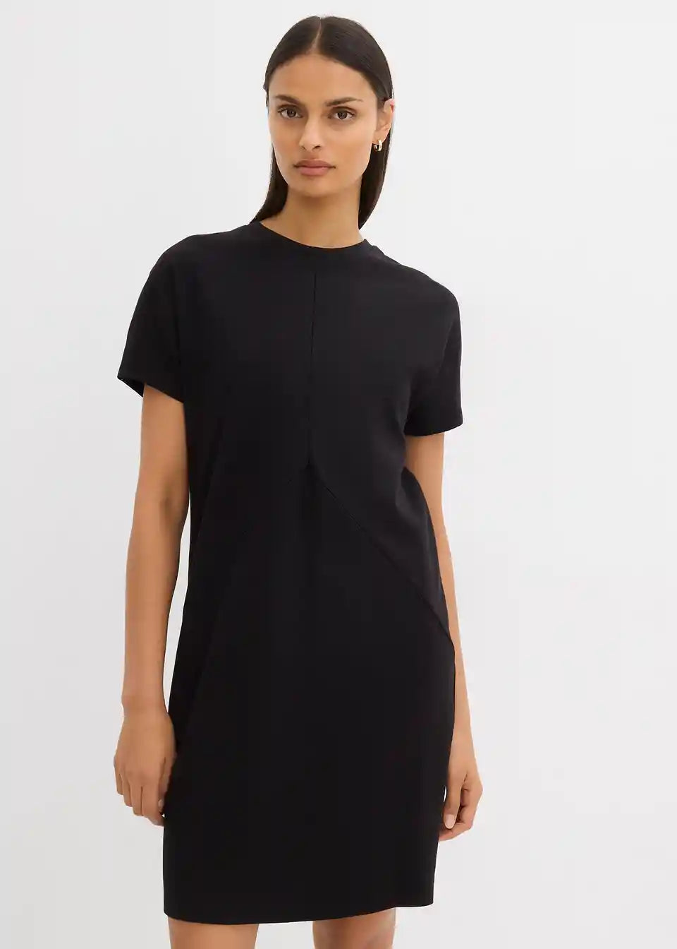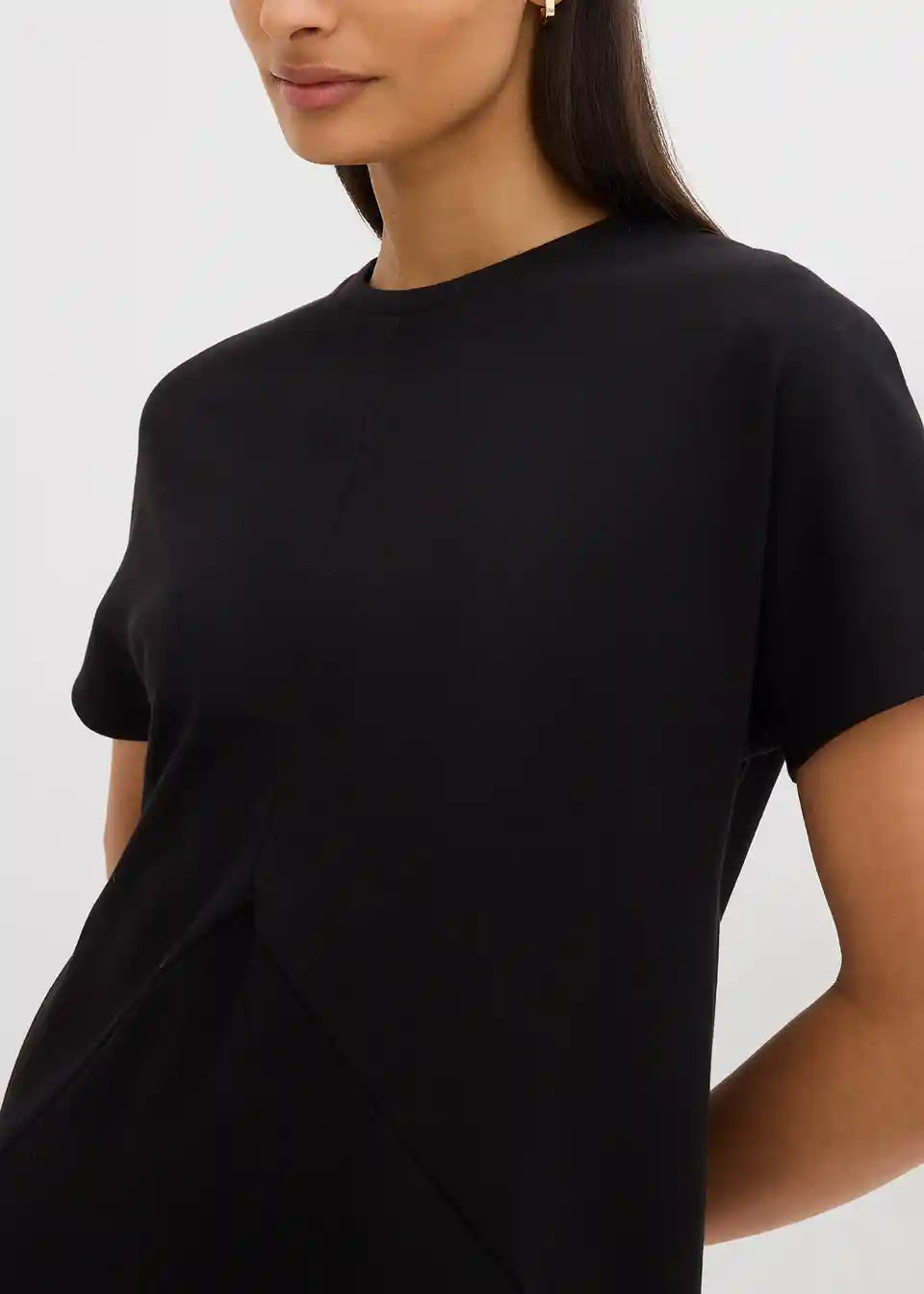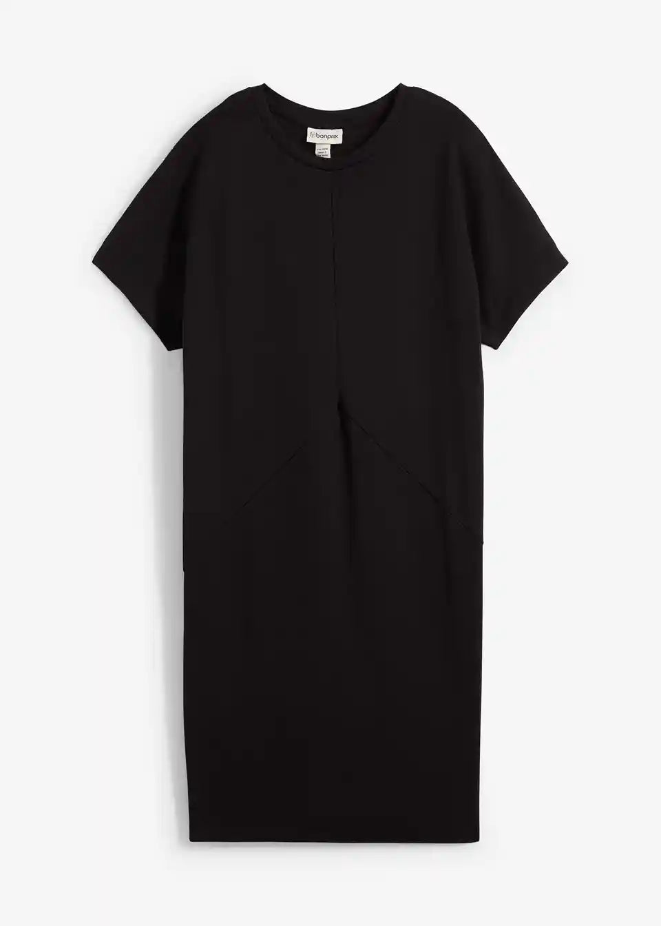 T-majica obleka z netopirskimi rokavi in prednjimi delilnimi šivi