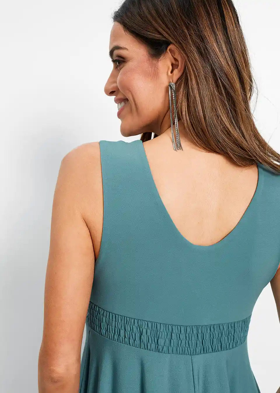 Elegantna majica obleka z udobnim smock vložkom zadaj