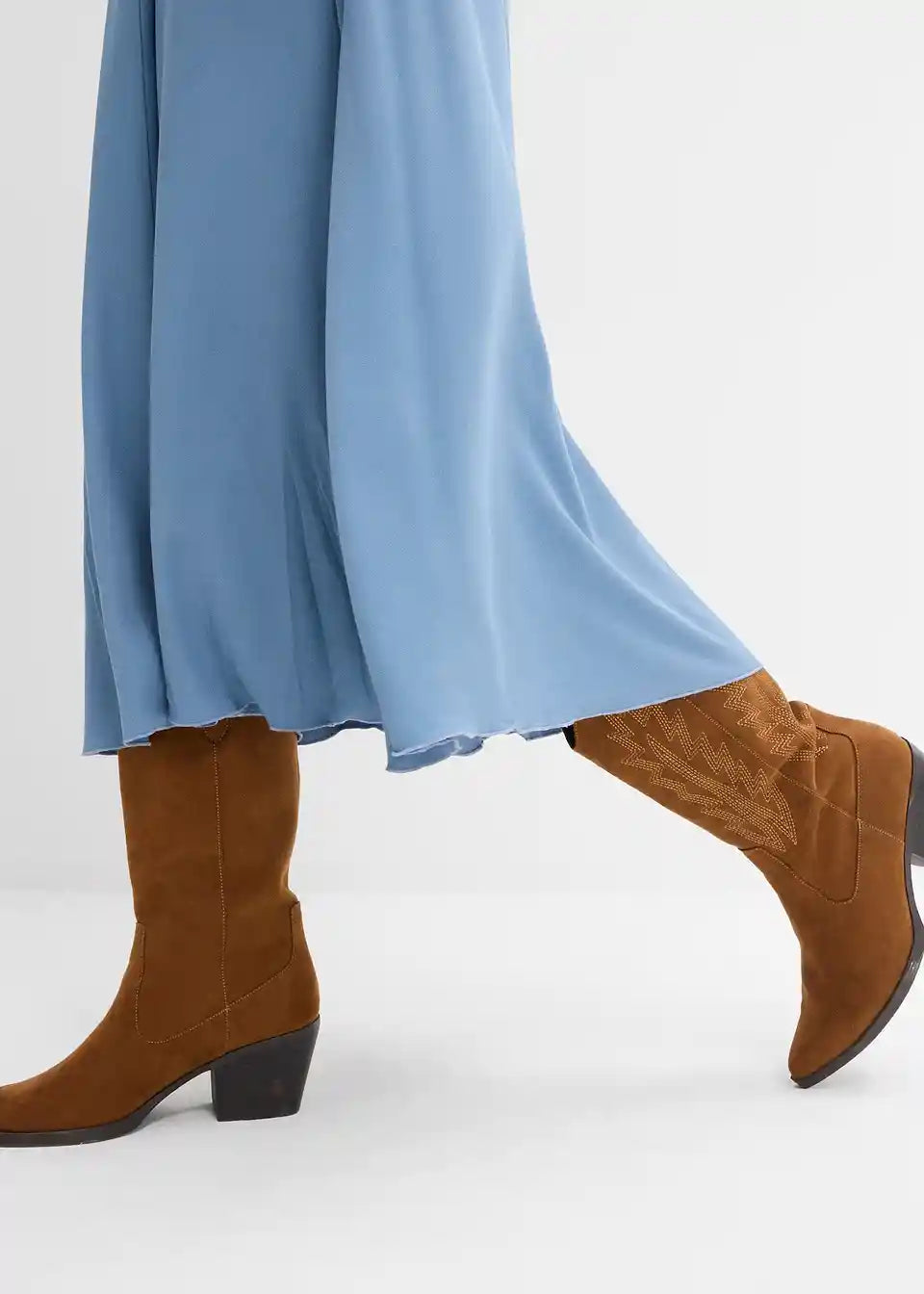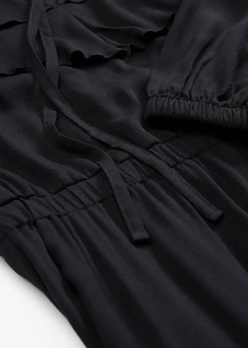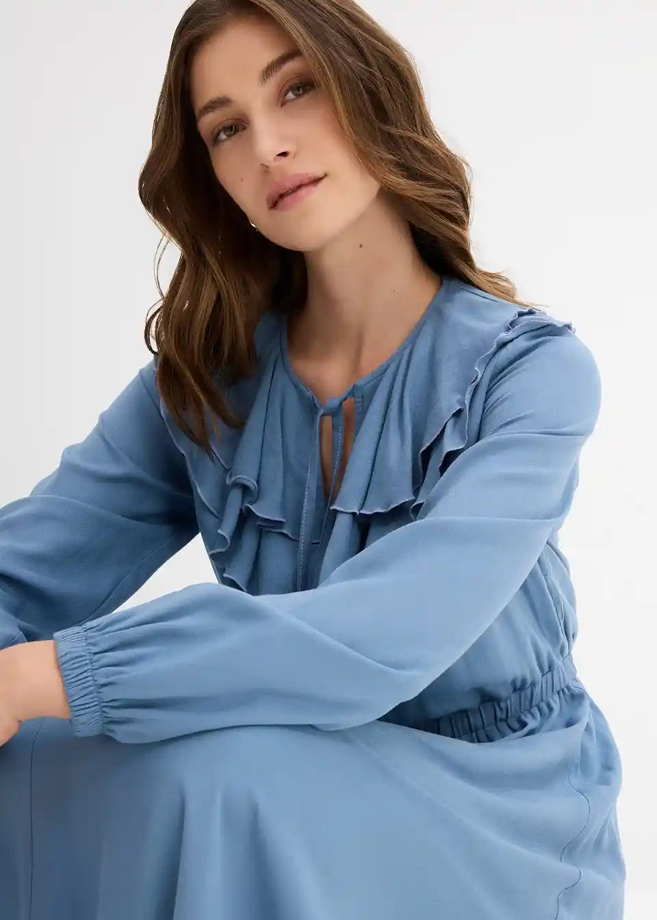 Dolga obleka z lepim ovratnikom in volanastim krilom