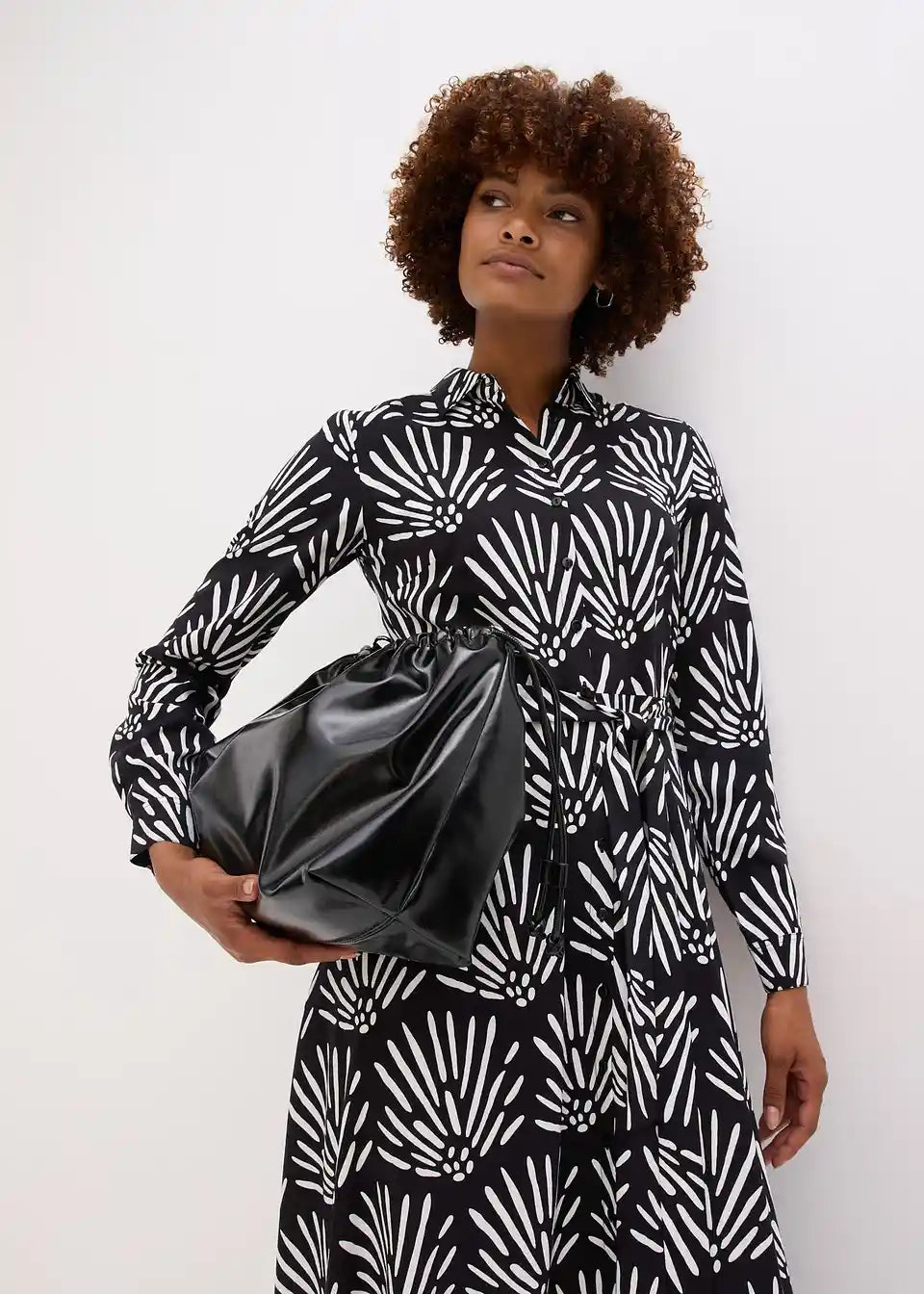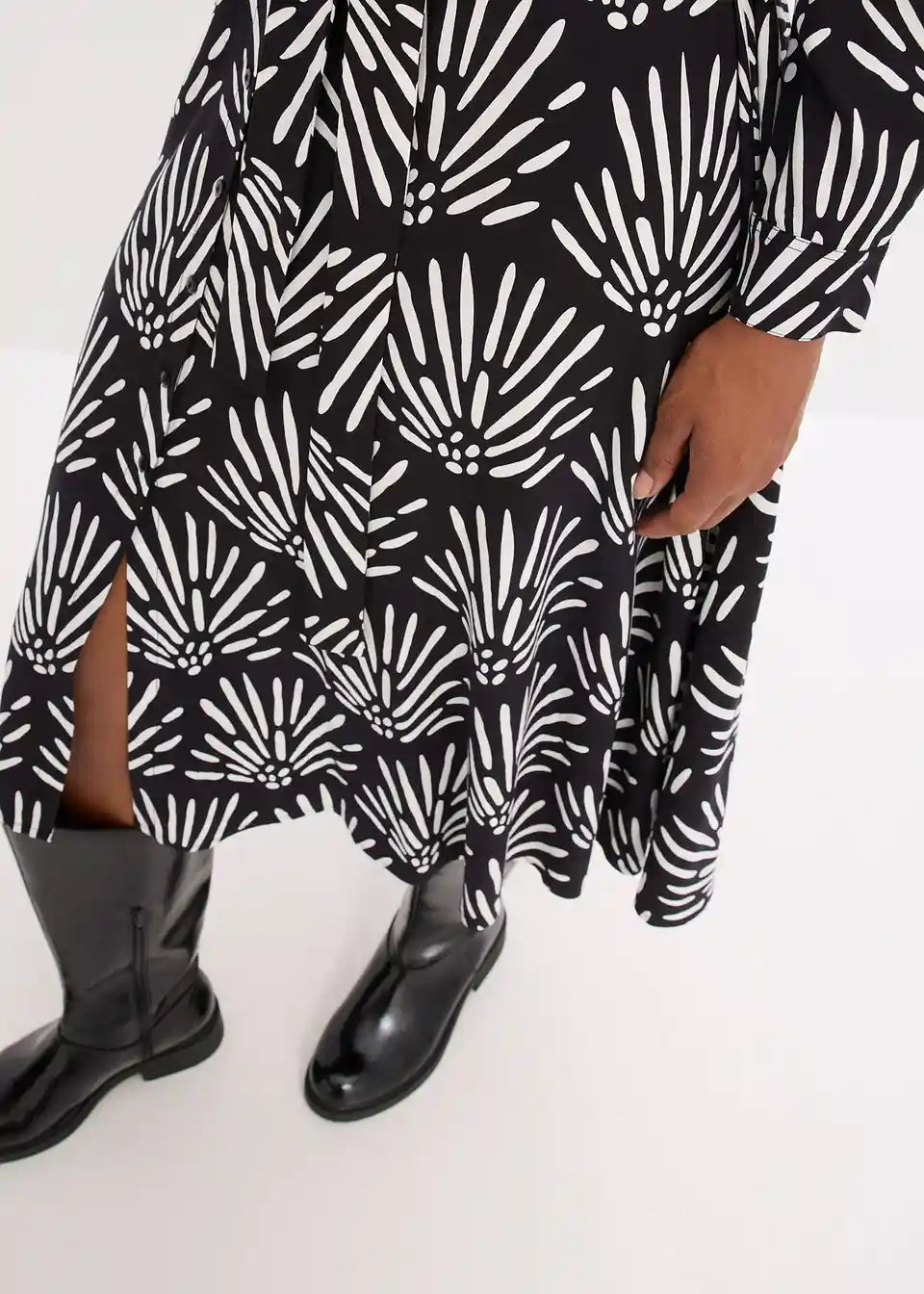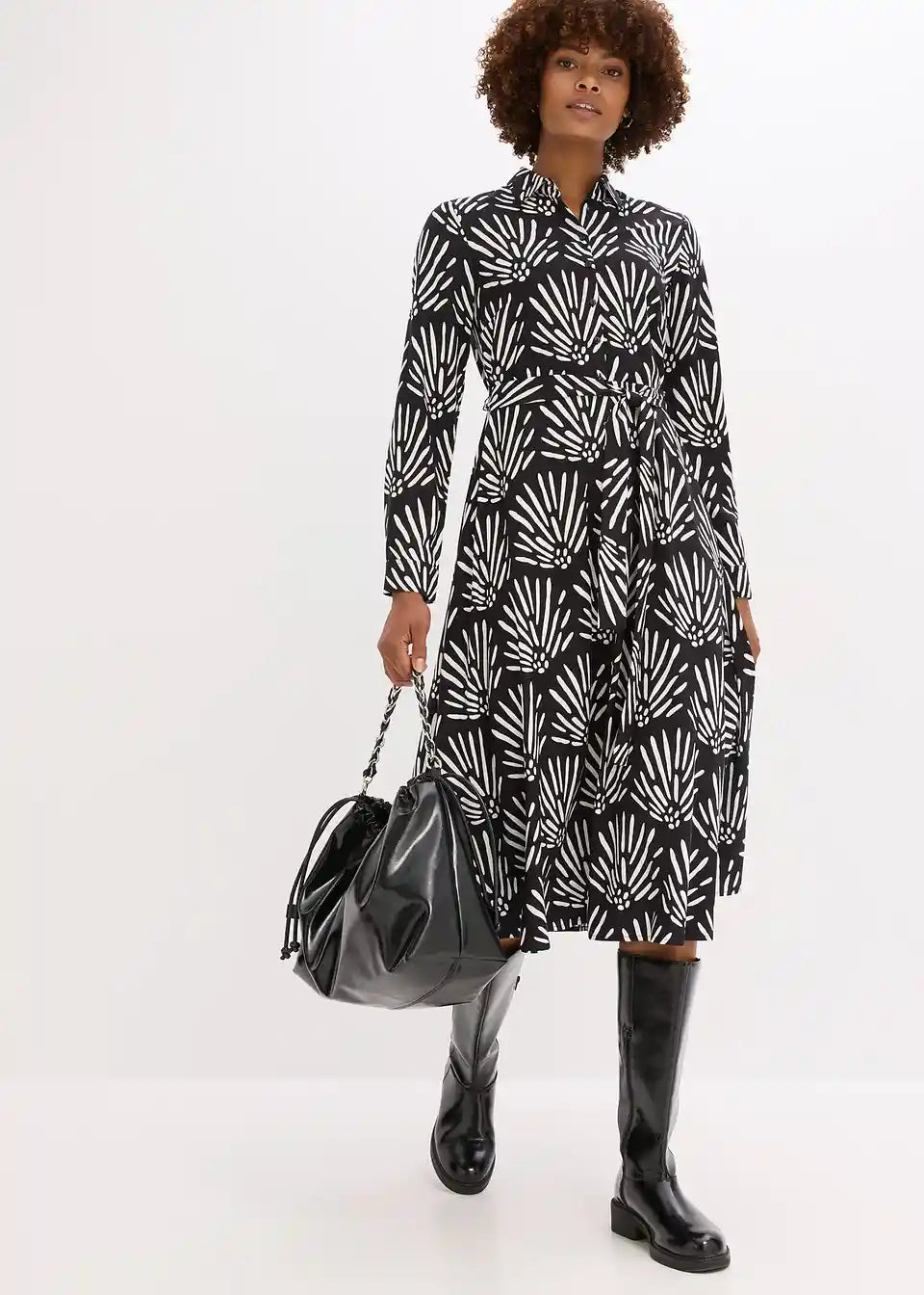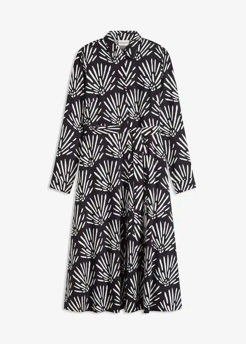 Modno potiskana srajčna obleka v midi dolžini s tankim pasom iz imitacije usnja v pasu