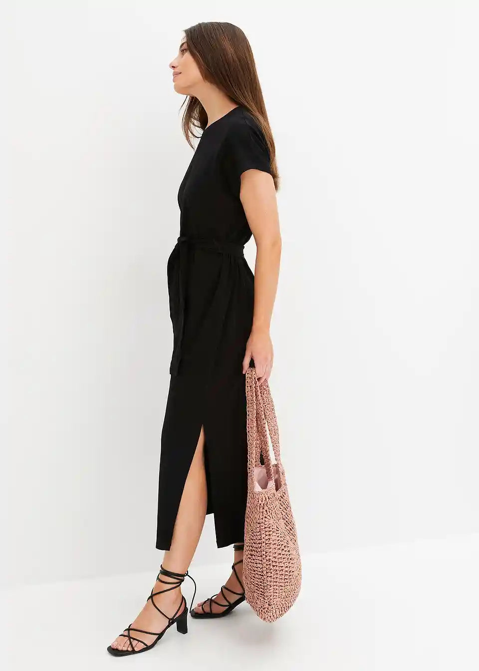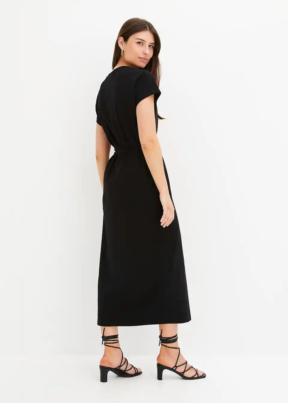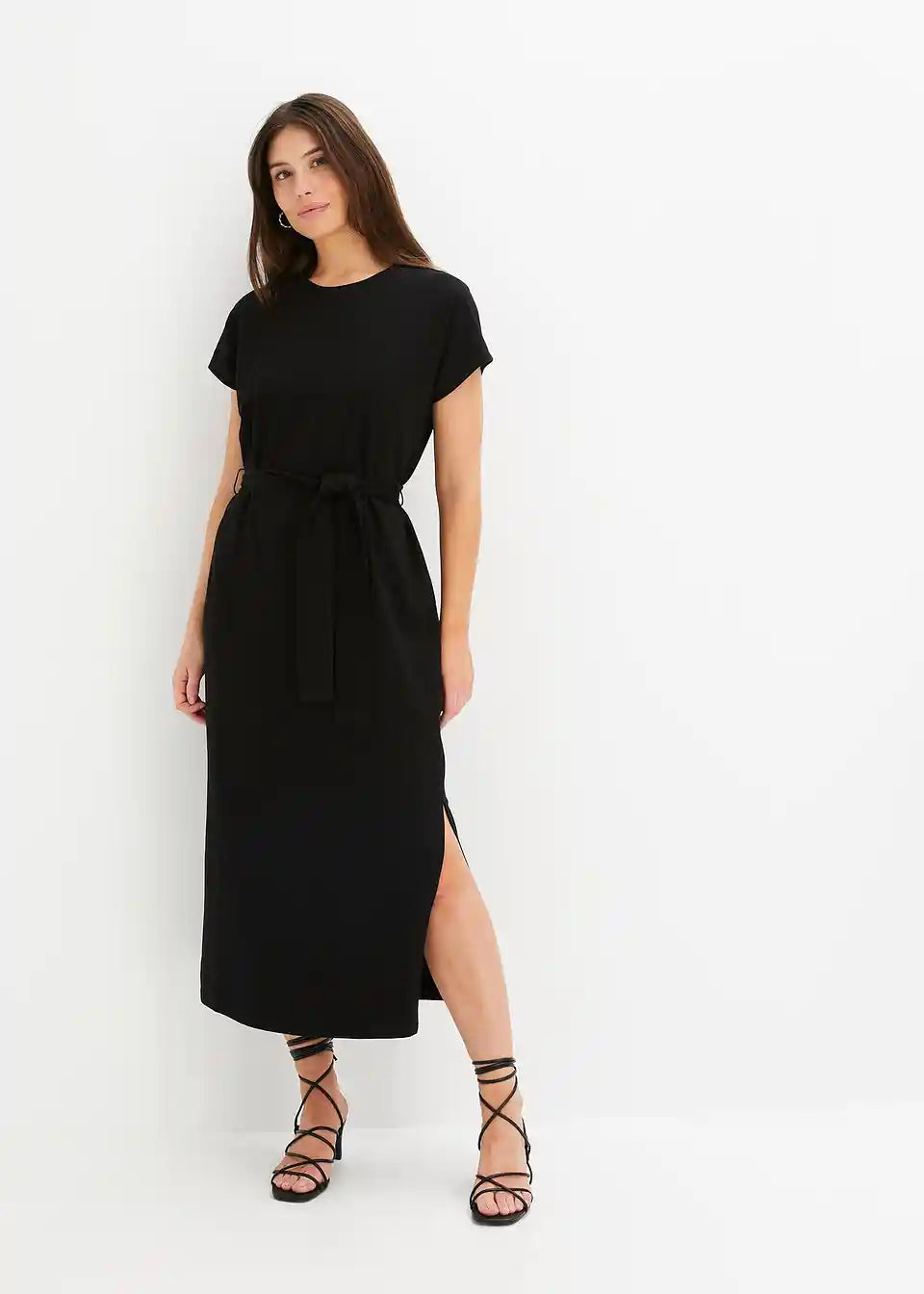 trendna midikleid z ujemajočim se pasom za zavezovanje