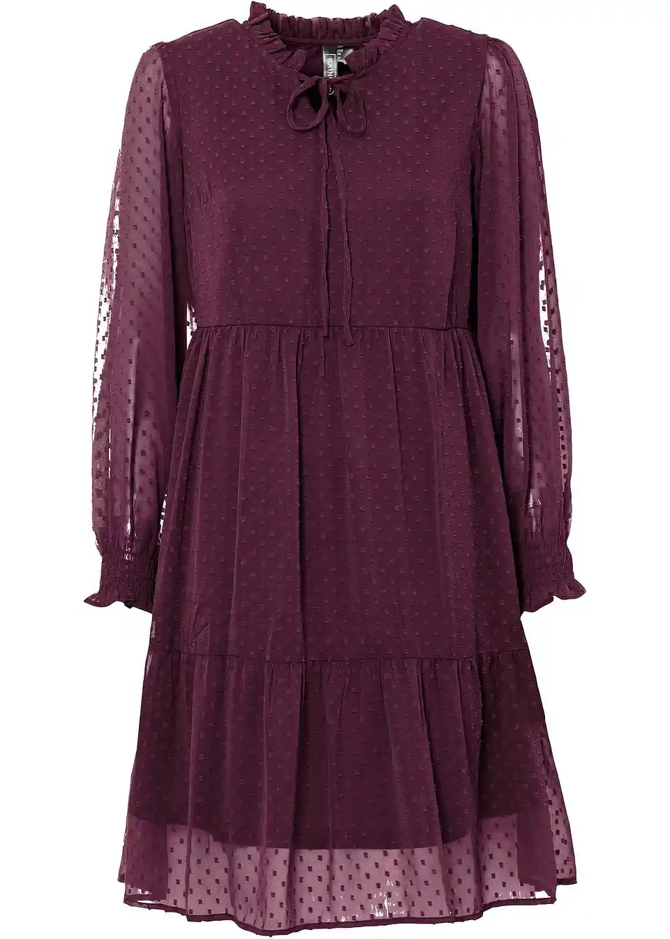 Šifonska obleka s ovratnikom in vezalkami spredaj