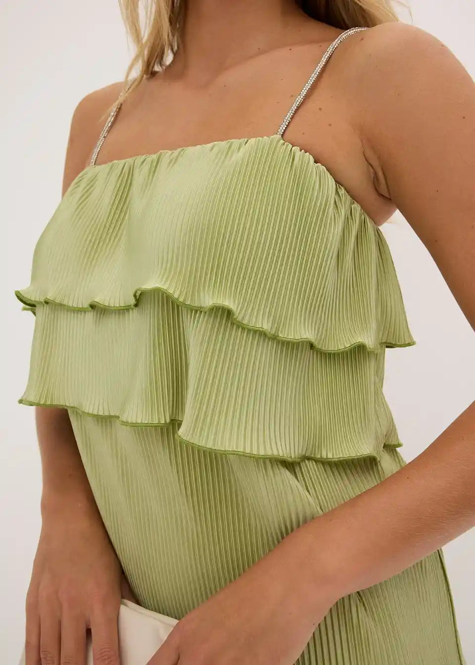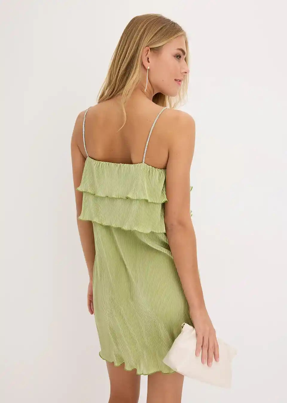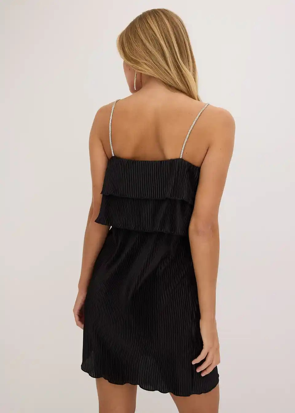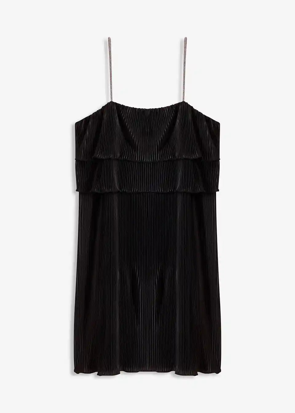 Mini obleka s plisejem in svetlikajočimi naramnicami