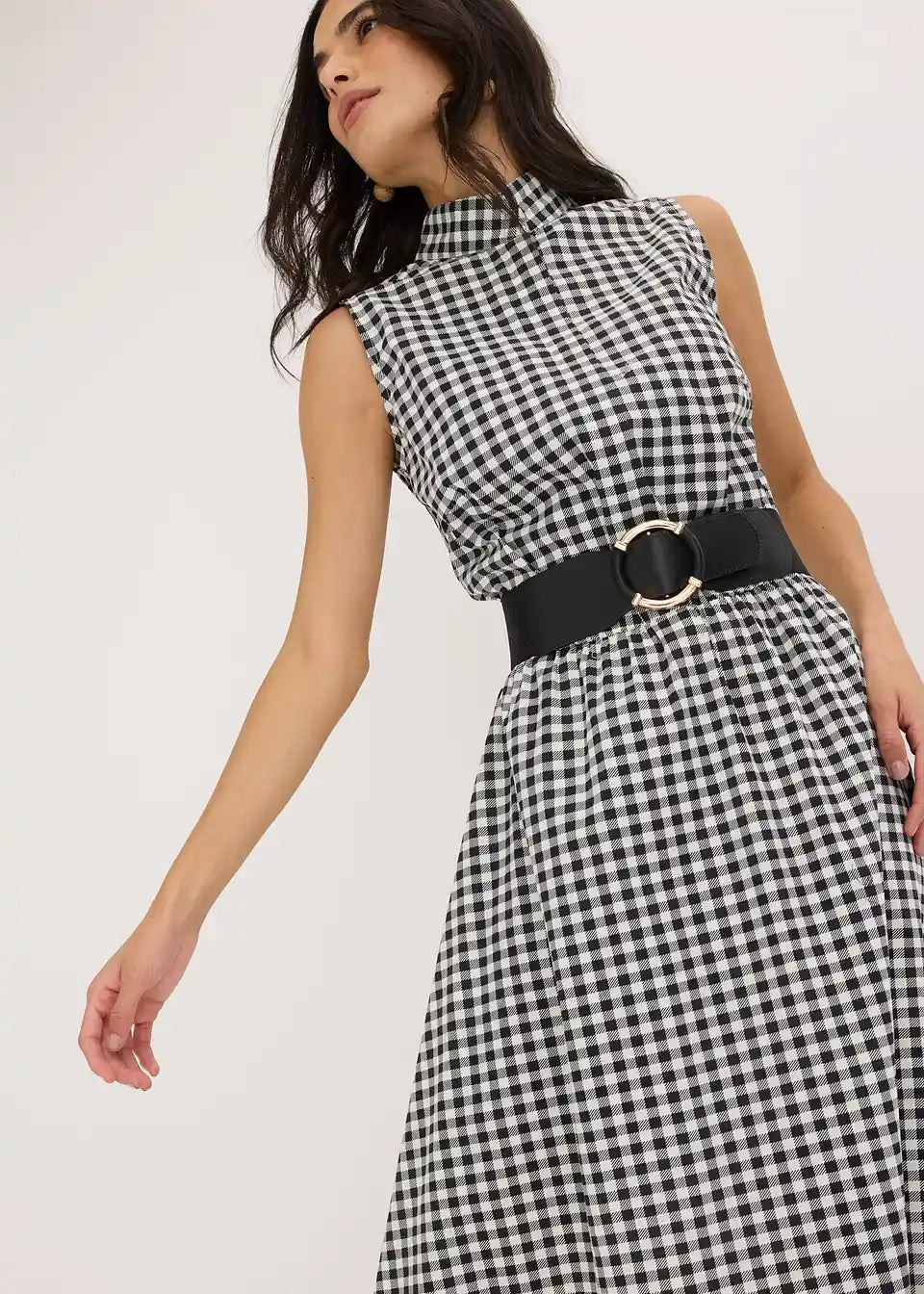 elegantna obleka iz bombažnega poplina s karo vzorcem Vichy
