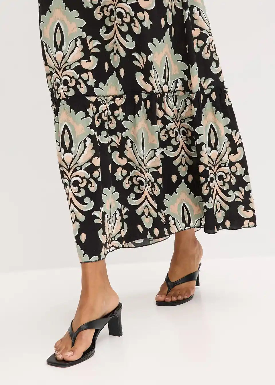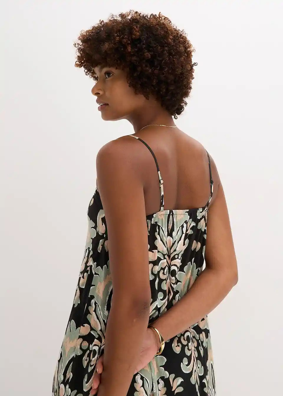 široko krojena obleka s trakovi v maksi dolžini iz strukturirane viskoze