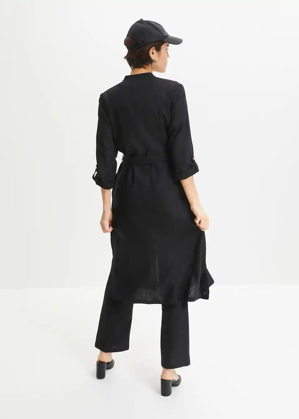 Lanena obleka z žepi in ¾ rokavi za zavihati