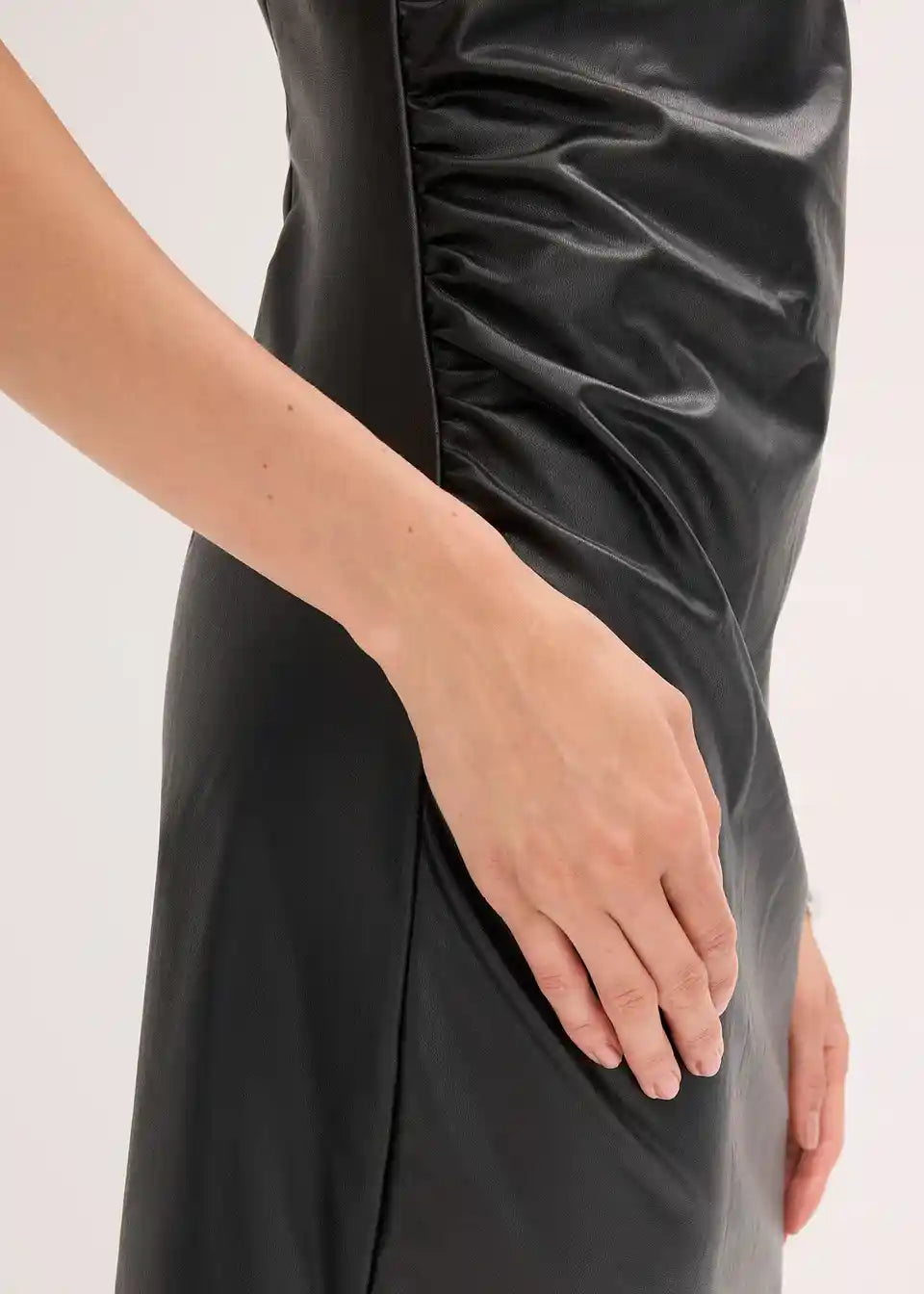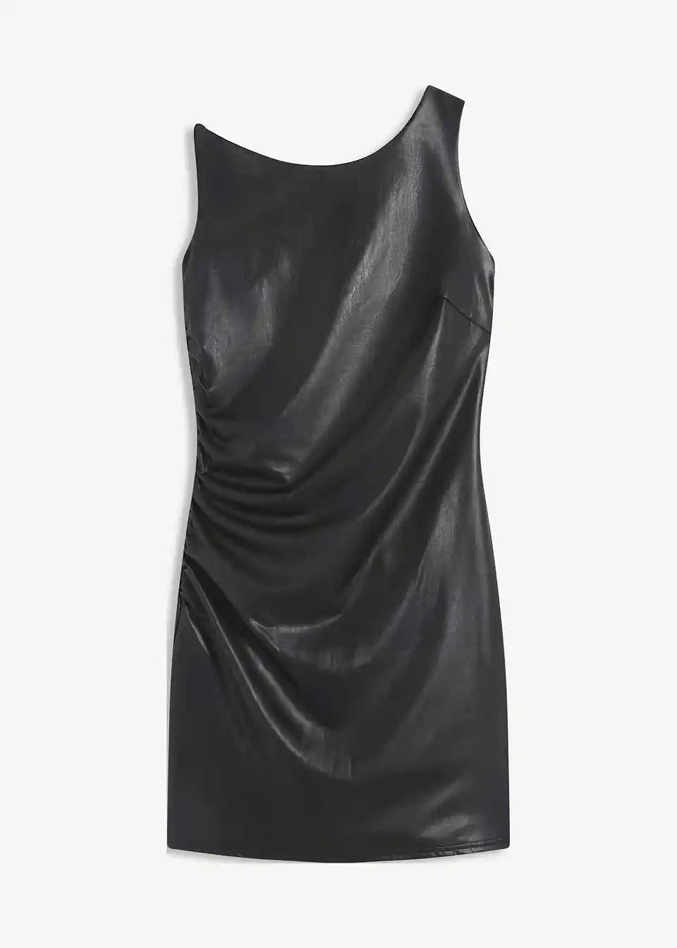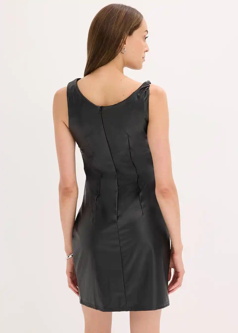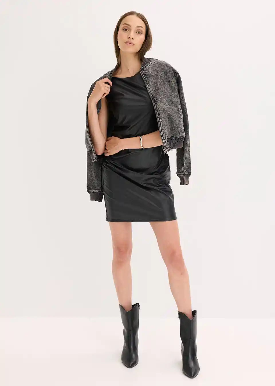 Stilna mini obleka z odličnim prileganjem iz umetnega usnja