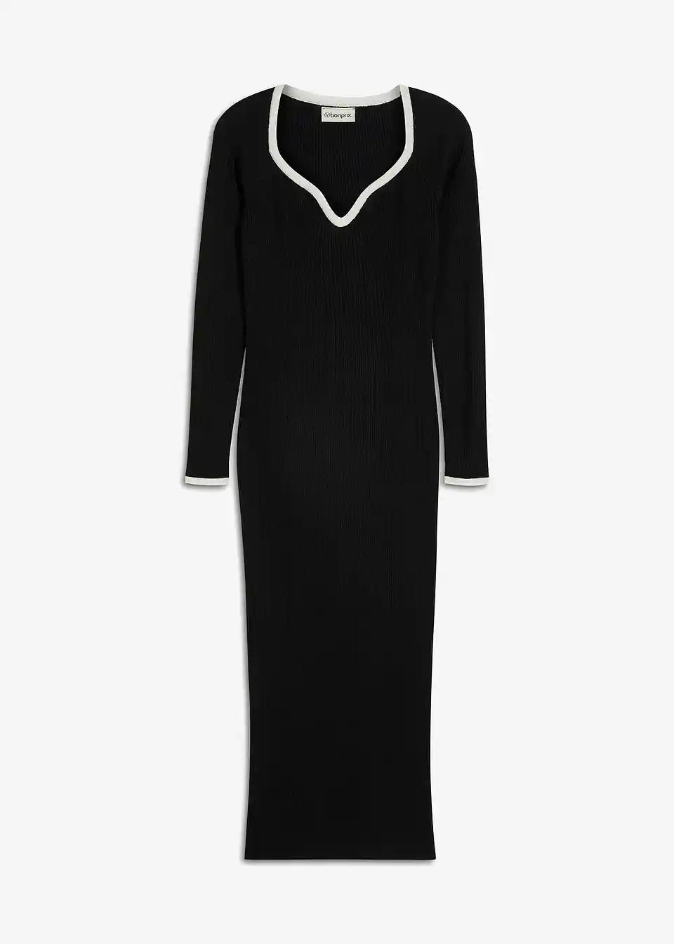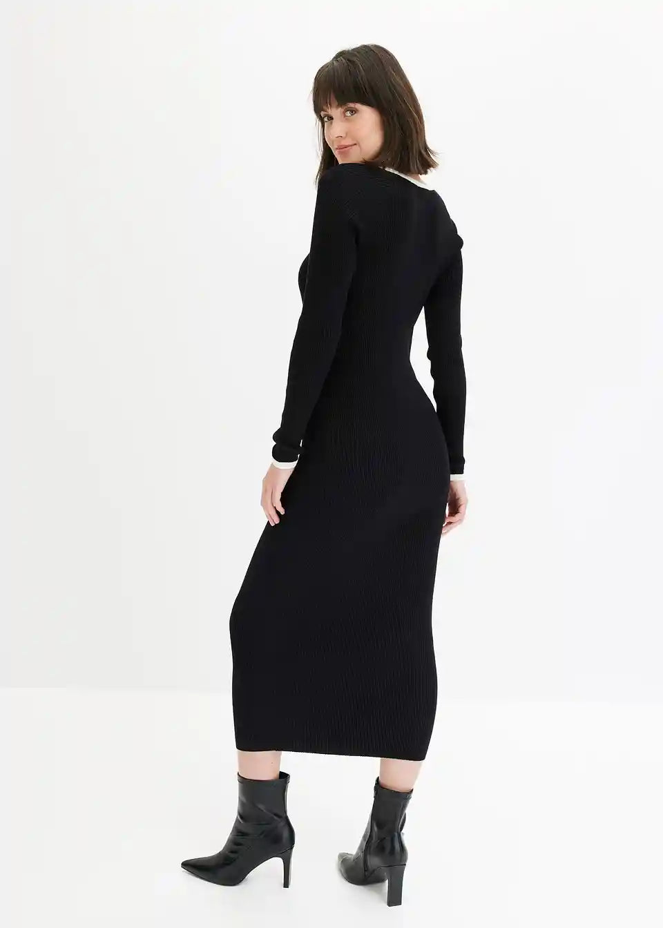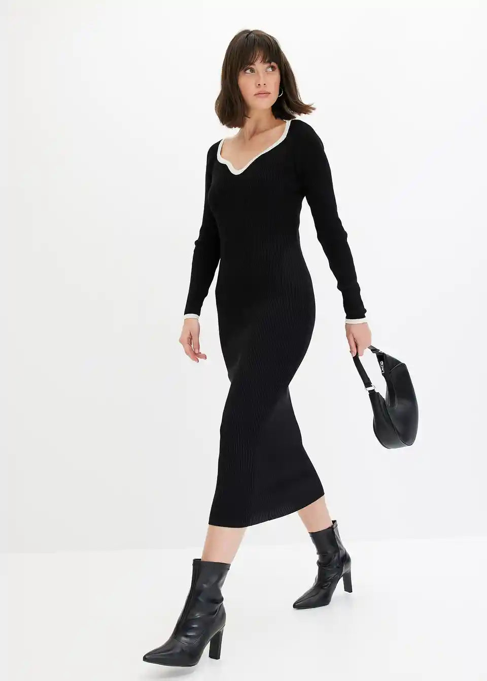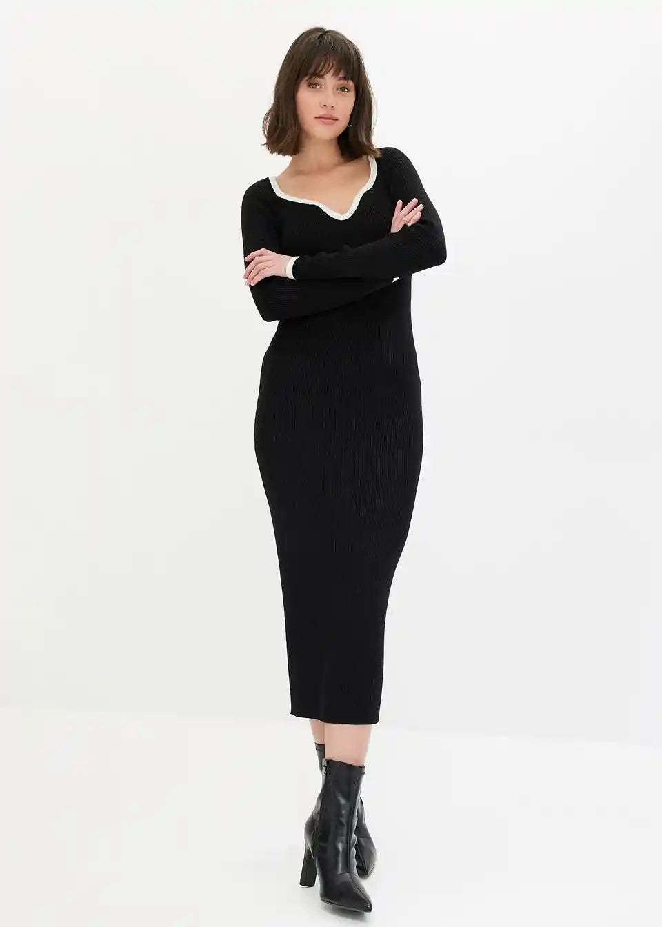 Pleteno obleko s kontrastnim zaključkom na izrezu