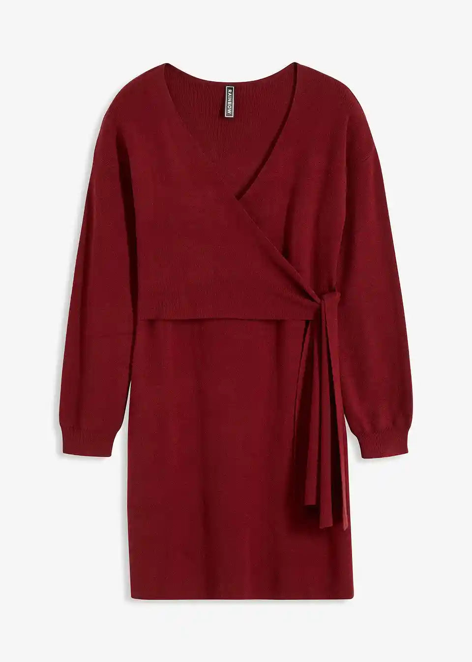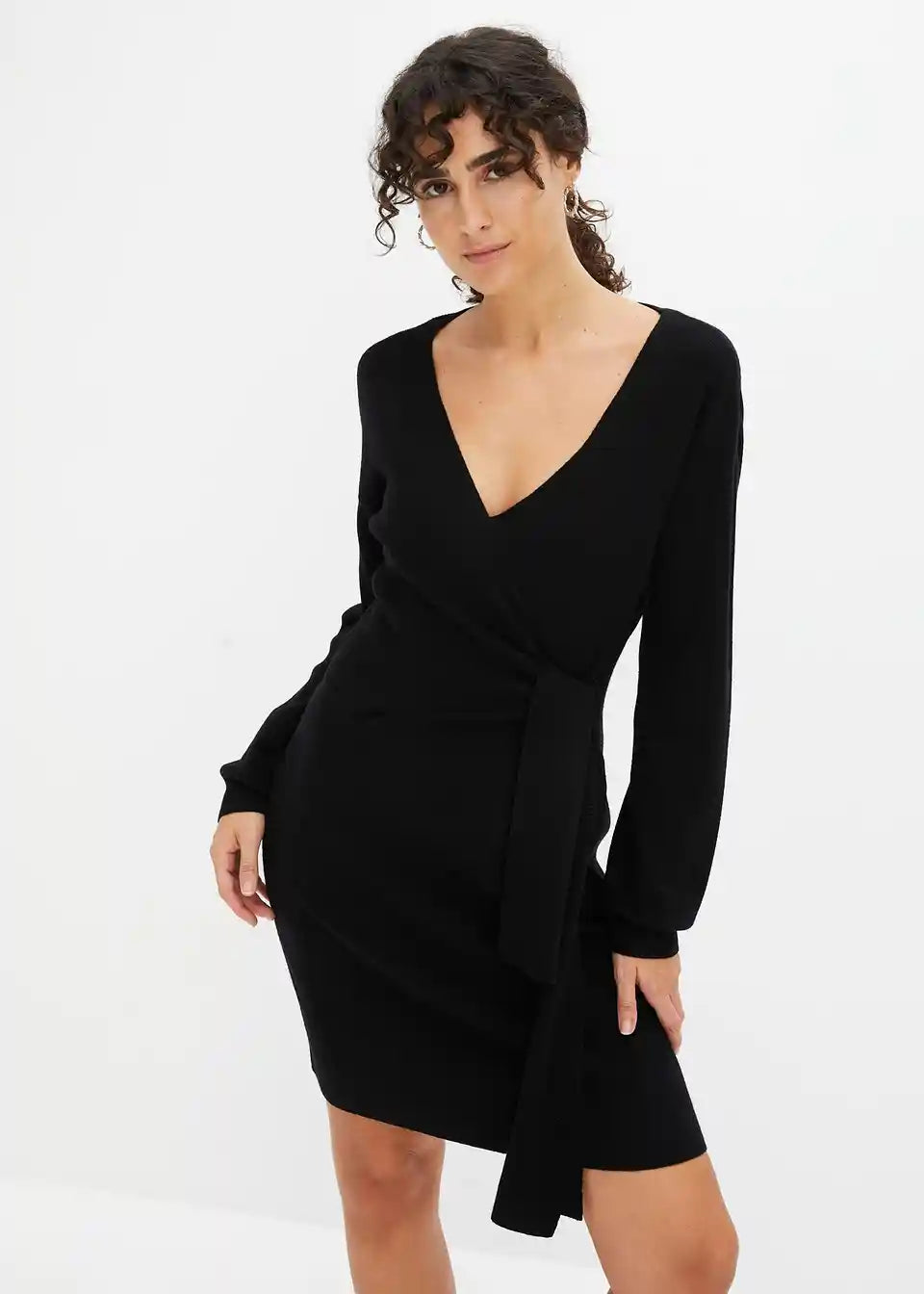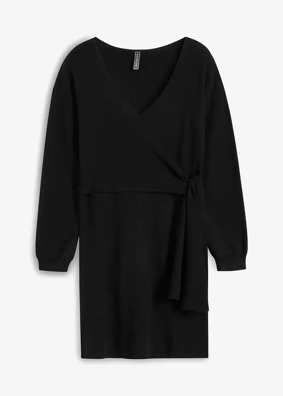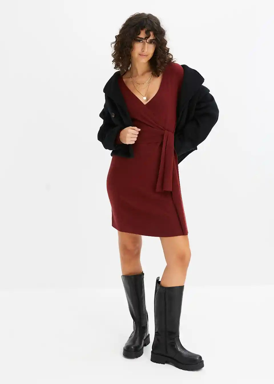 Kratka pletena obleka v videzu zavijanja z V-izrezom