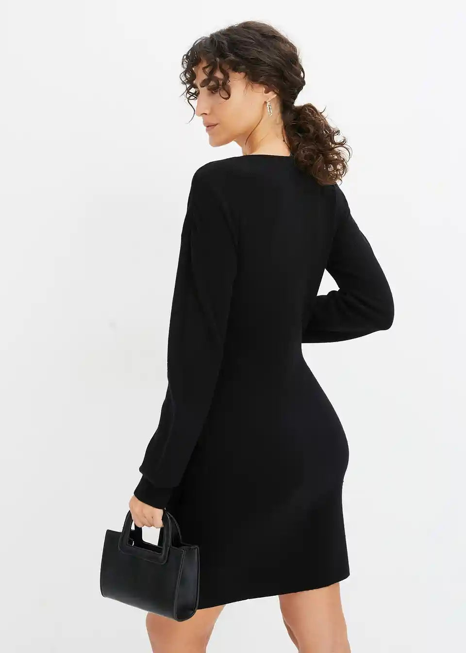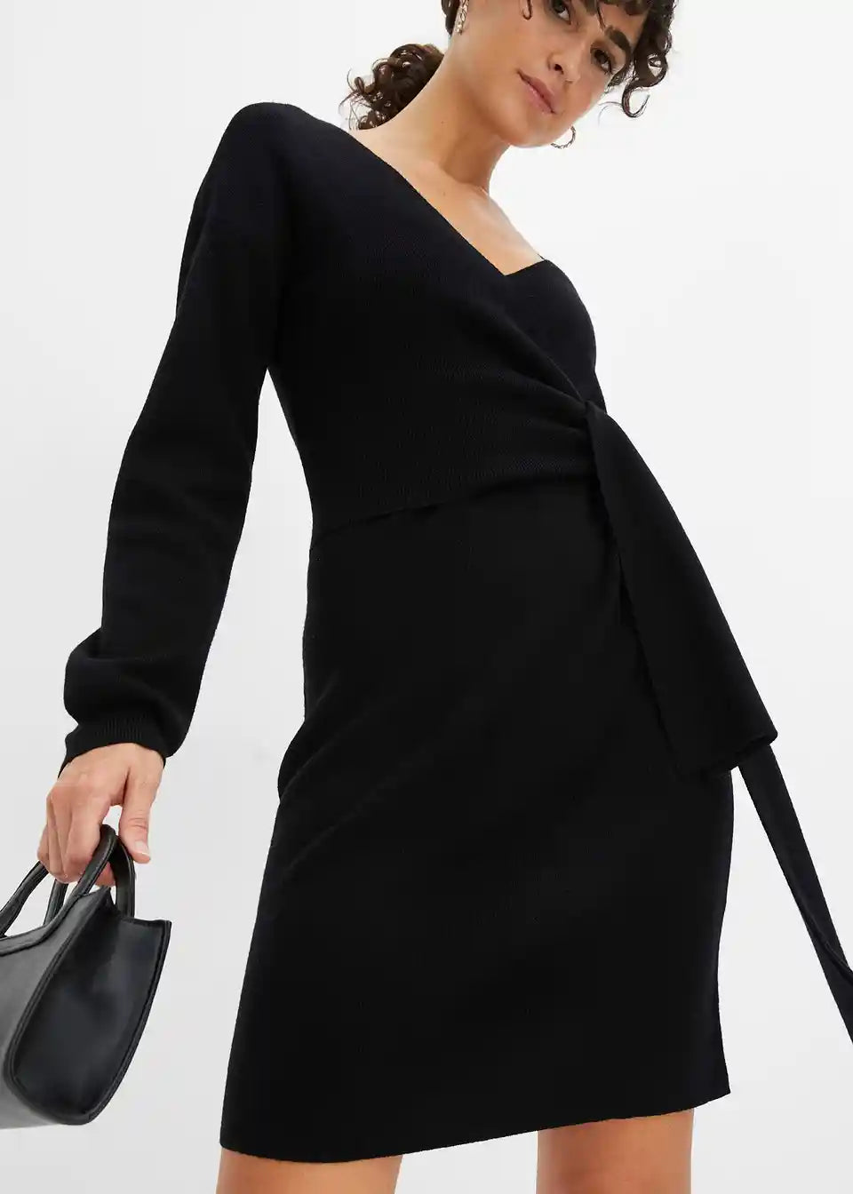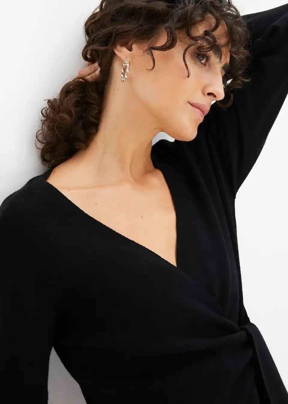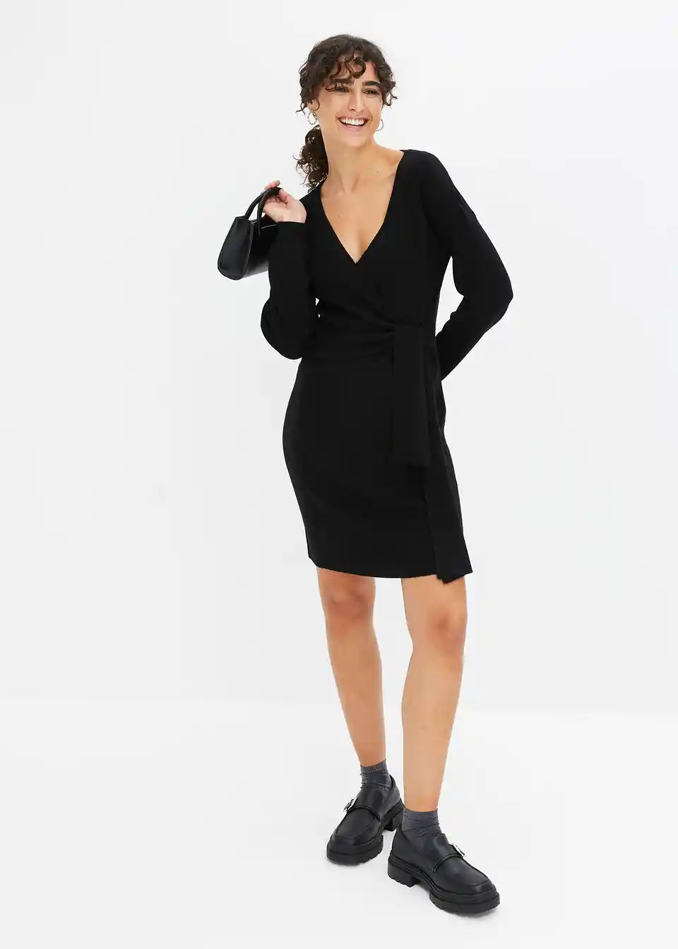 Kratka pletena obleka v videzu zavijanja z V-izrezom