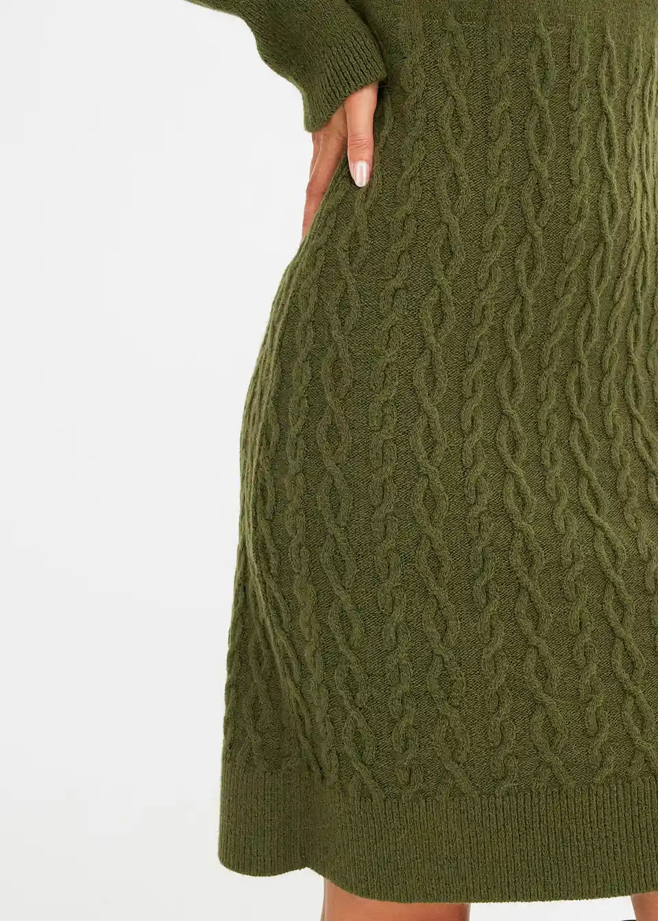 ženska pletena obleka z pletenim vzorcem