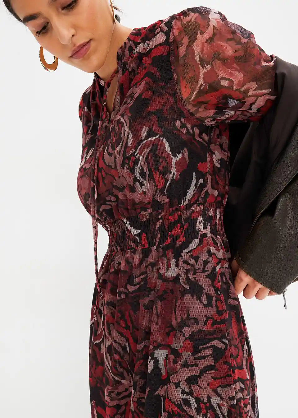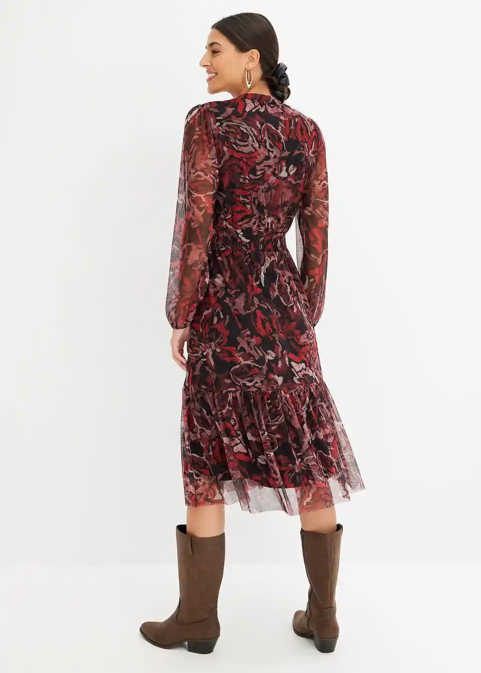 Potiskana mrežasta midi obleka