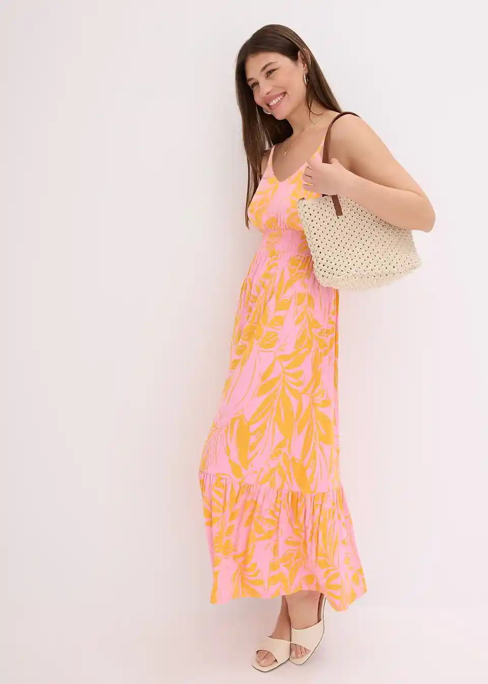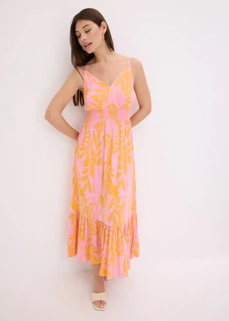 Potiskana obleka z naramnicami iz mehke viskozne mešanice