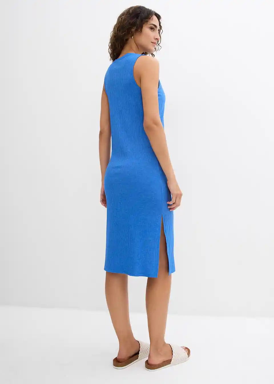 Rebrasta obleka s stranskimi razporki iz padajoče viskozne mešanice