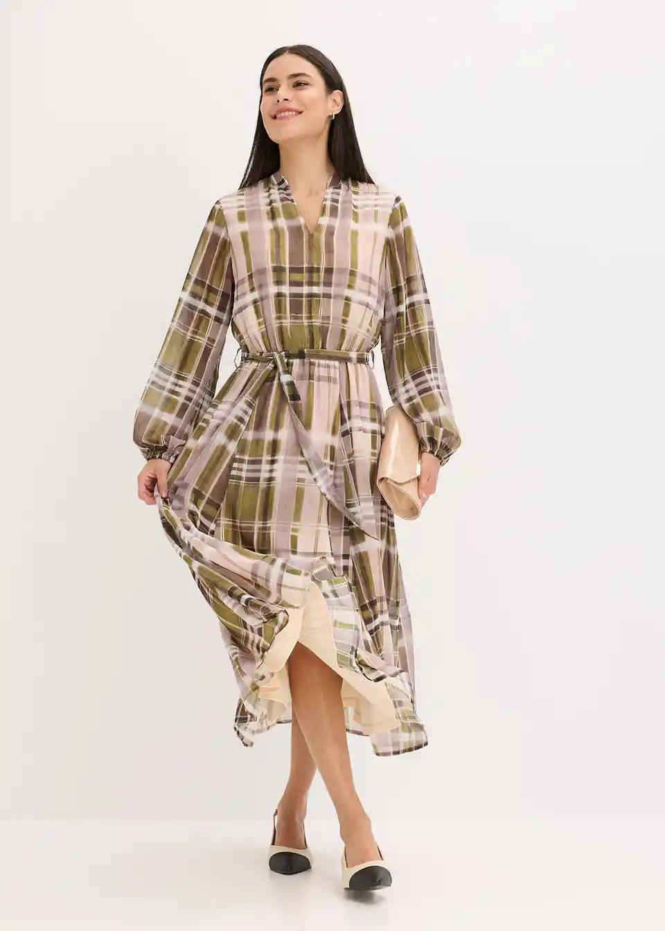 Elegantna obleka iz šifona s trakom za zavezovanje