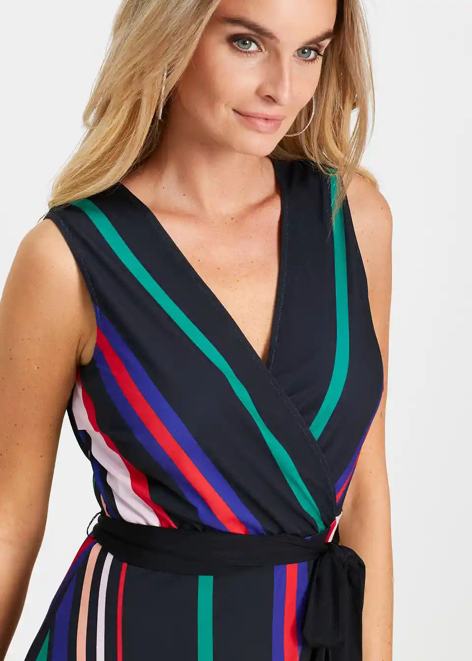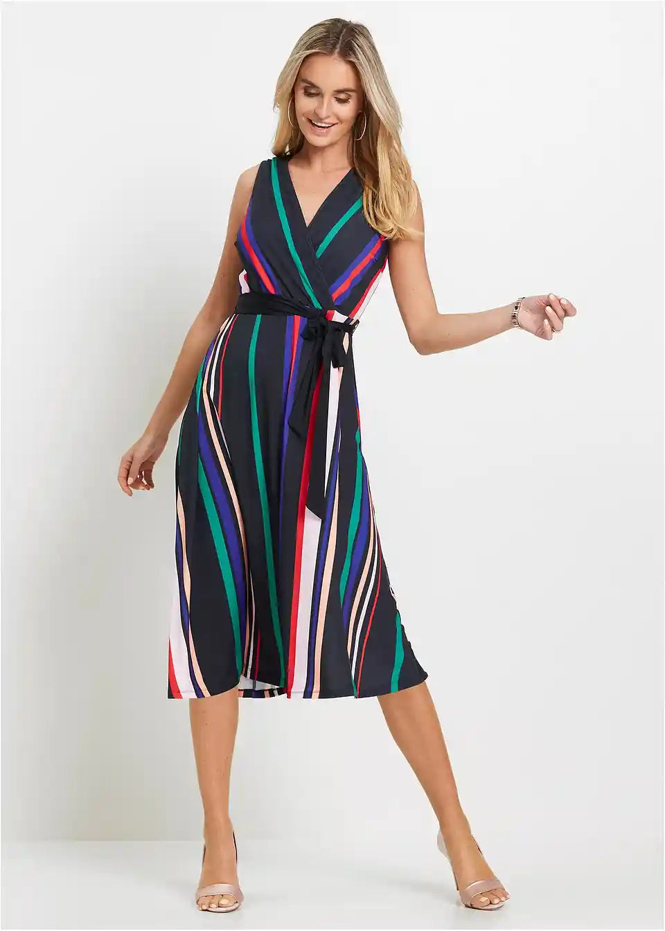 Privlačna obleka srednje dolžine z zavezovalnim trakom