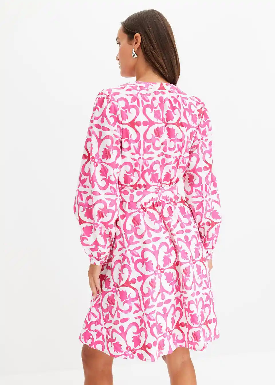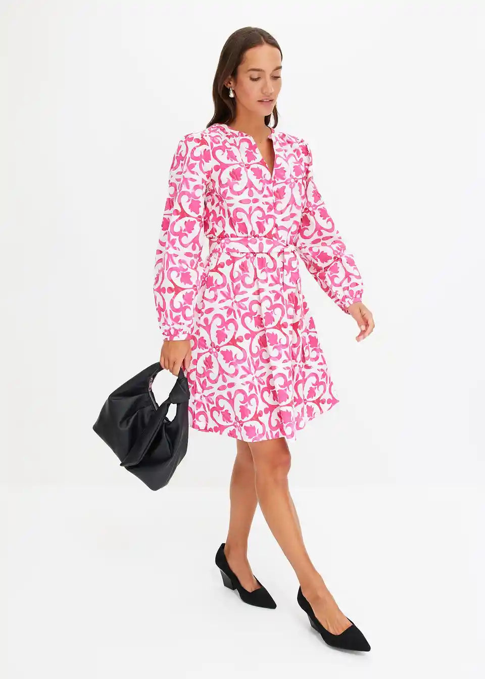 tiskana obleka z zavezovanjem v pasu