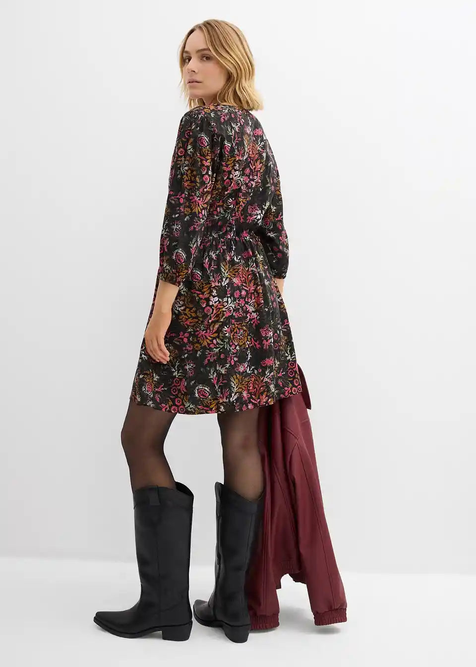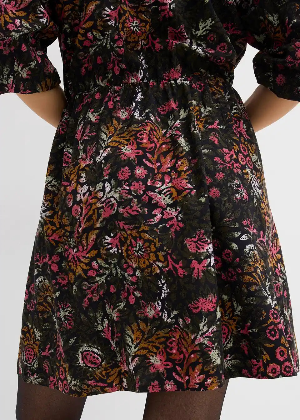 Obleka z razširjenim spodnjim robom in globokim V-izrezom iz padajoče viskoze