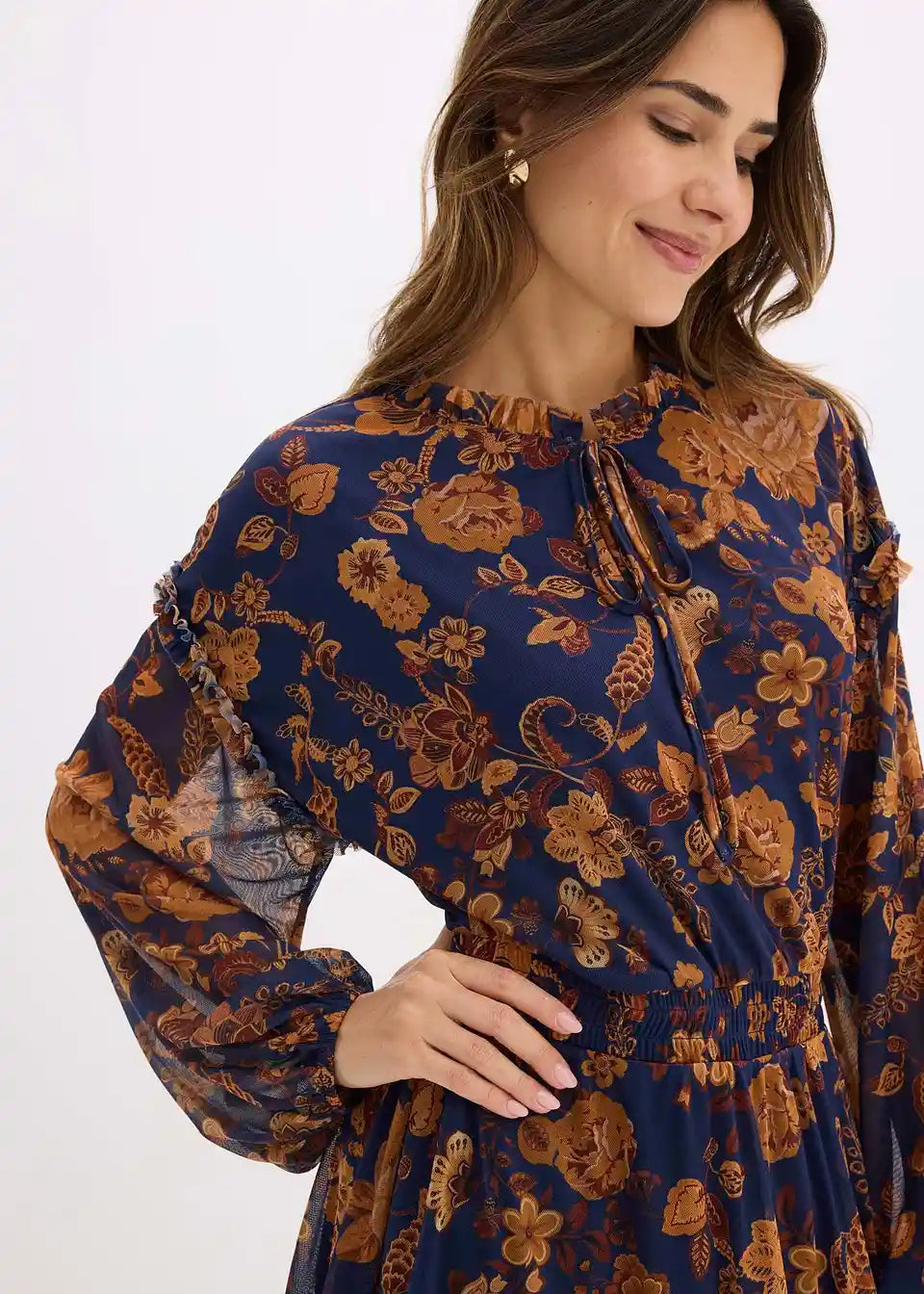 Obleka v kroju tunike iz mehke mreže