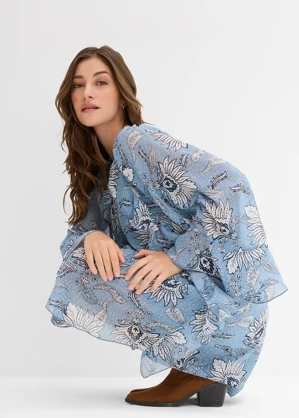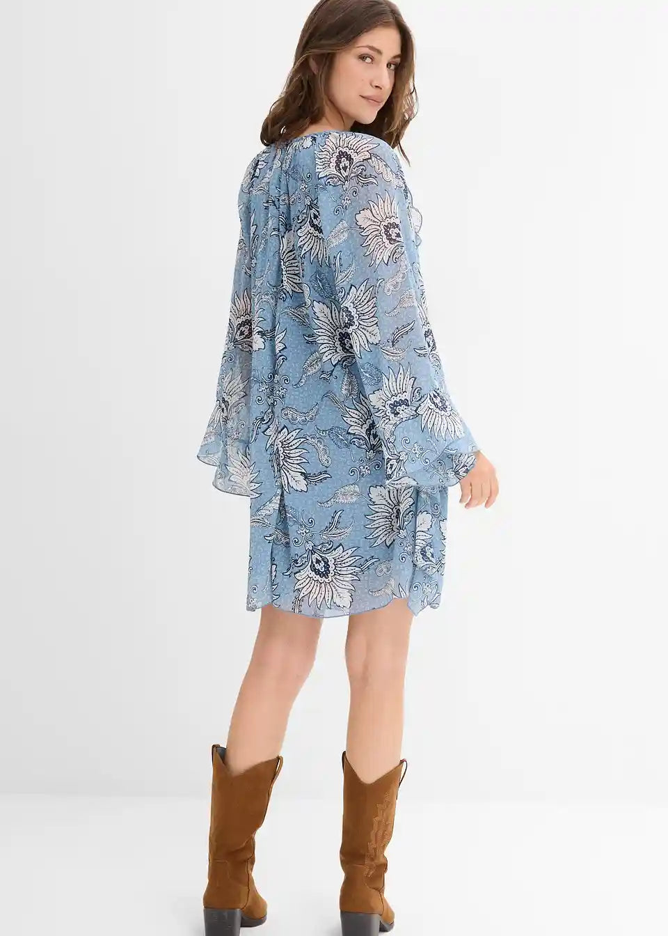 Obleka v kroju tunike iz strukturiranega šifona