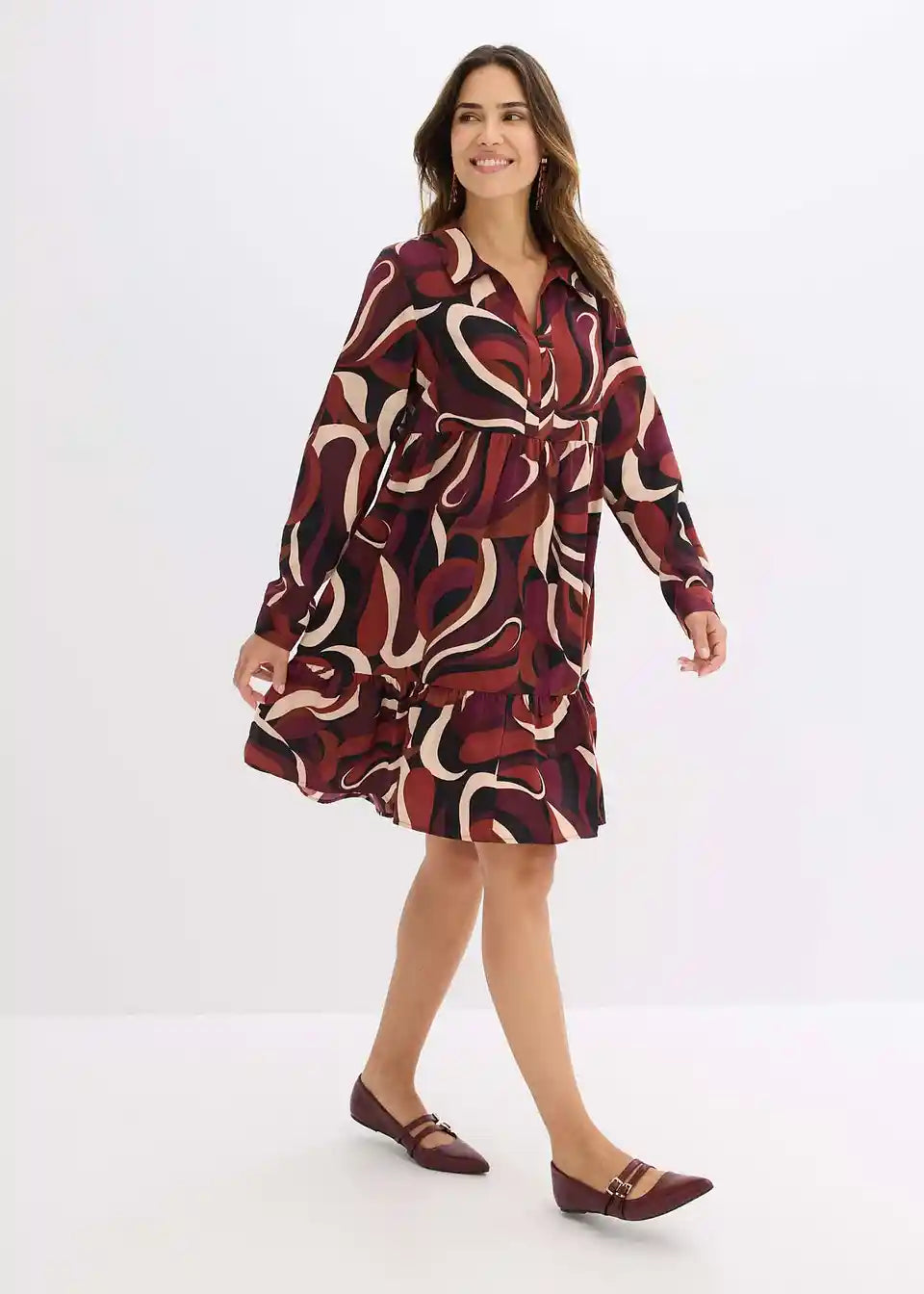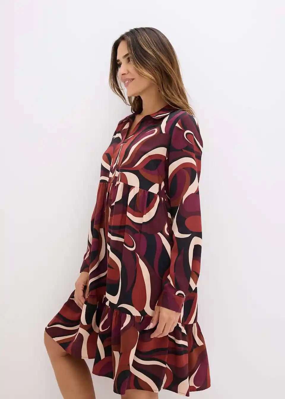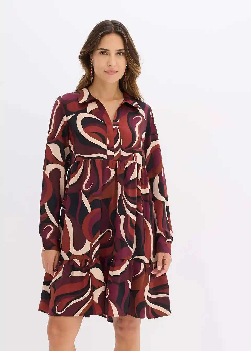 Obleka v kroju tunike iz padajočega satena z modnim potiskom