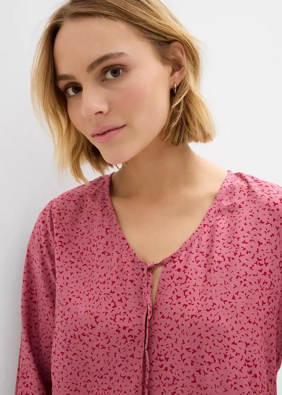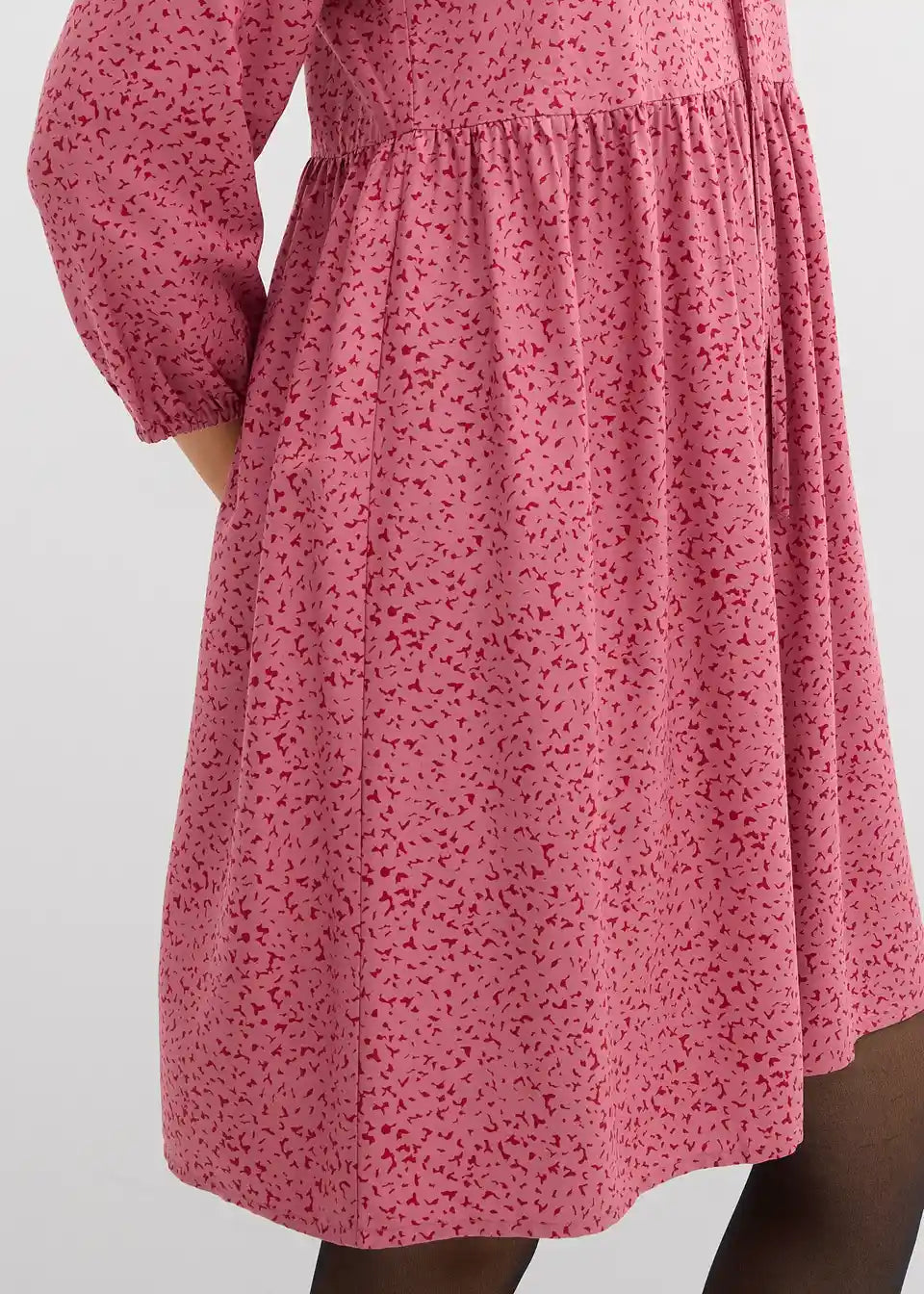 Obleka z razširjenim spodnjim robom in globokim V-izrezom iz mehke viskoze