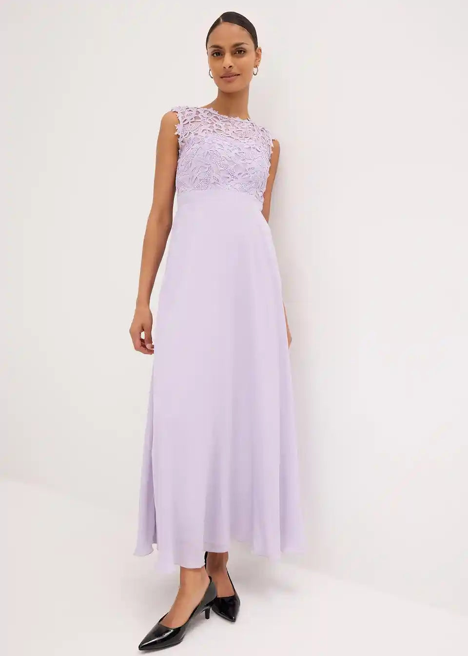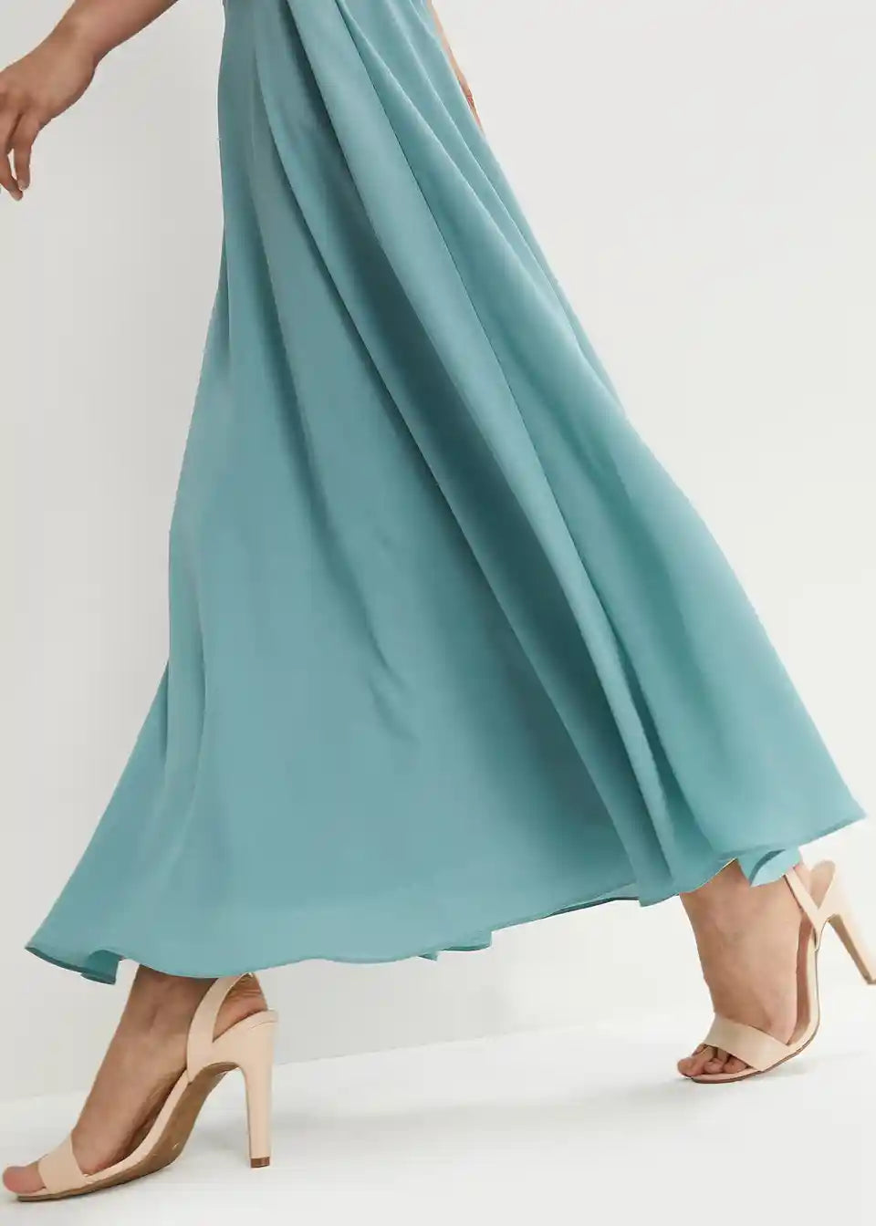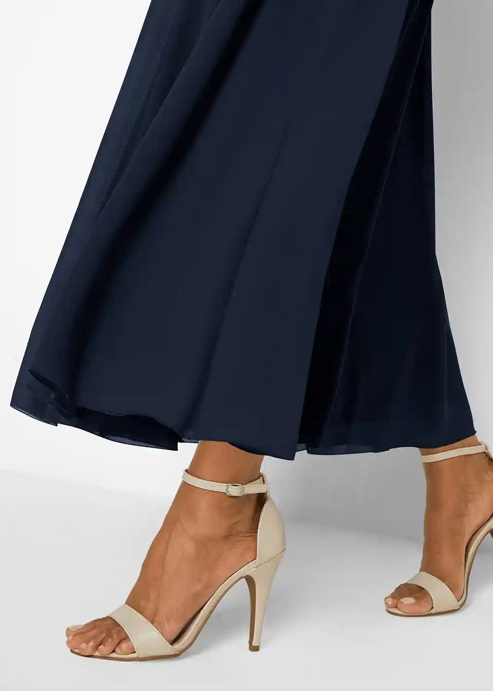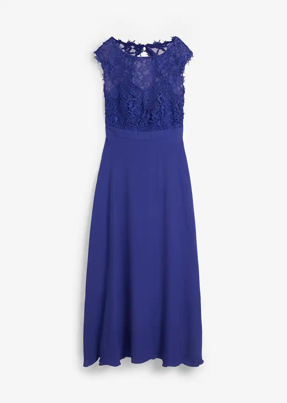 Elegantna večerna obleka s čudovito čipko na zgornjem delu, zadaj z elegantnim odprtjem in elastiko