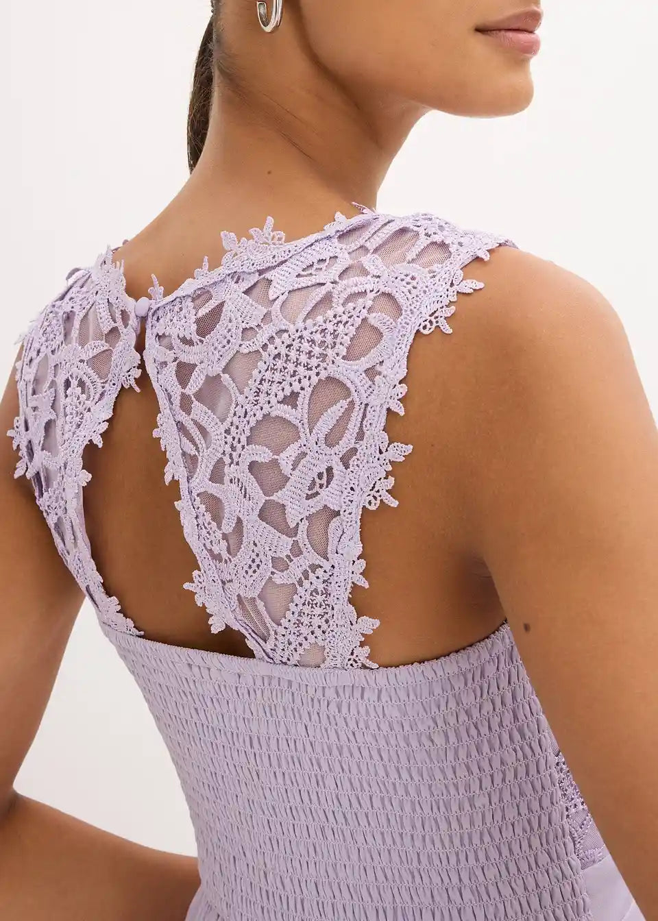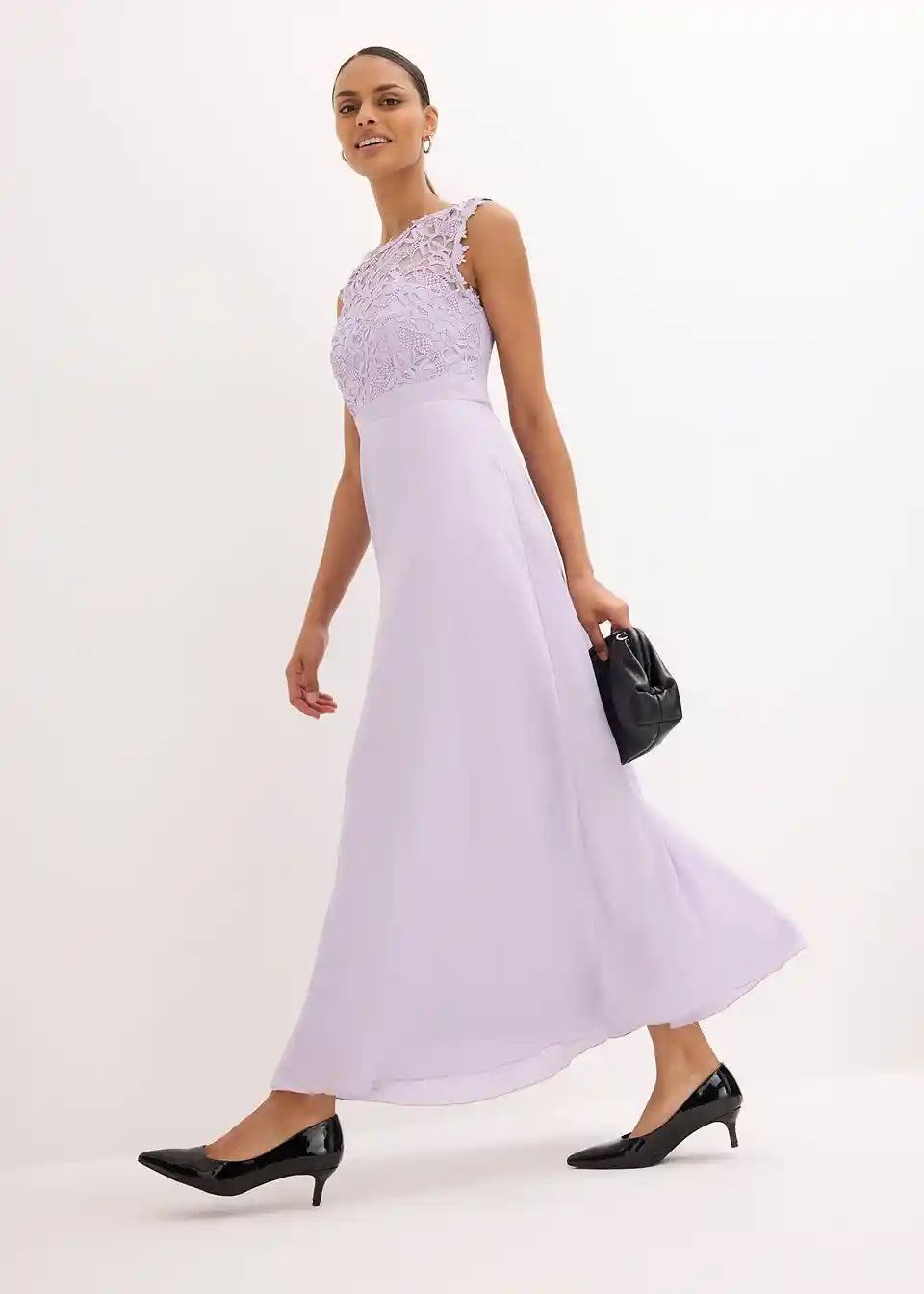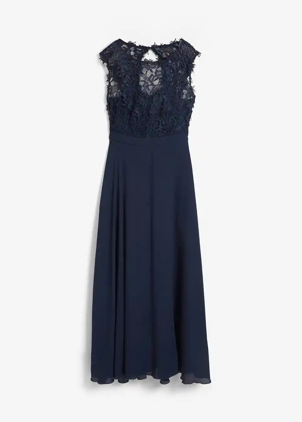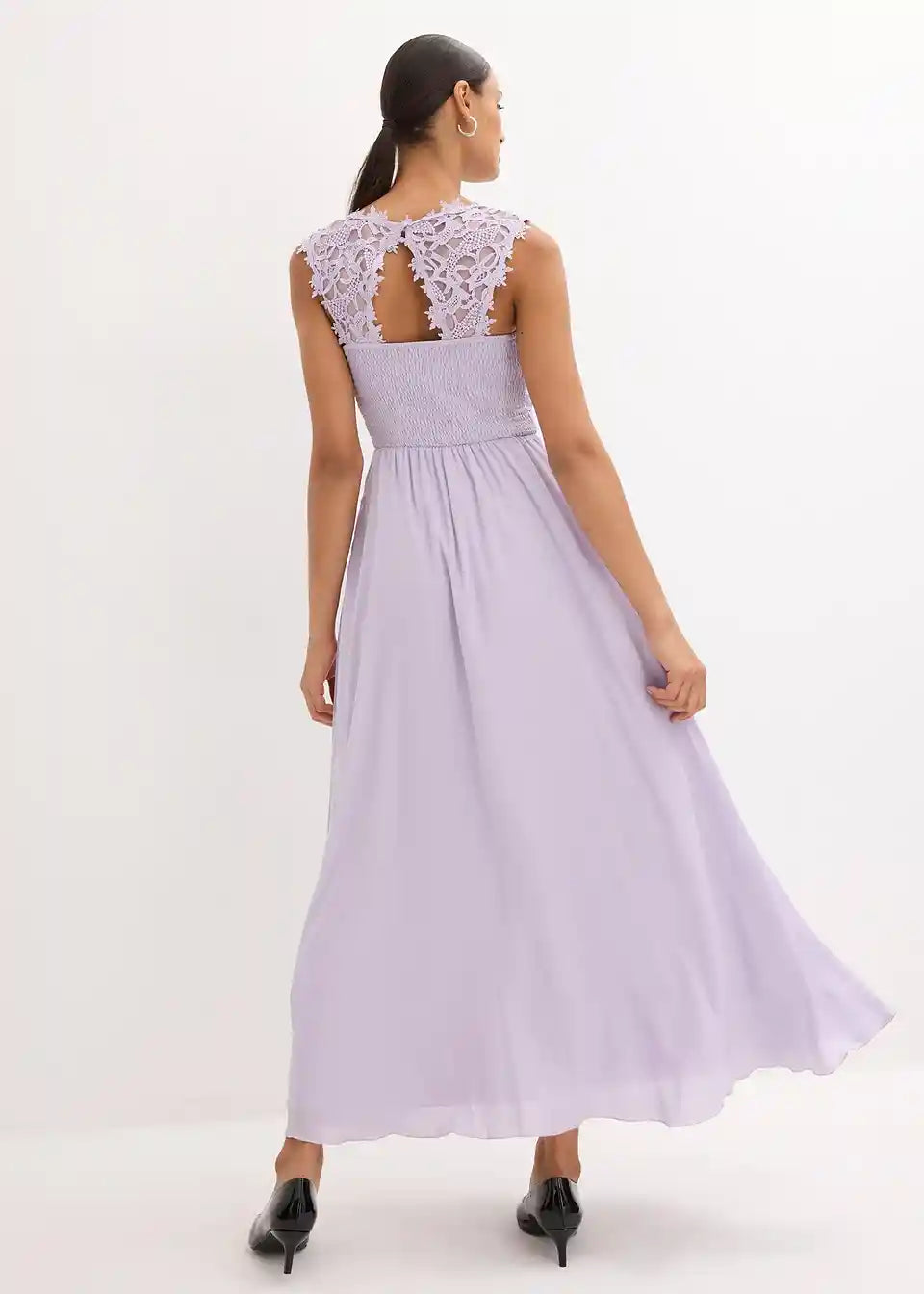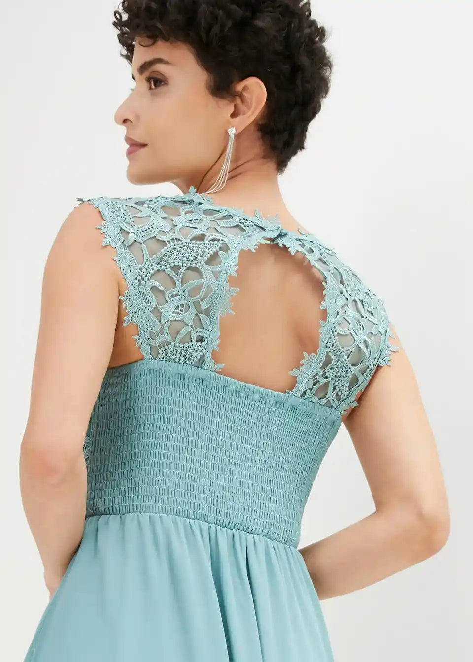 Elegantna večerna obleka z izrezom na hrbtu in okrasjem iz čipke