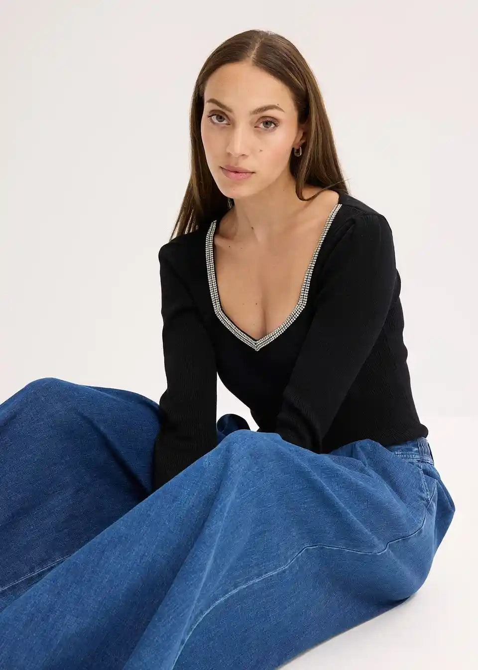 Fino pleten pulover z okrasnim detajlom