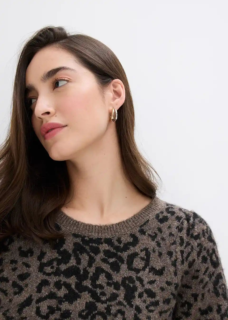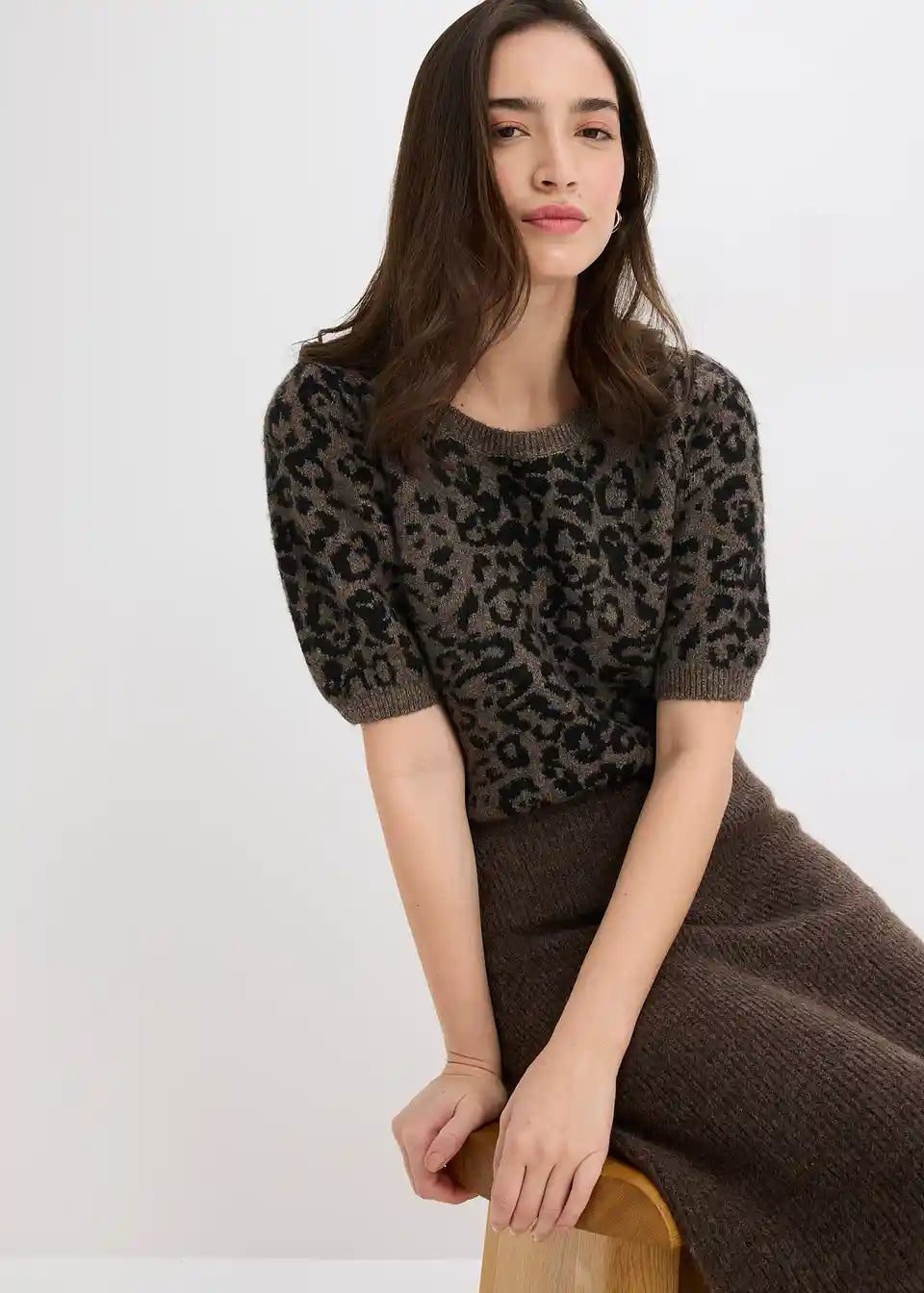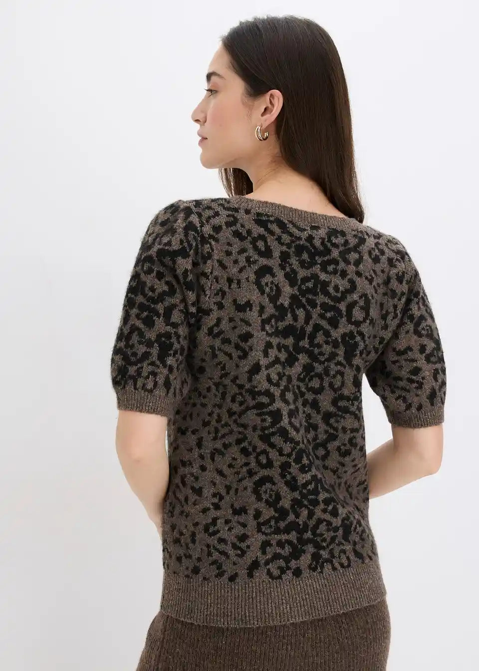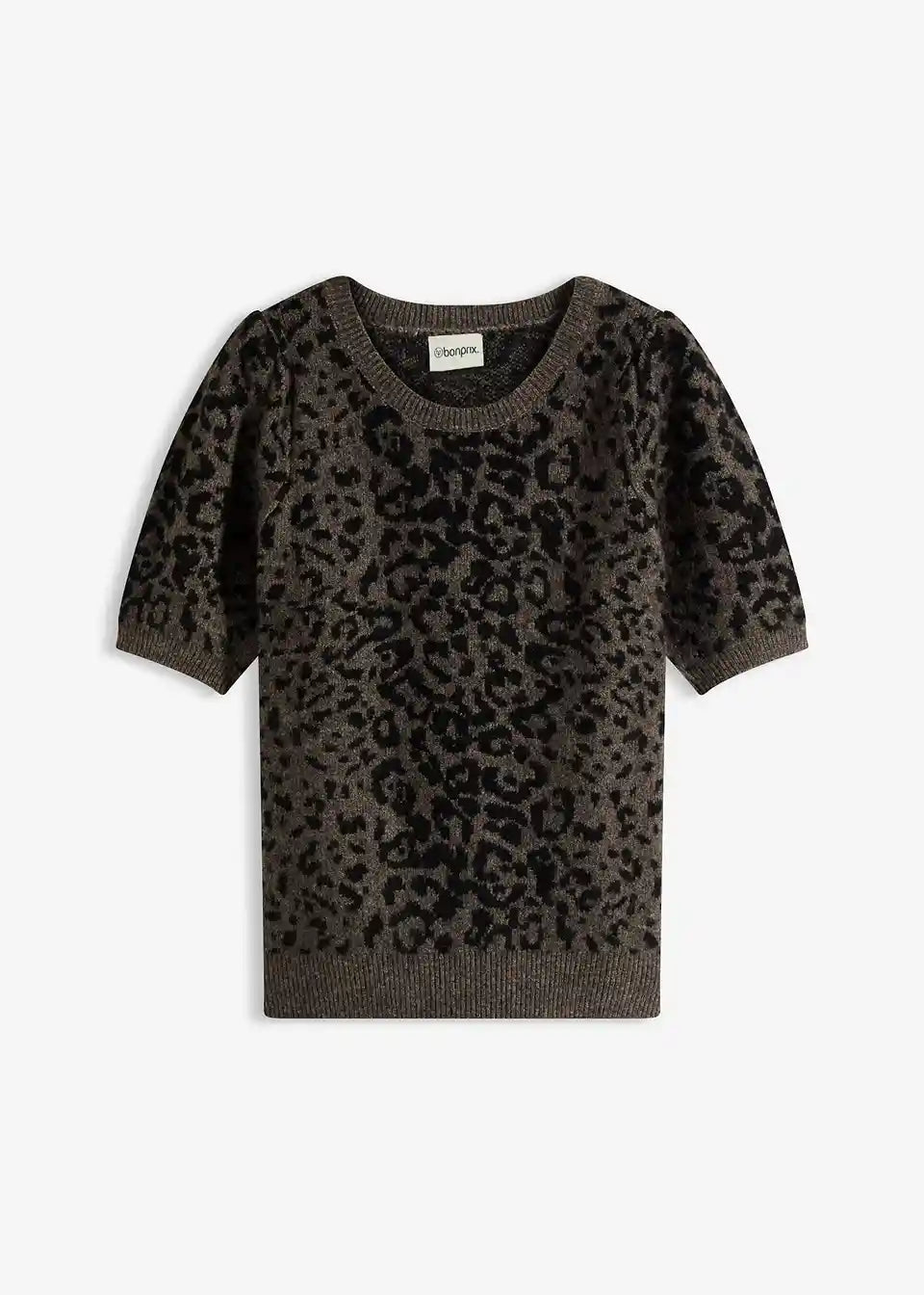 Mehek pulover s polovičnimi balonastimi rokavi in modnim leopardjim vzorcem