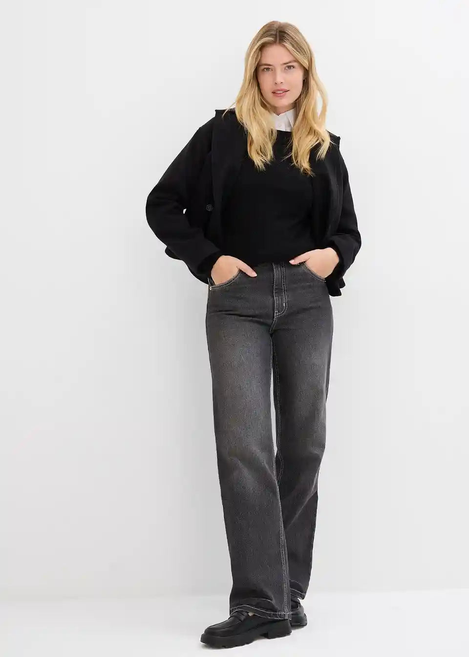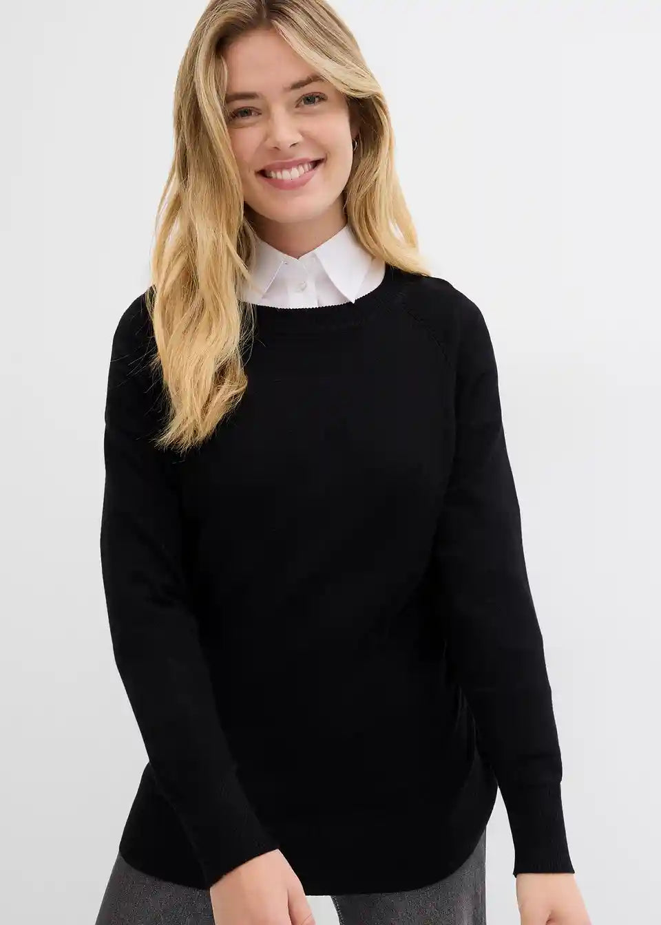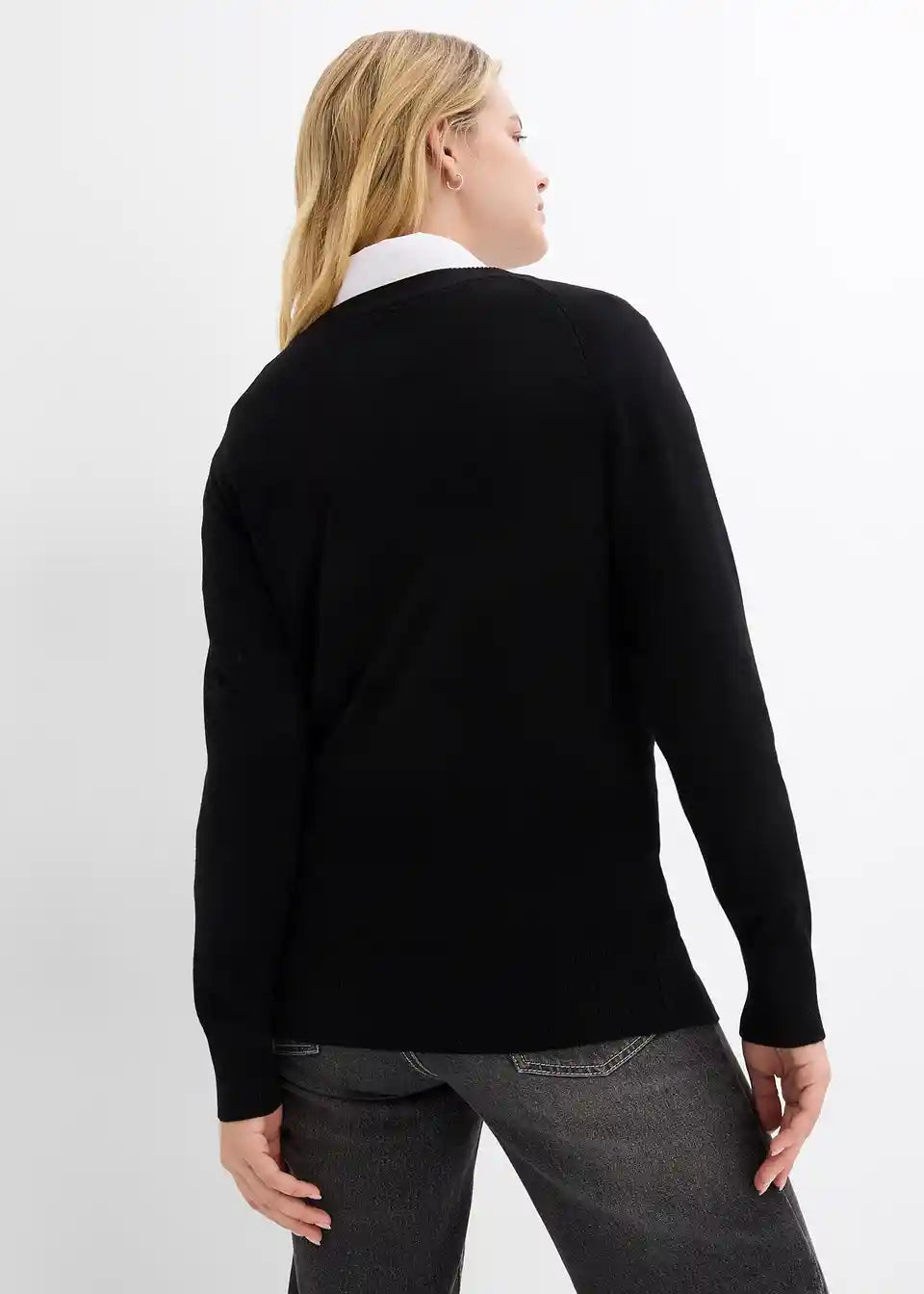 Udoben pleten pulover z okroglim izrezom. Dolžina v velikosti 40/42 približno 66 cm, primeren za strojno pranje.